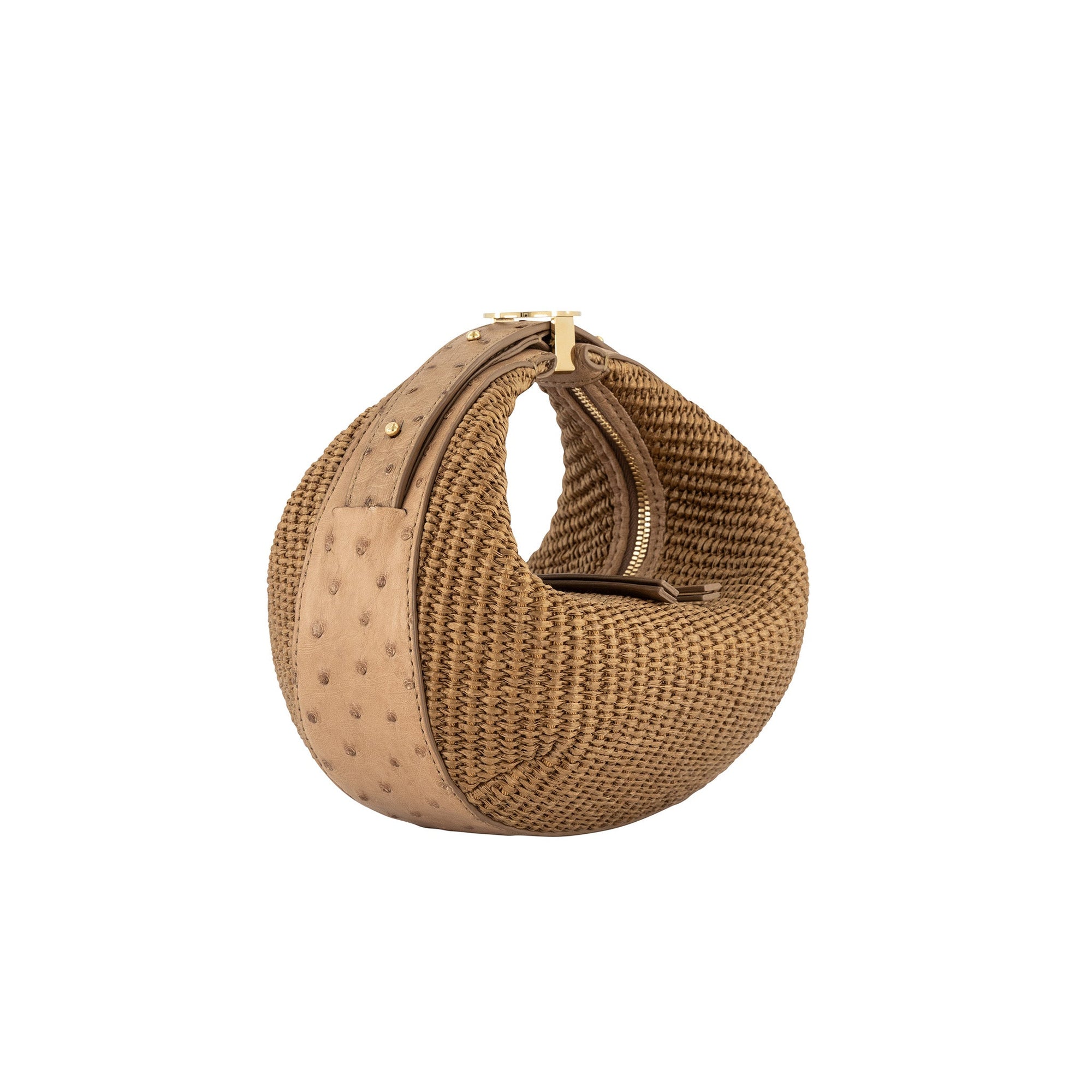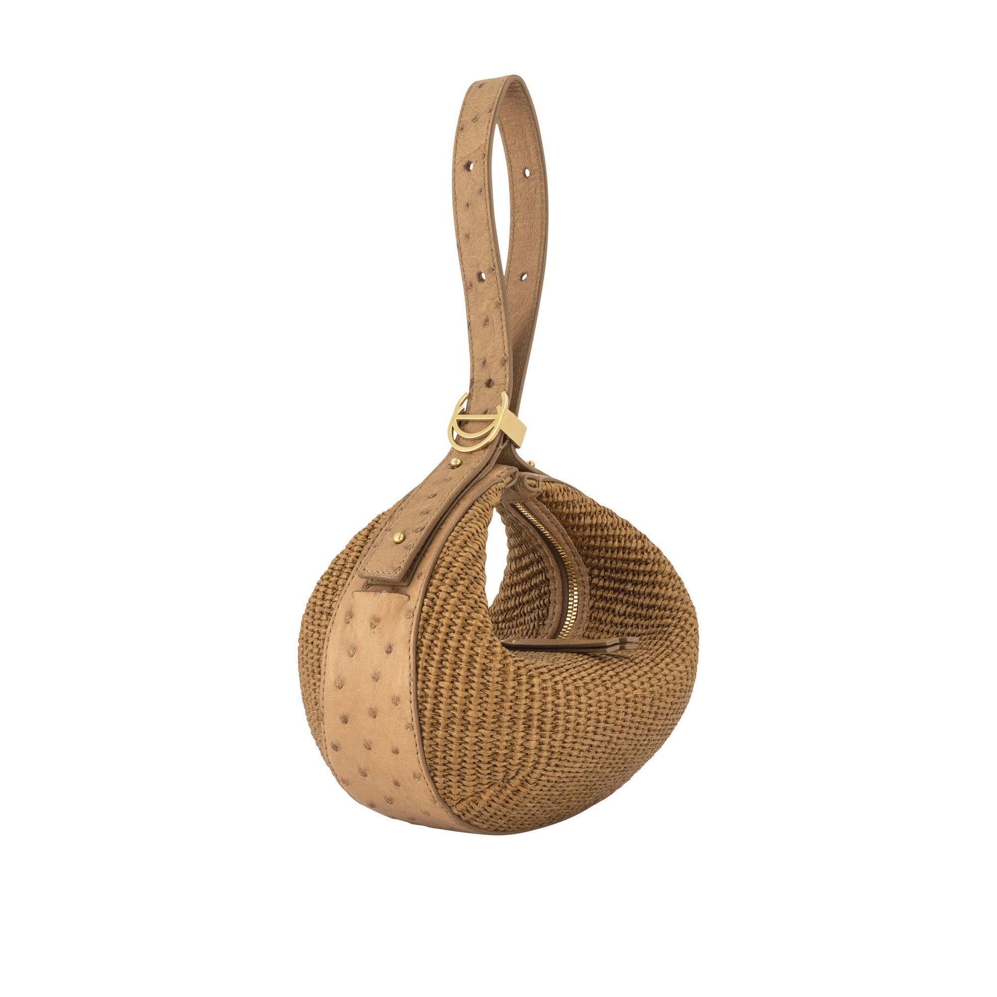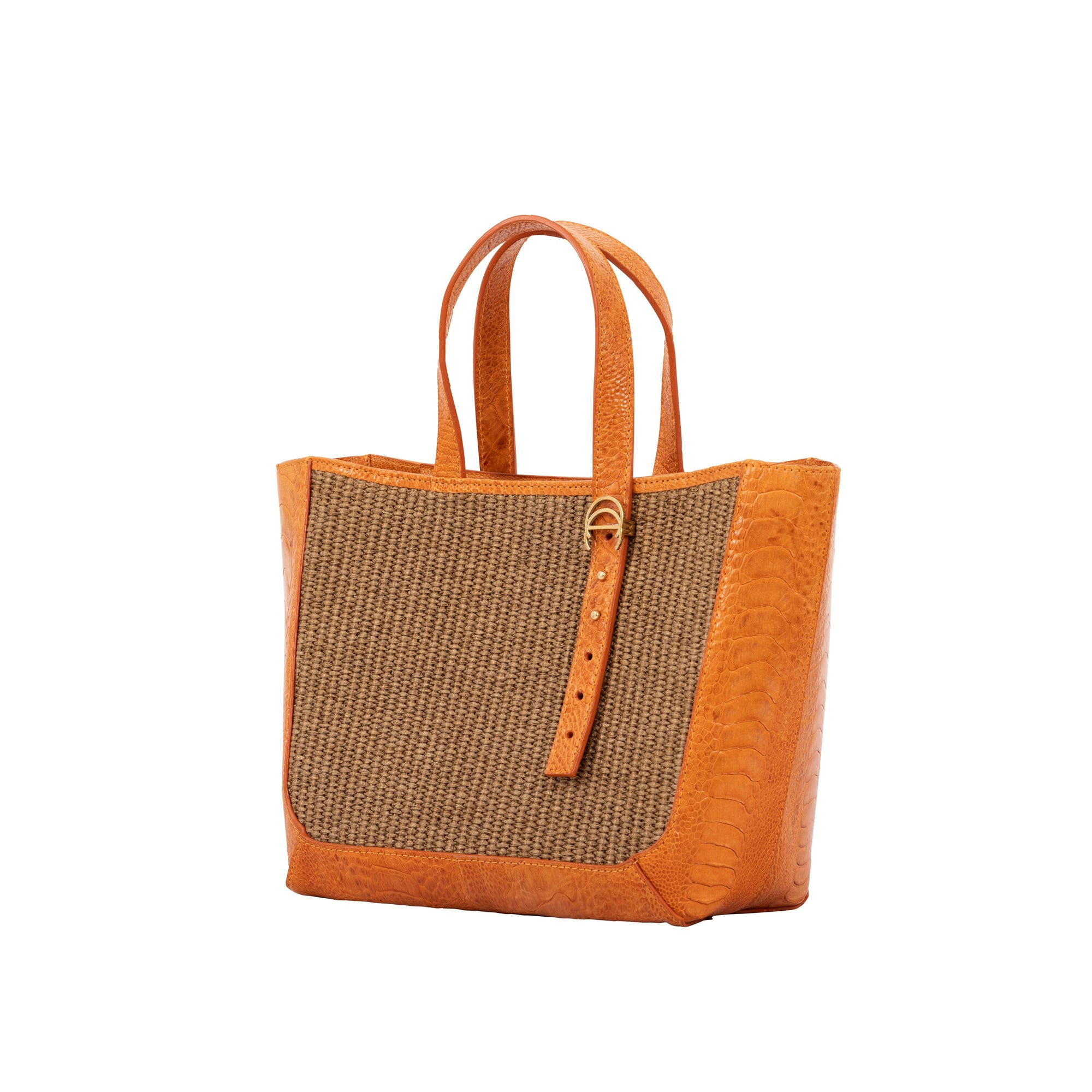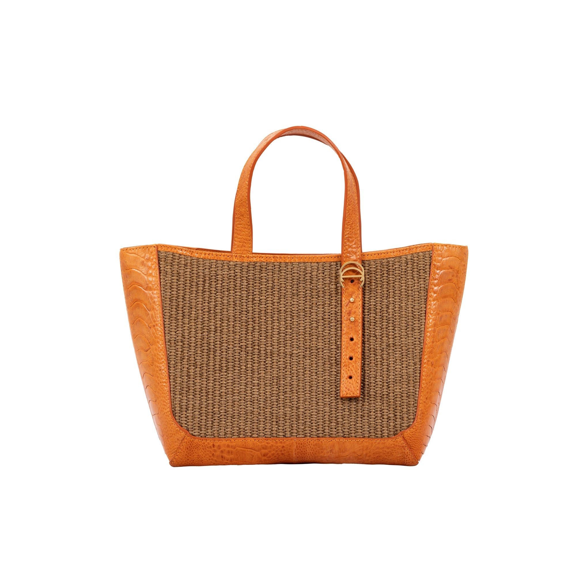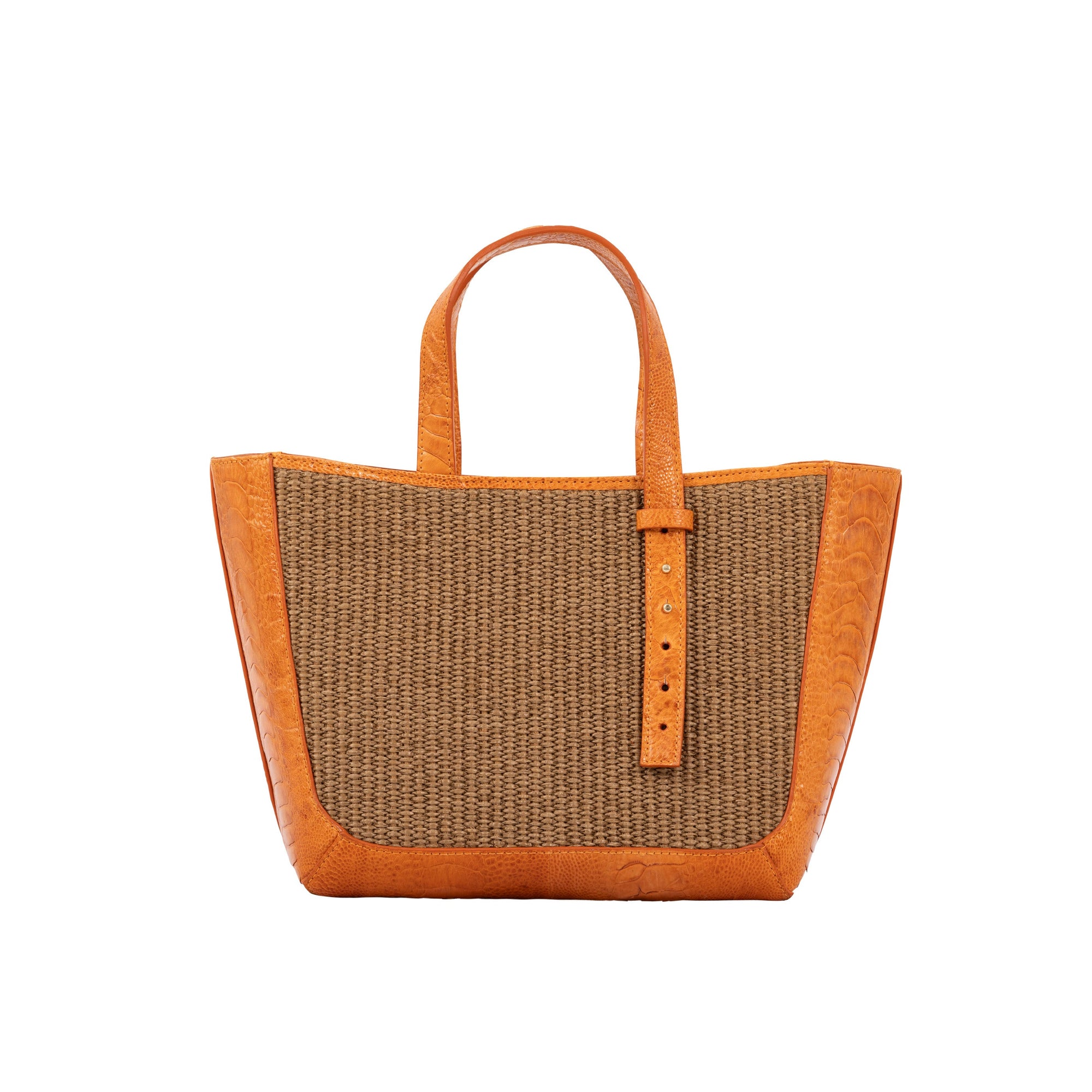 Small Davy Tote in Caramel Raffia & Mango Ostrich Leg