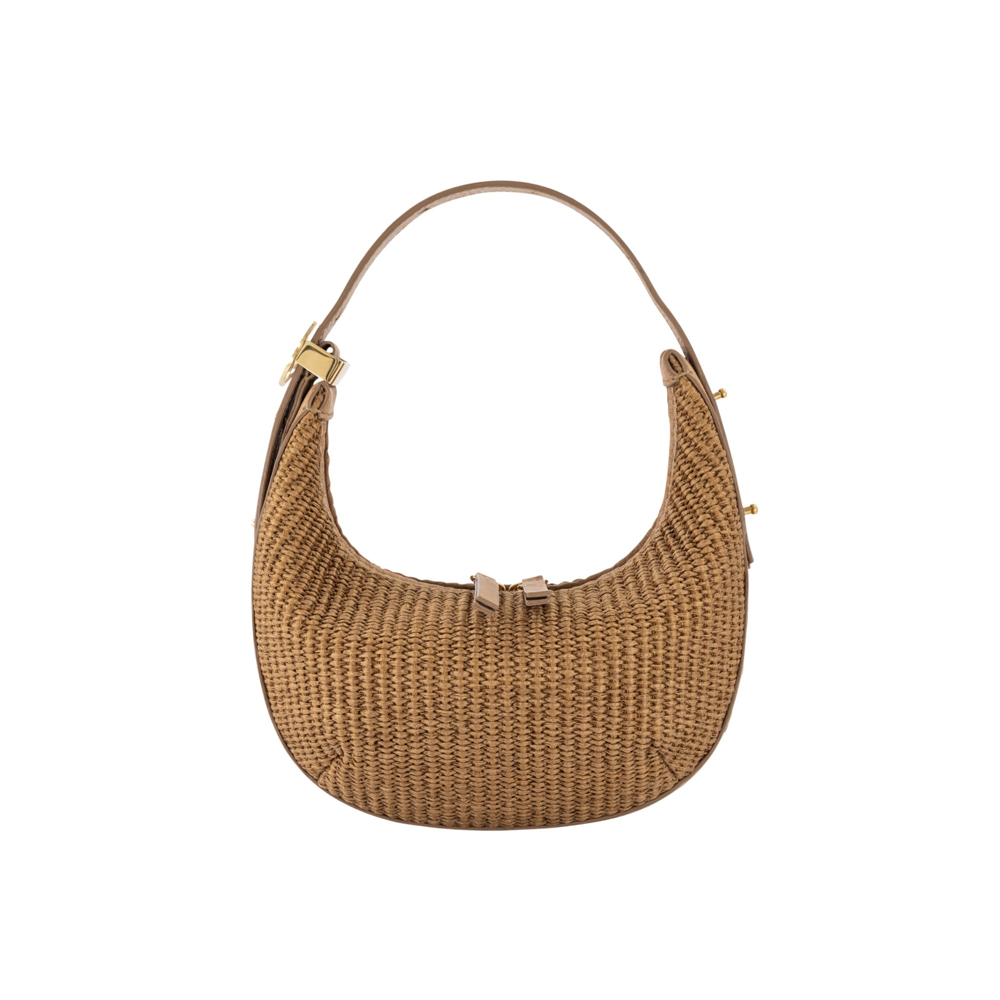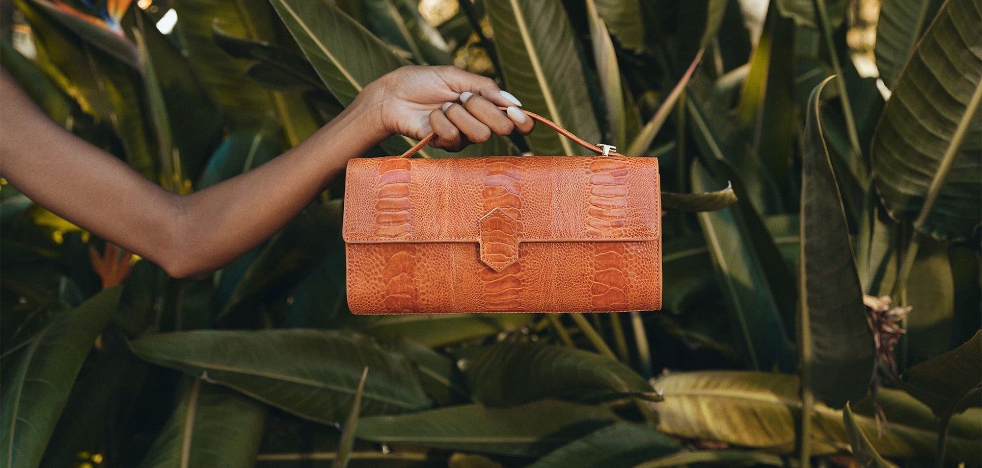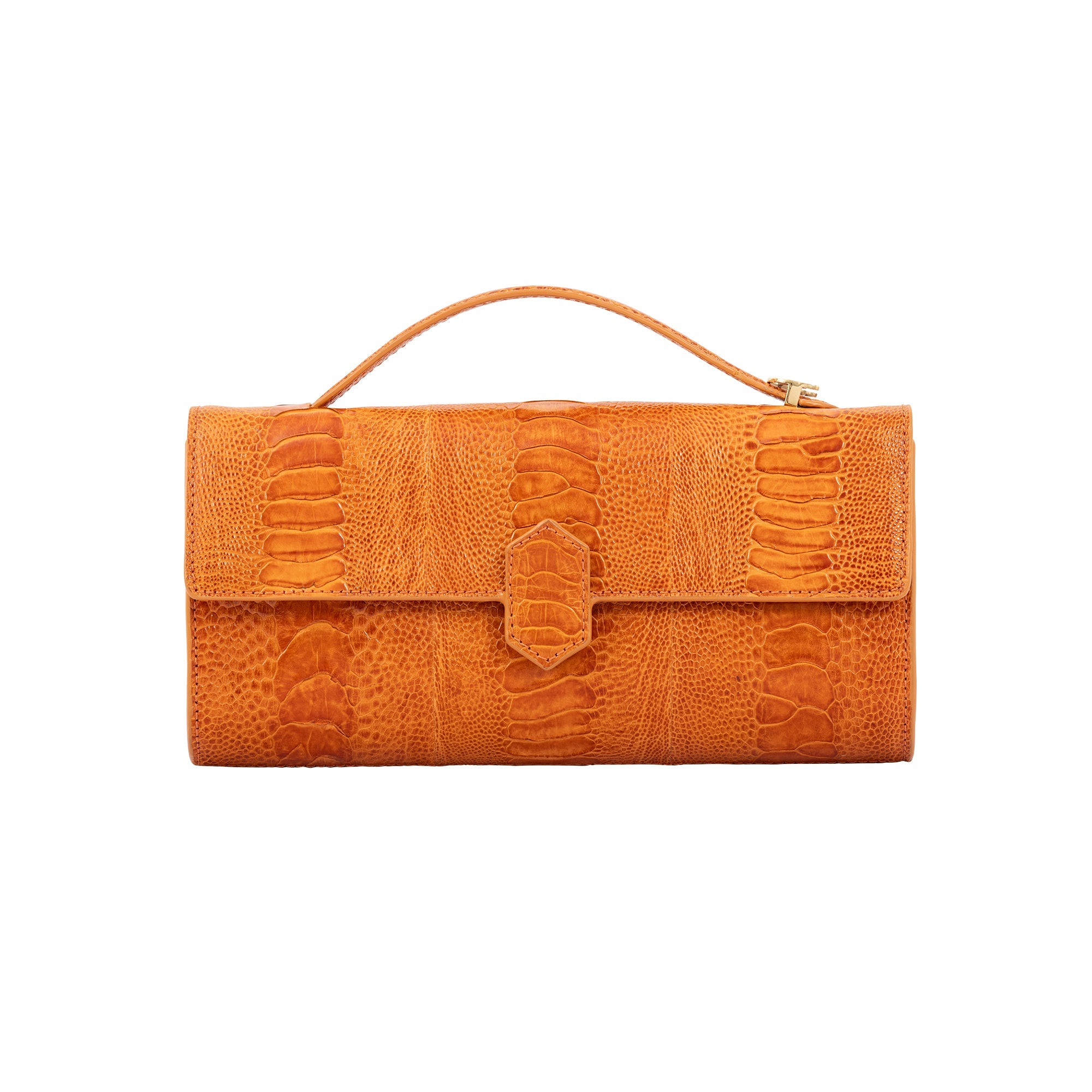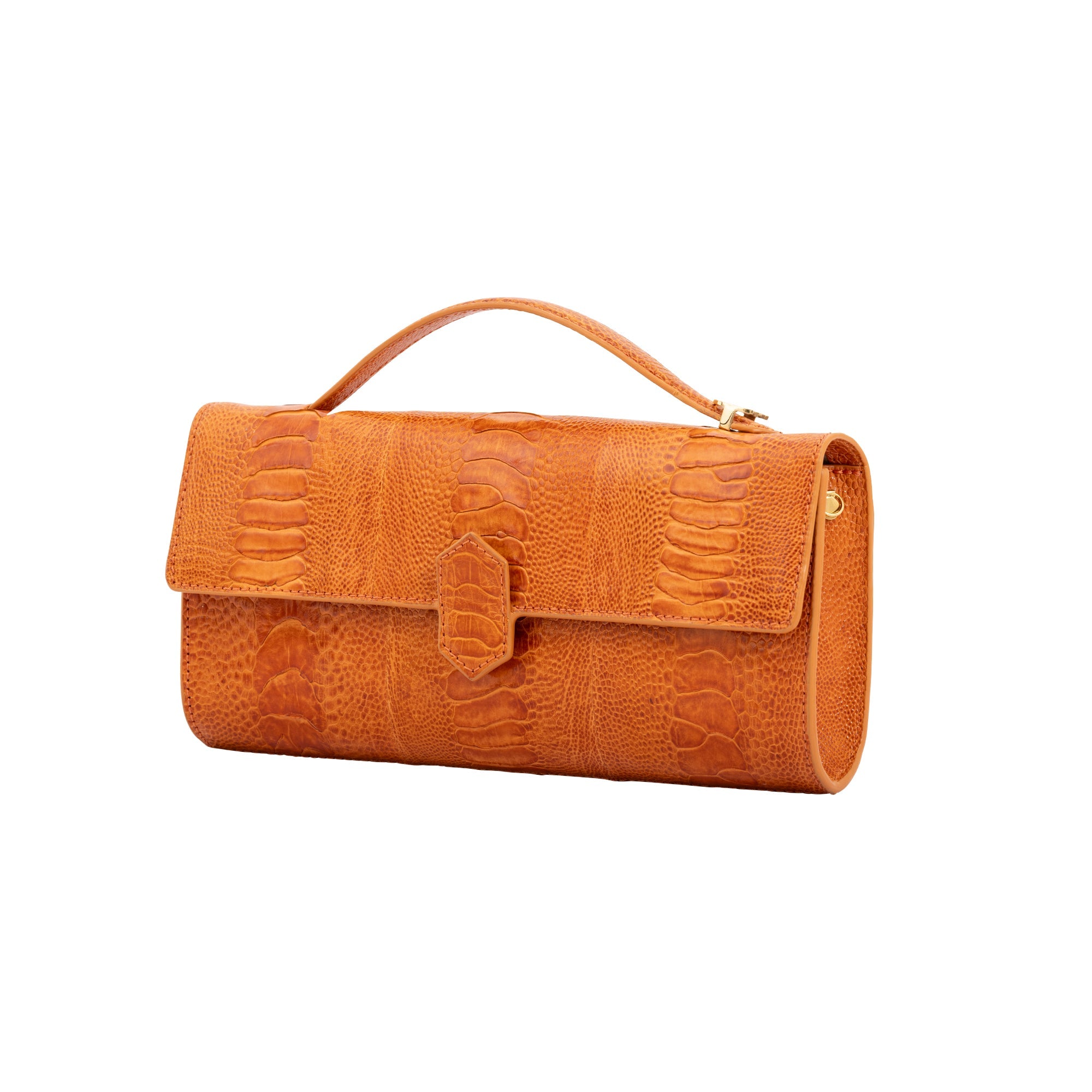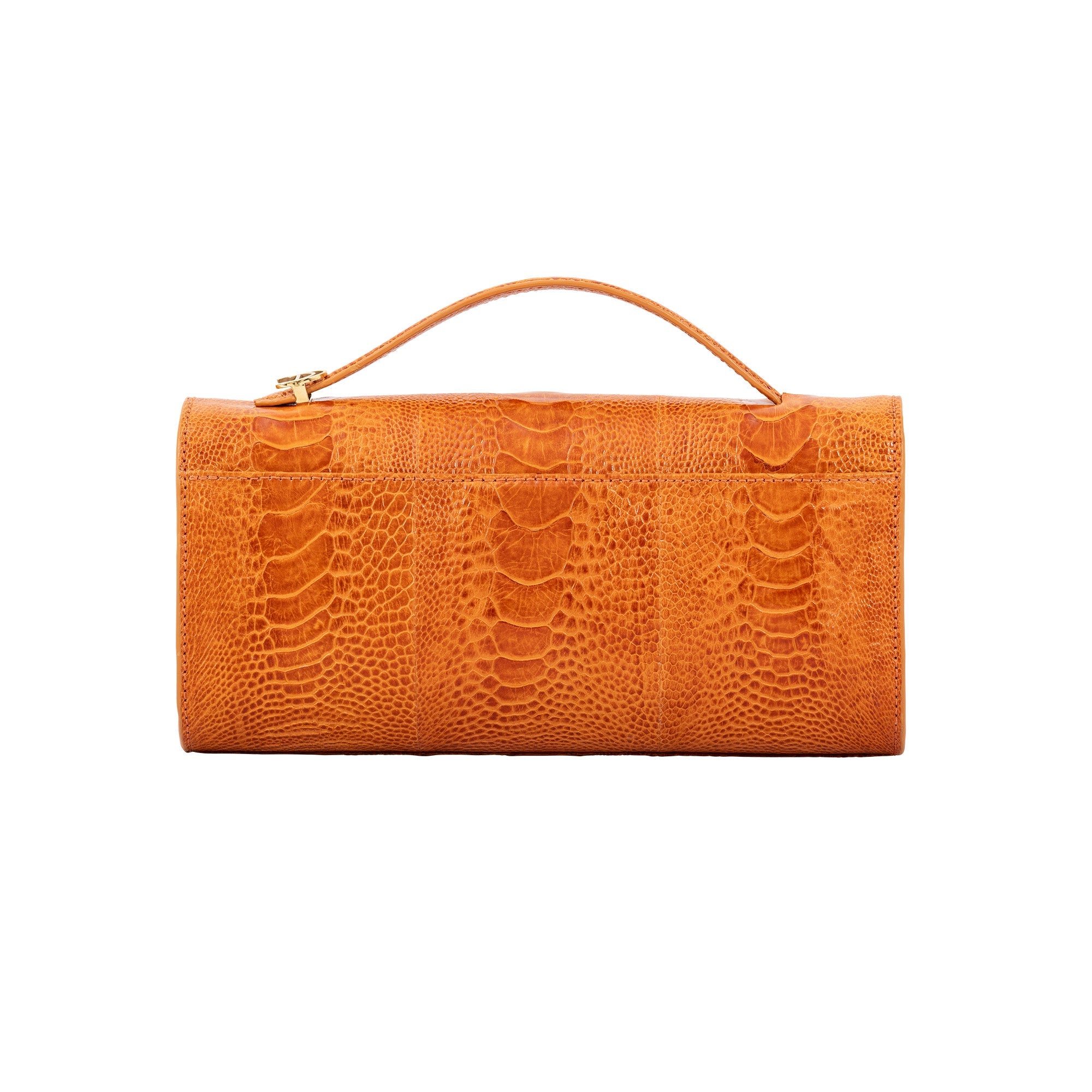 Small Davy Tote in Caramel Raffia & Mango Ostrich Leg