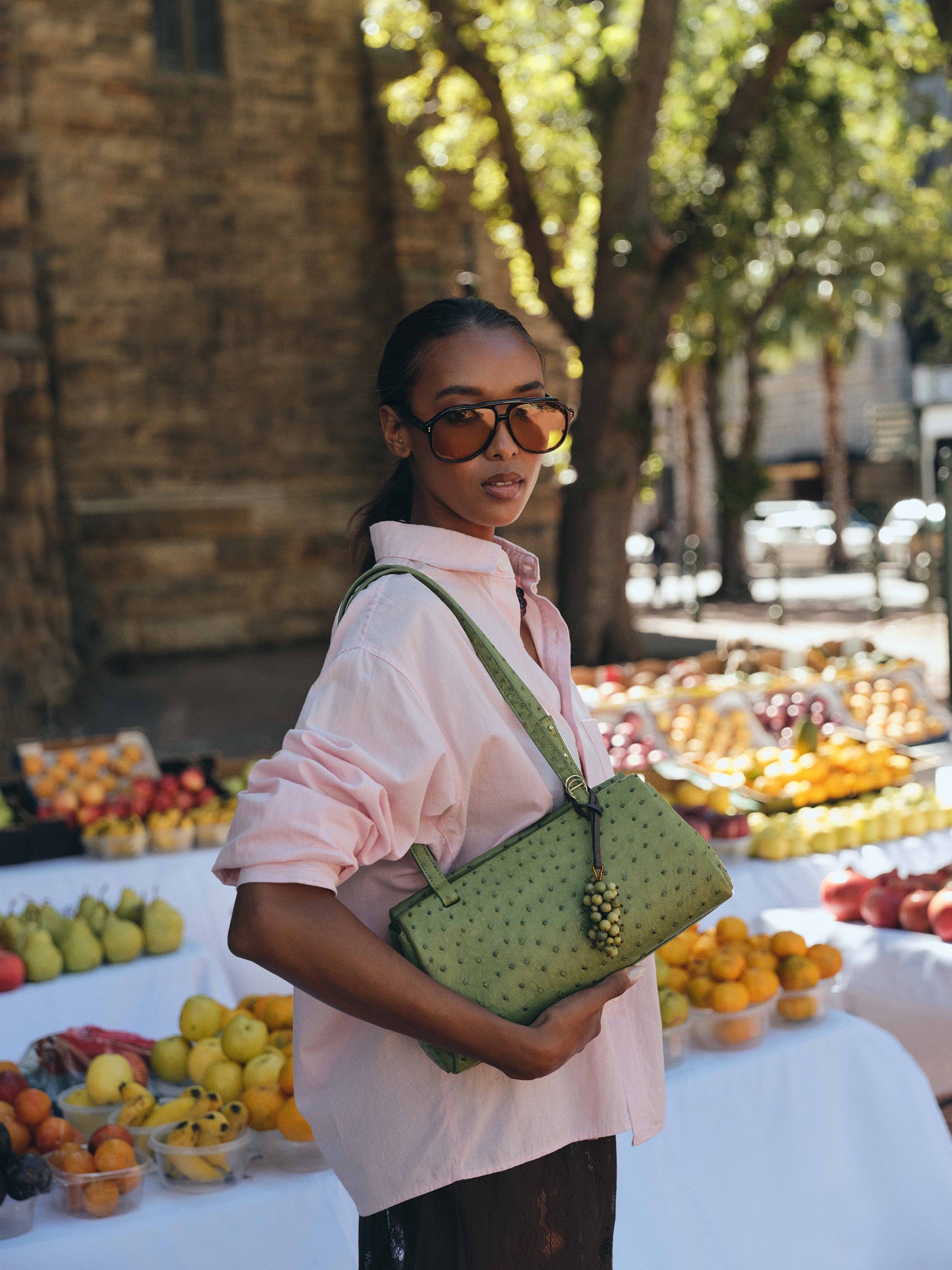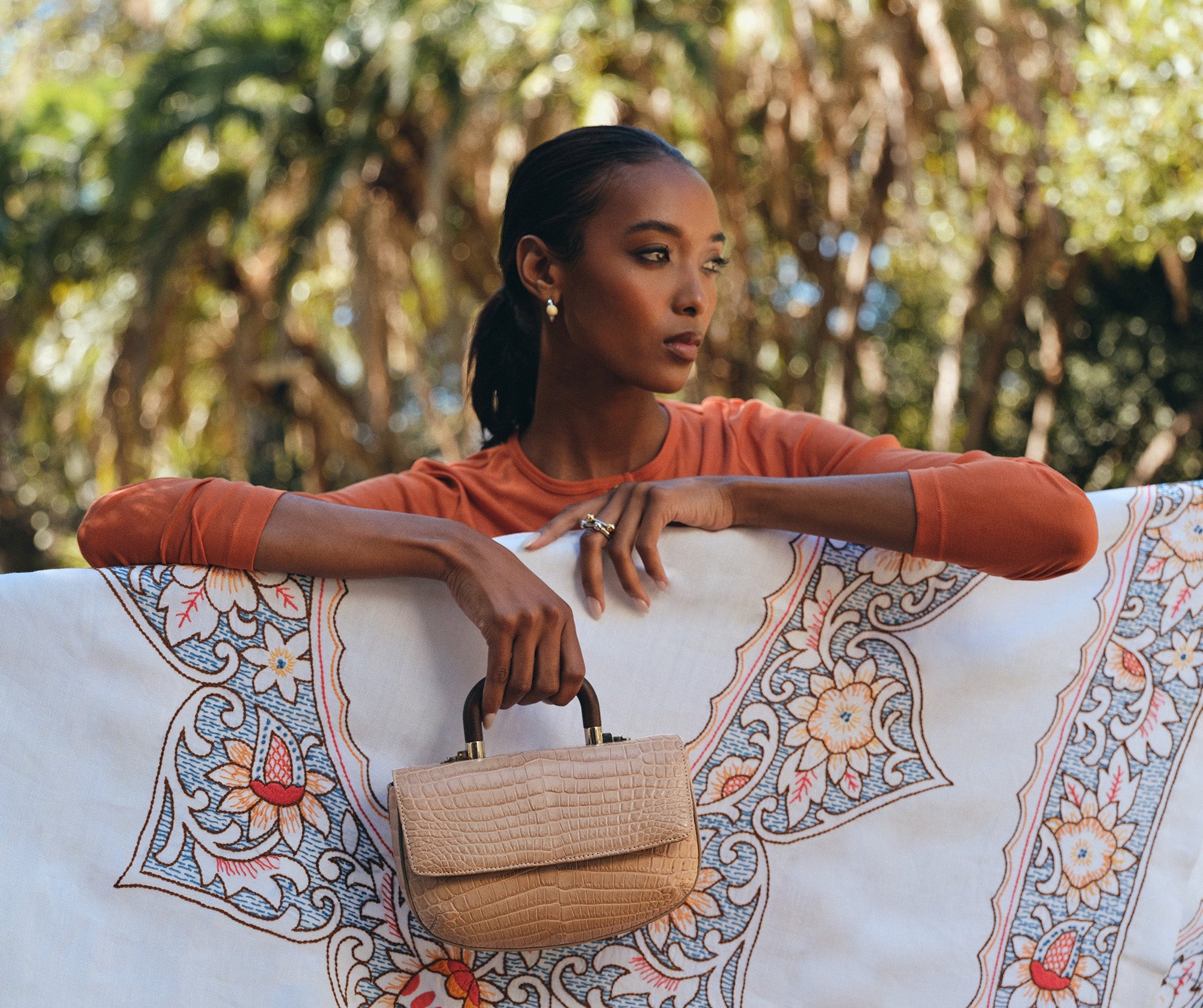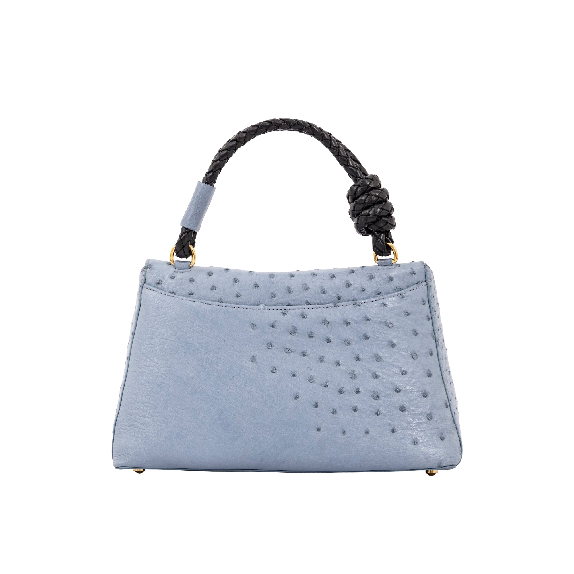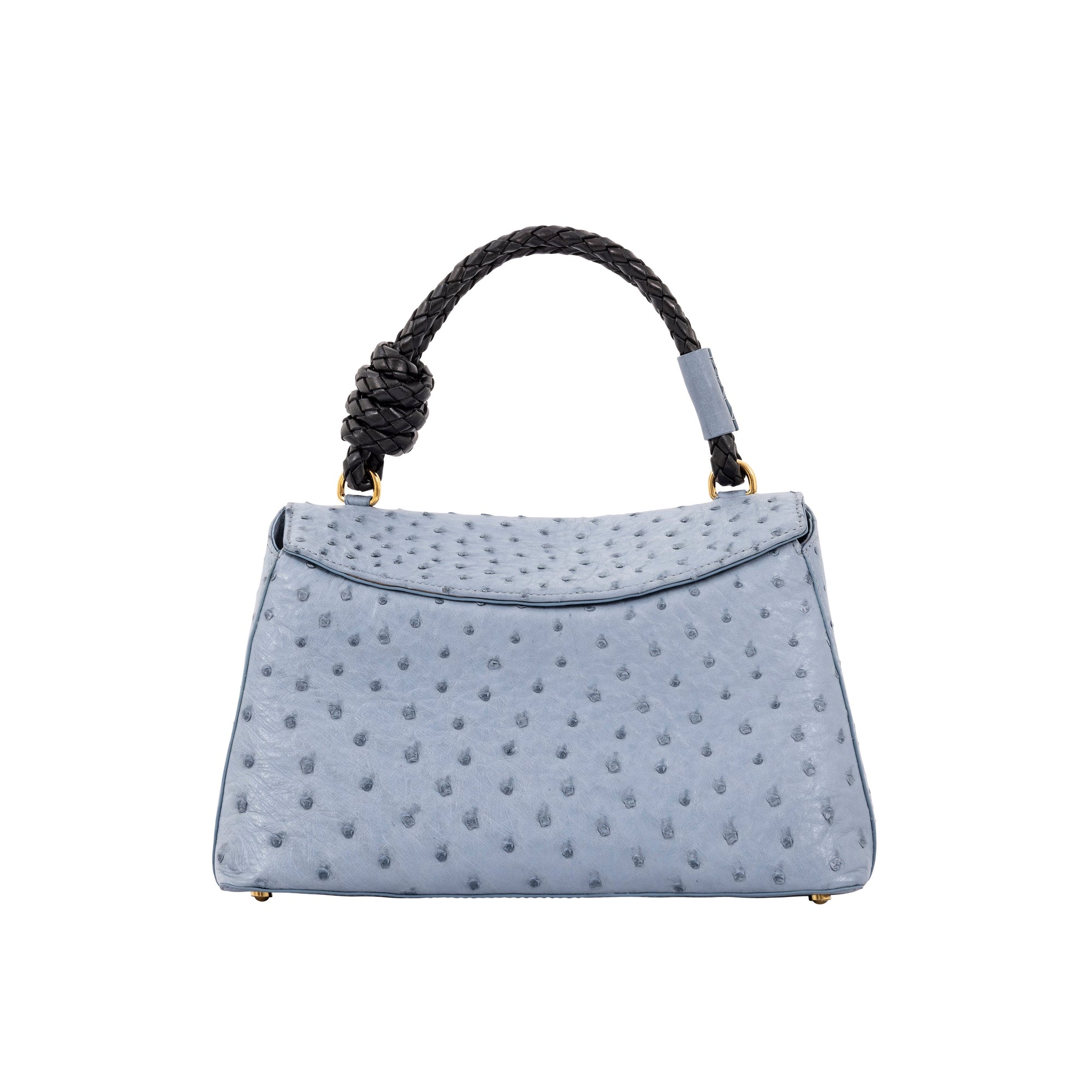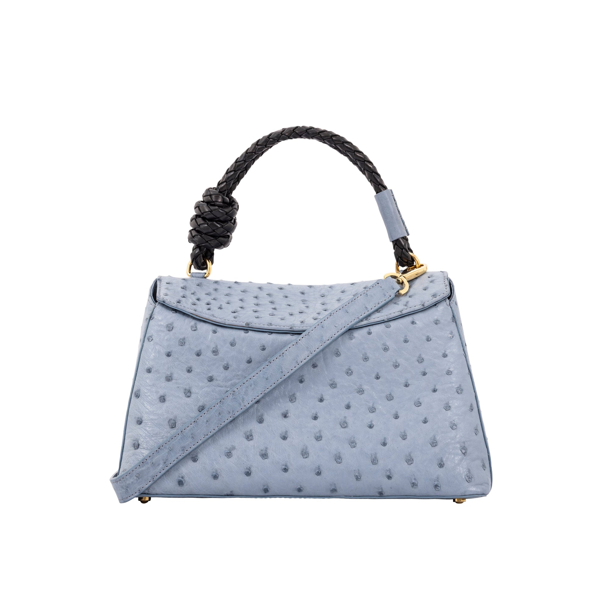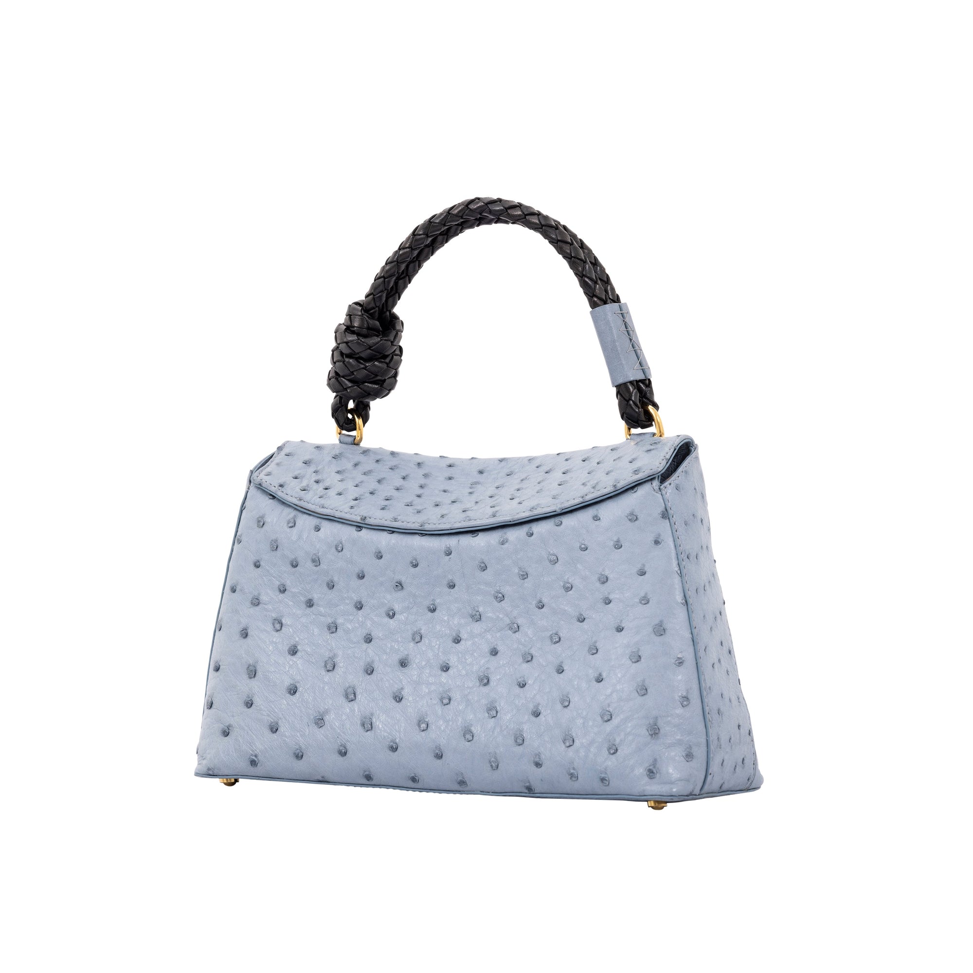 Small Davy Tote in Caramel Raffia & Mango Ostrich Leg