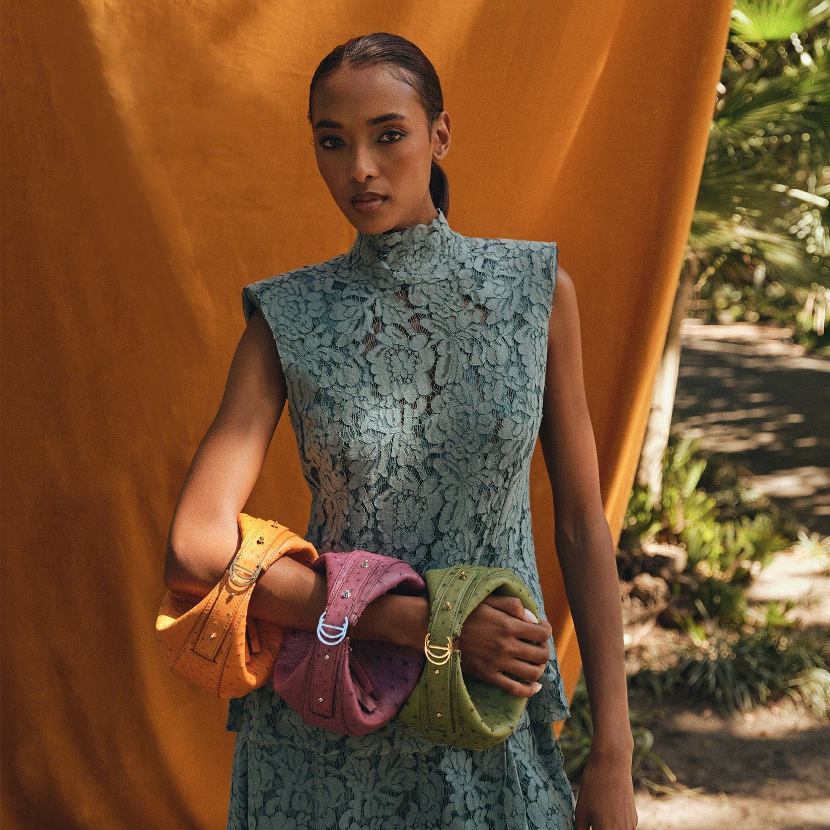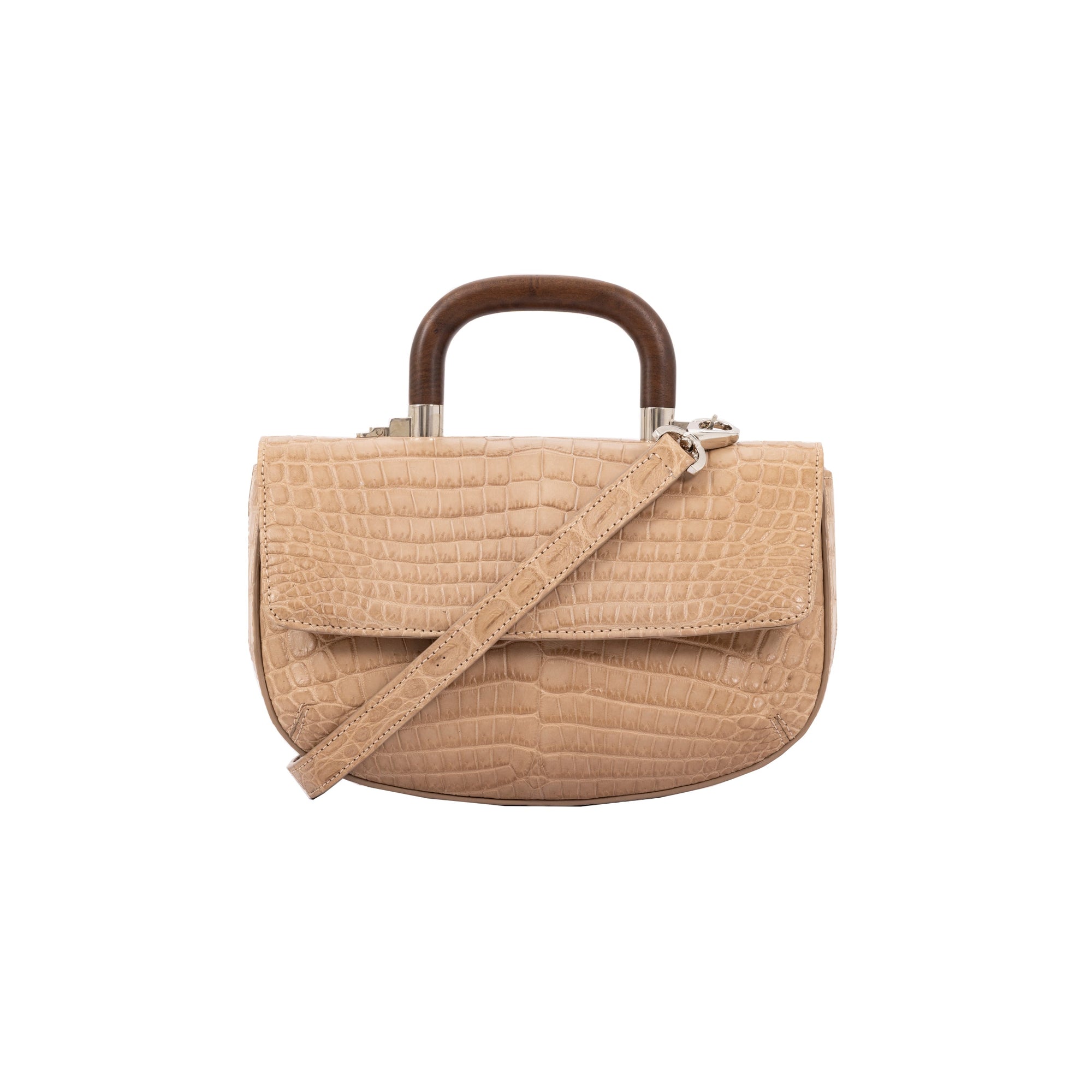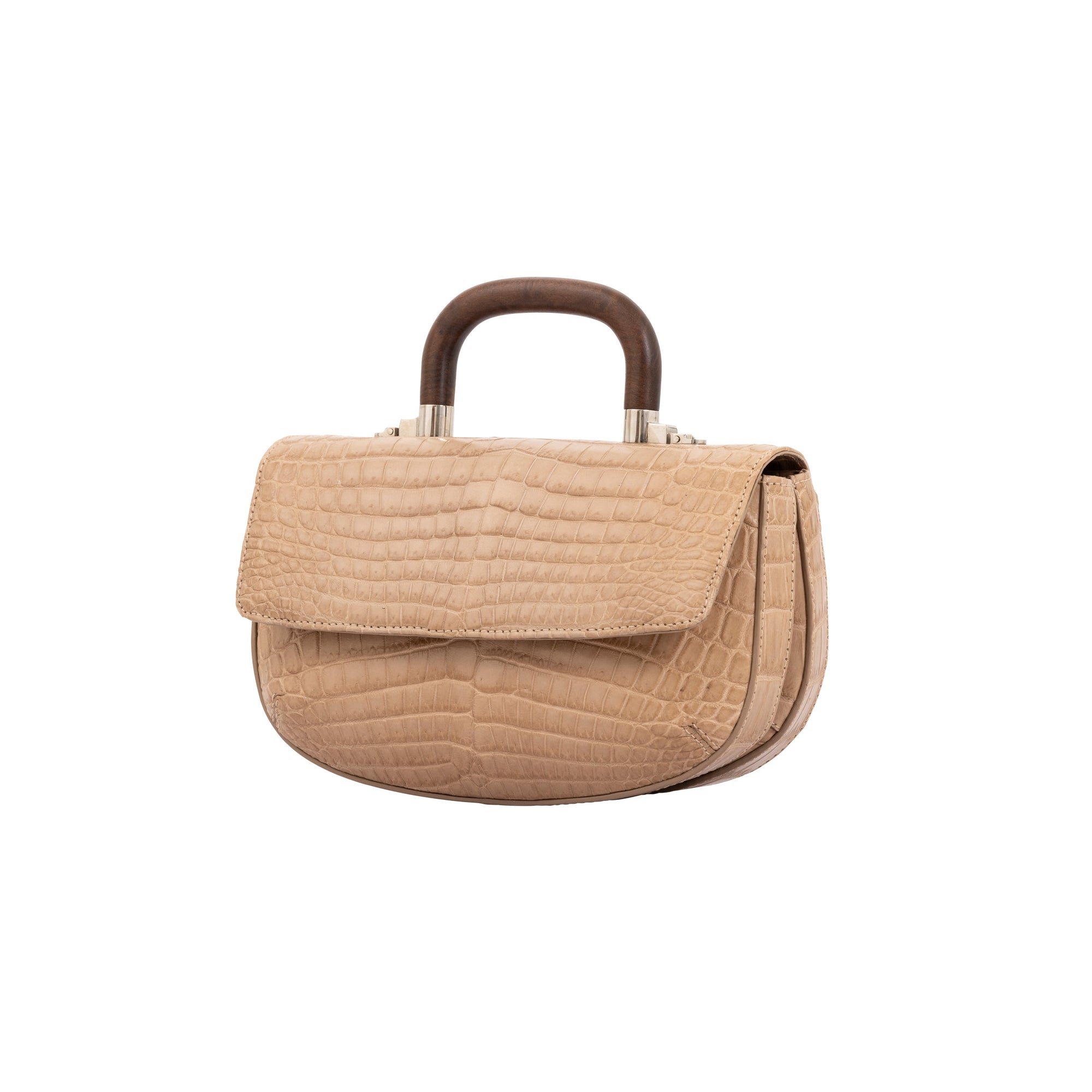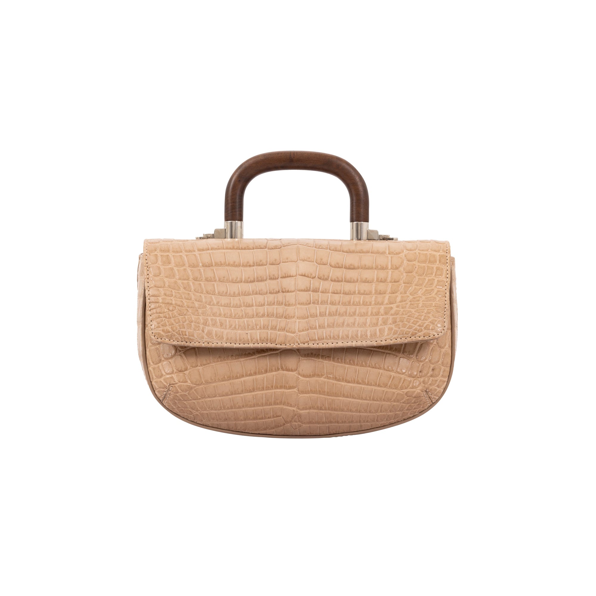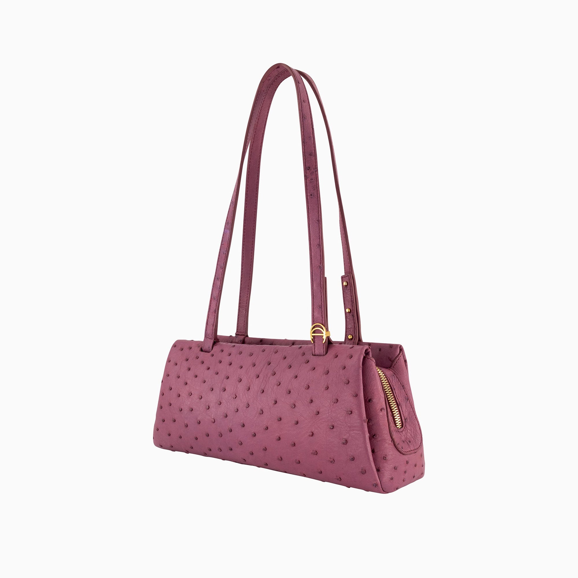 Small Davy Tote in Caramel Raffia & Mango Ostrich Leg