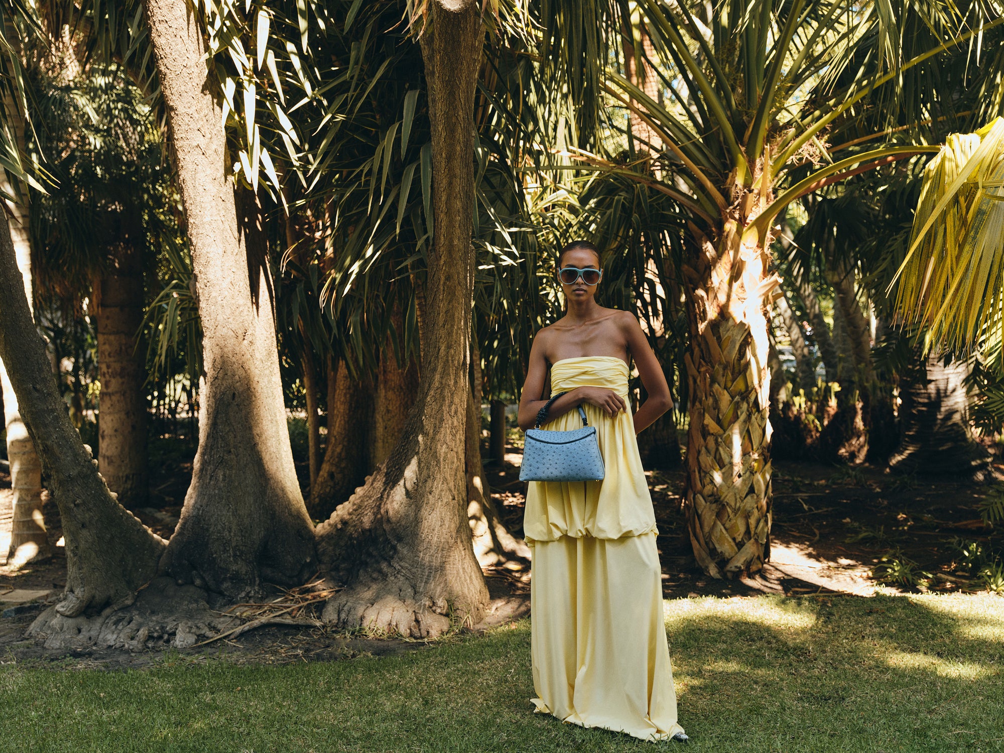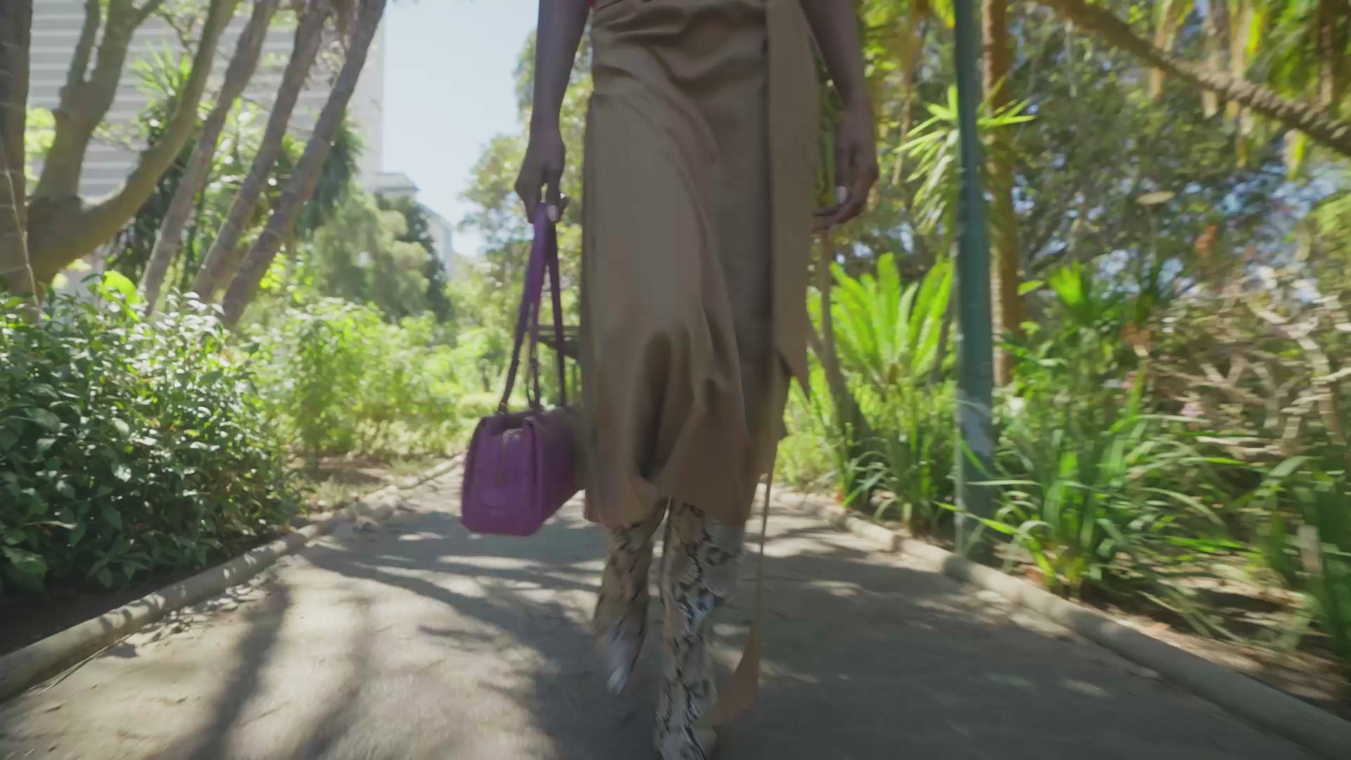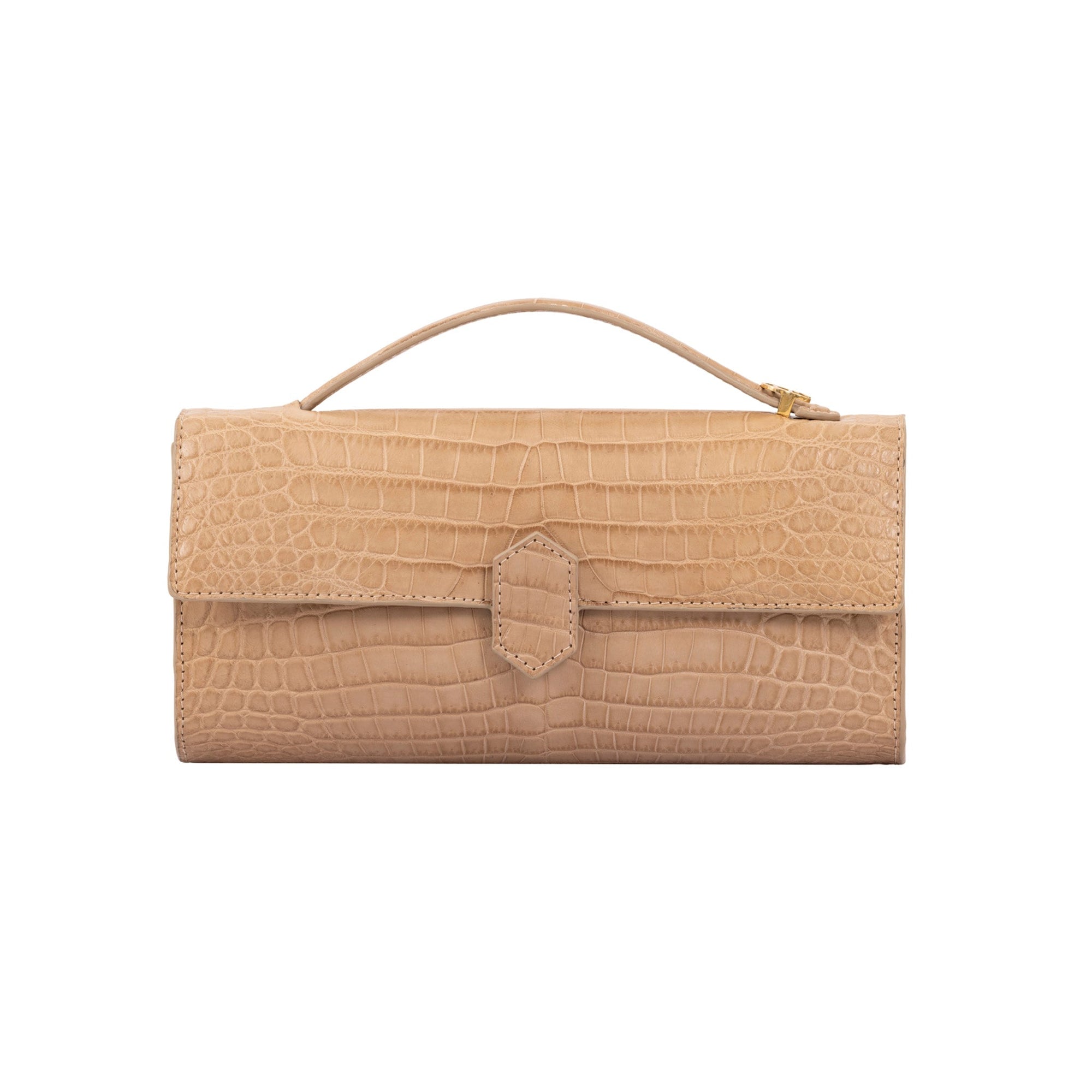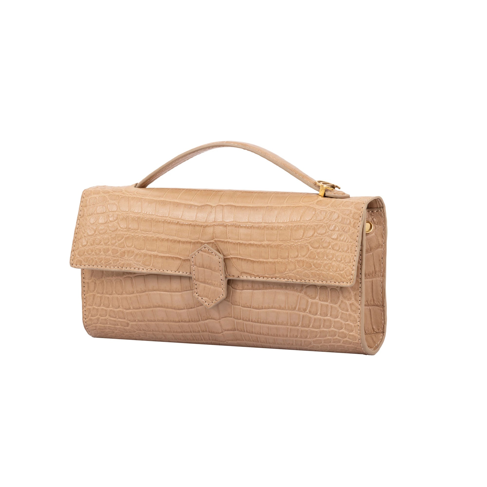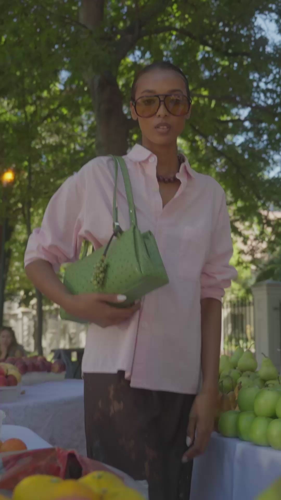 Small Davy Tote in Caramel Raffia & Mango Ostrich Leg