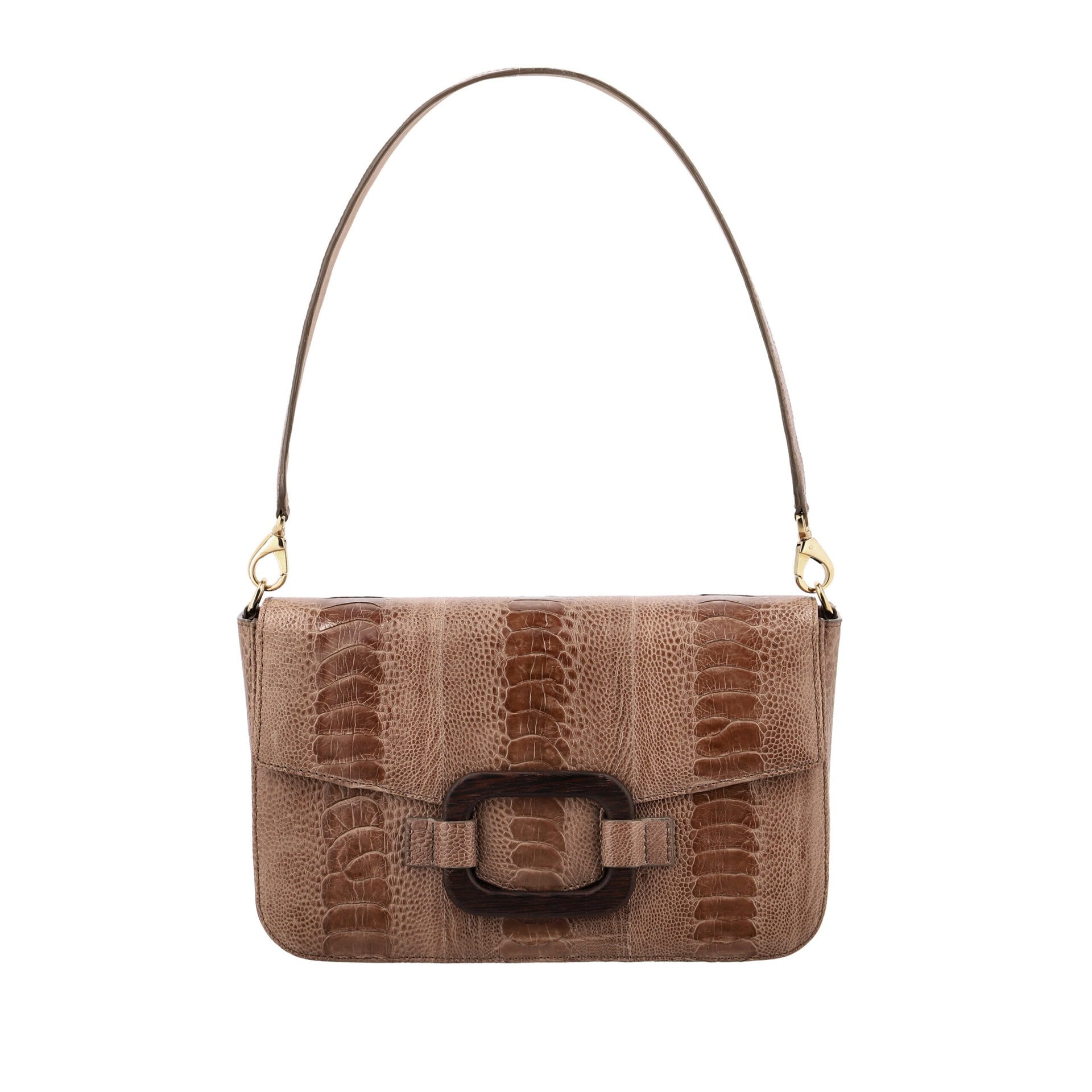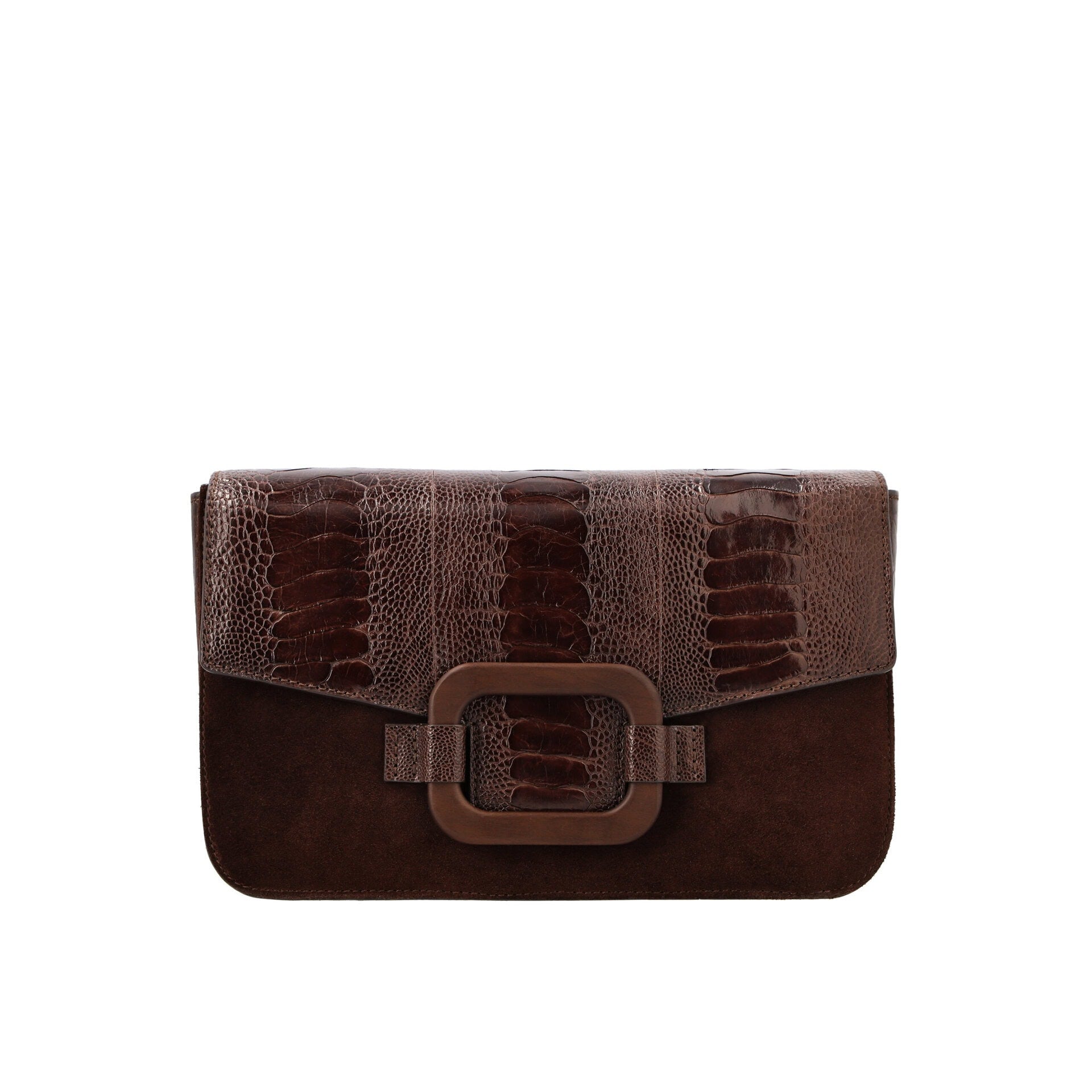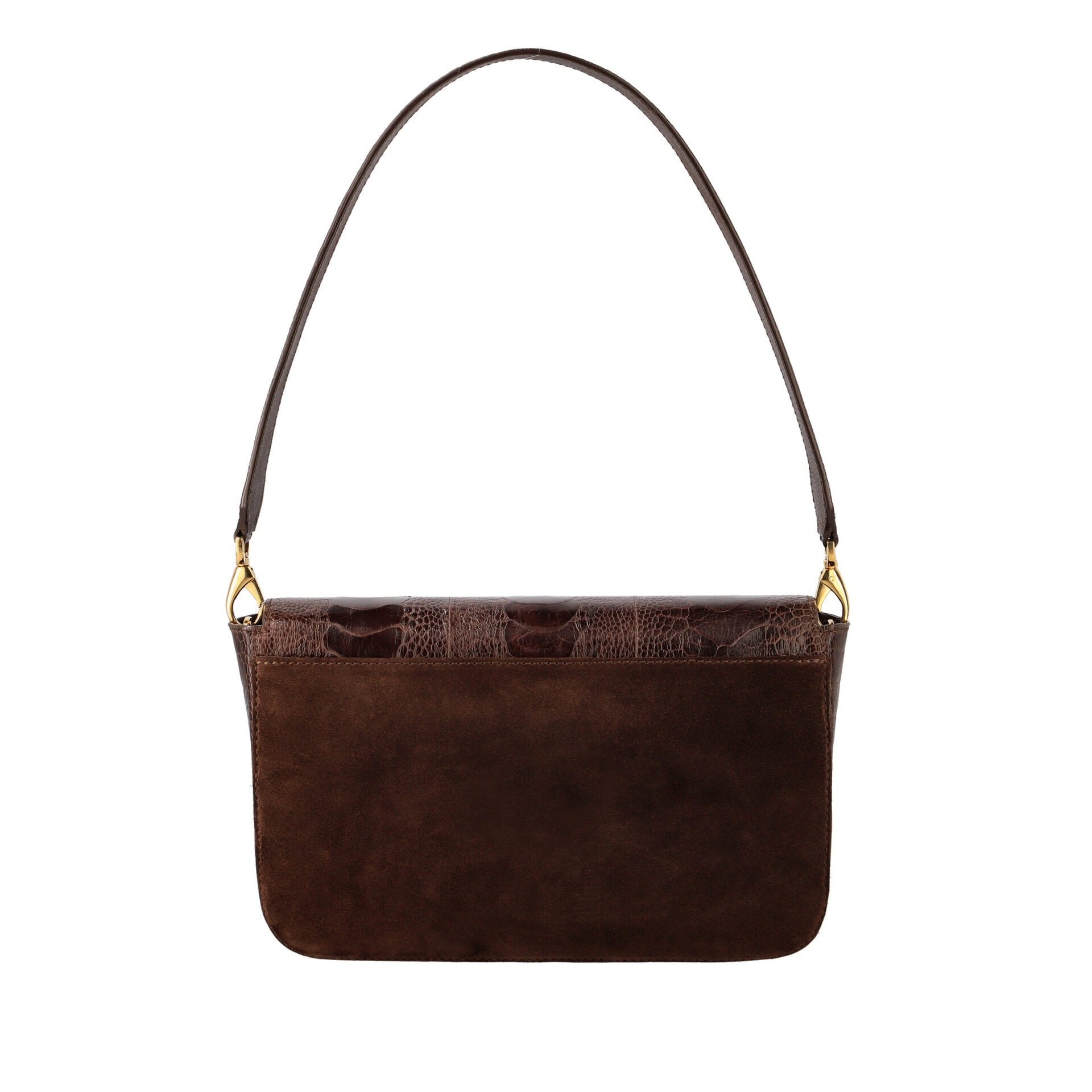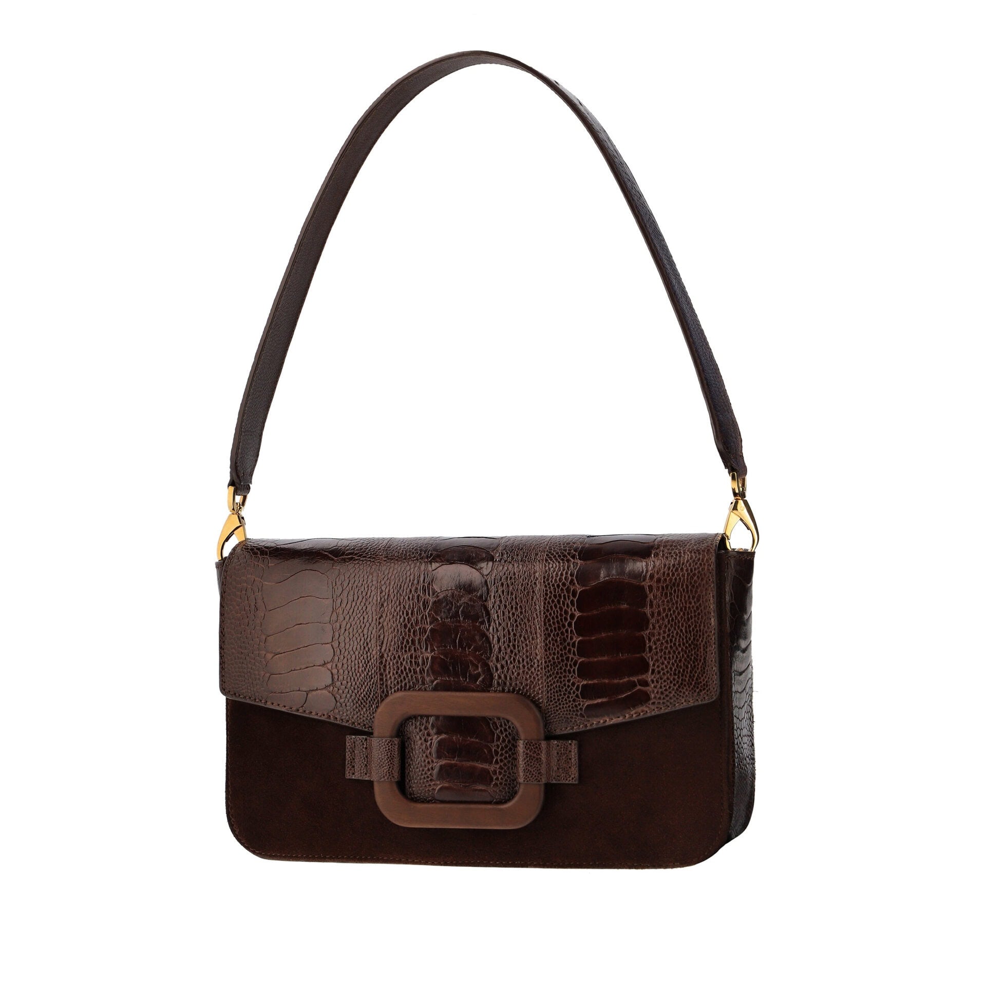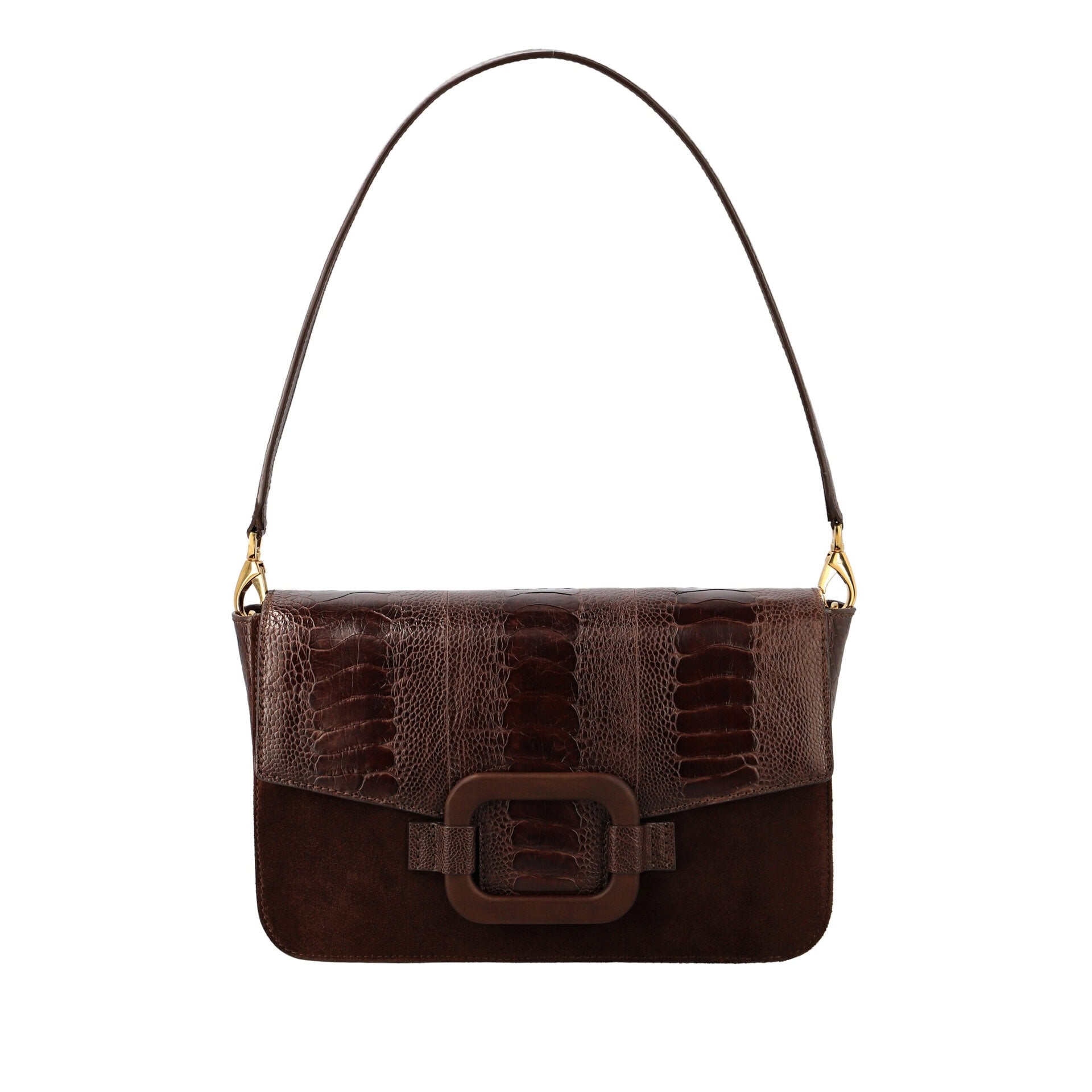 Large Deya in Chocolate Suede & Nicotine Ostrich Leg