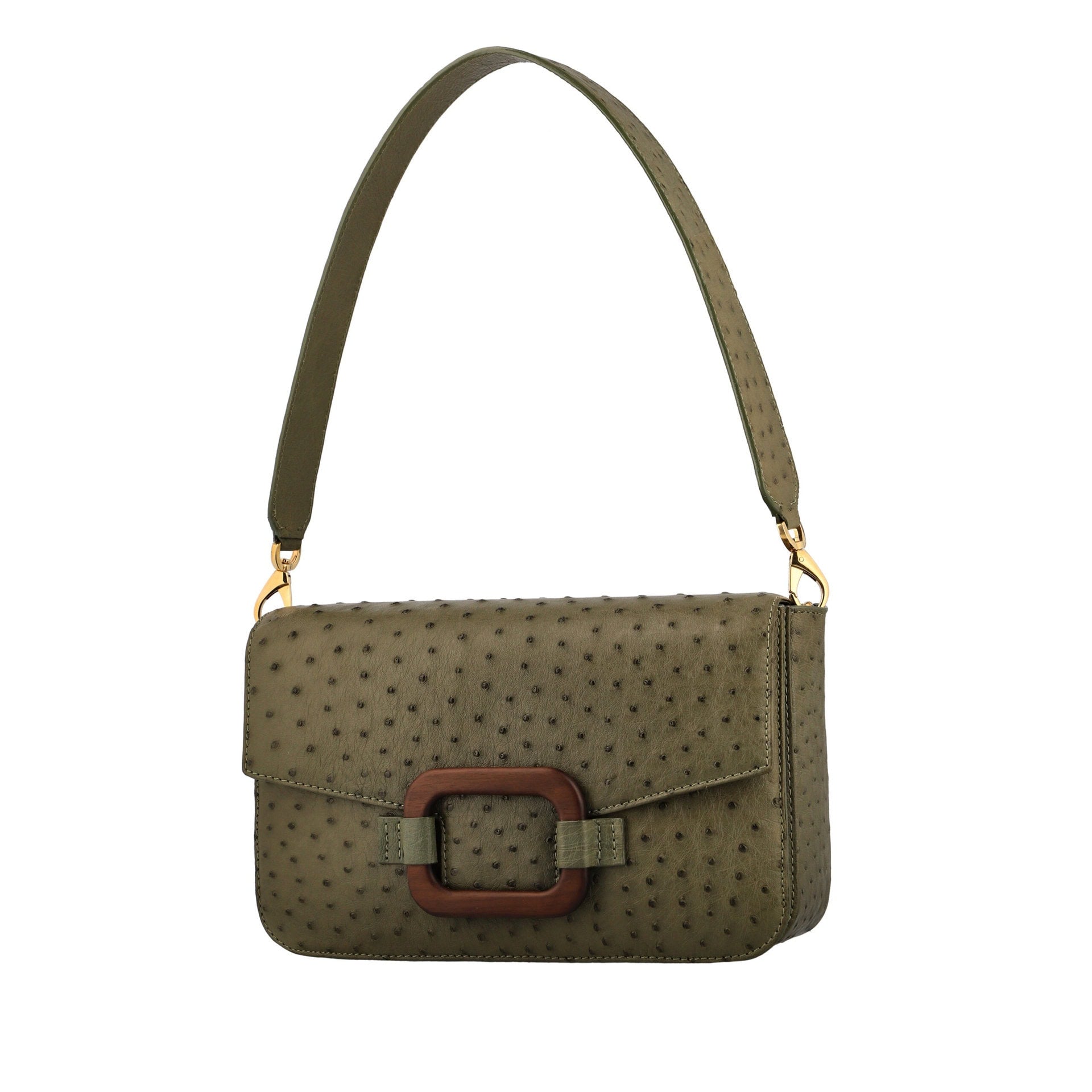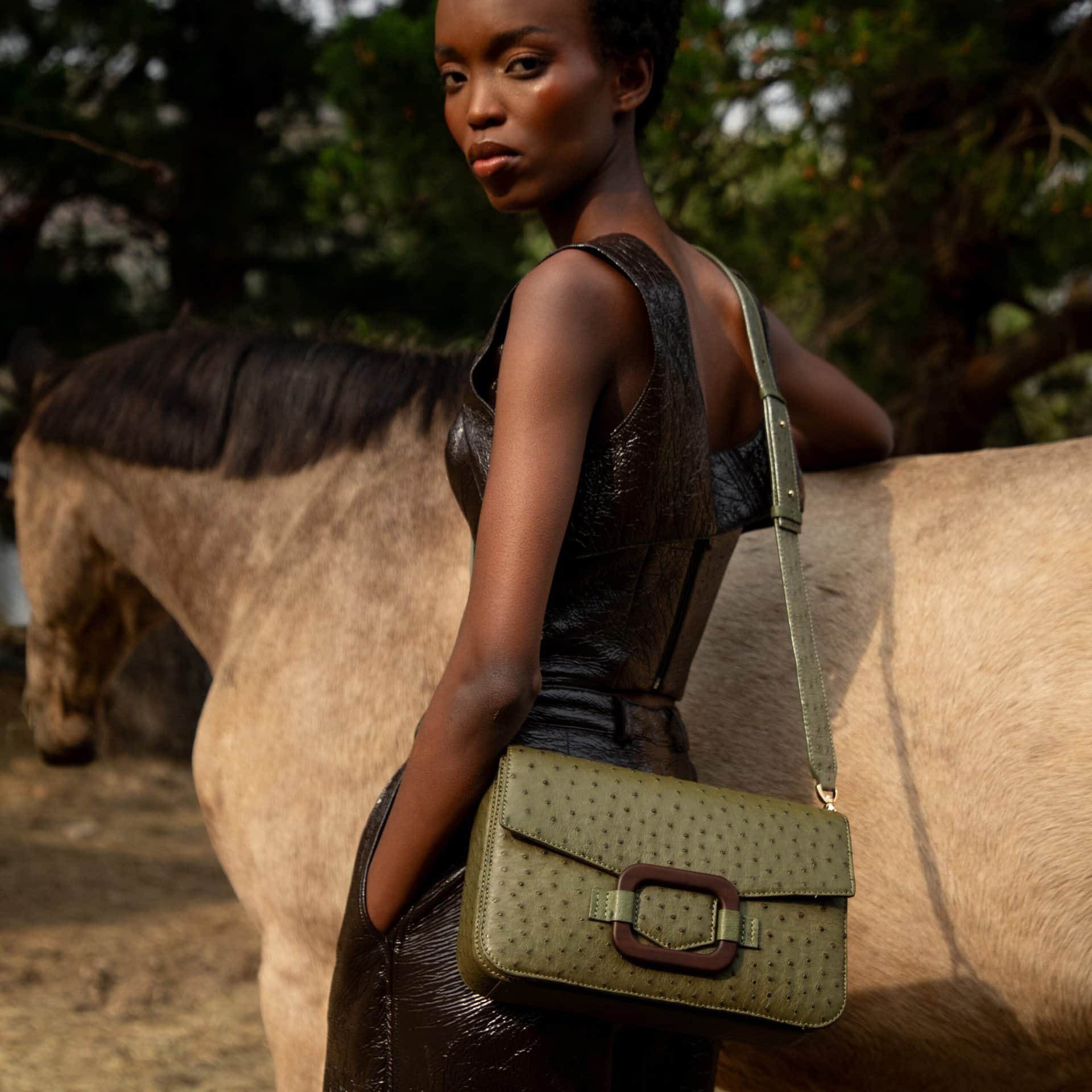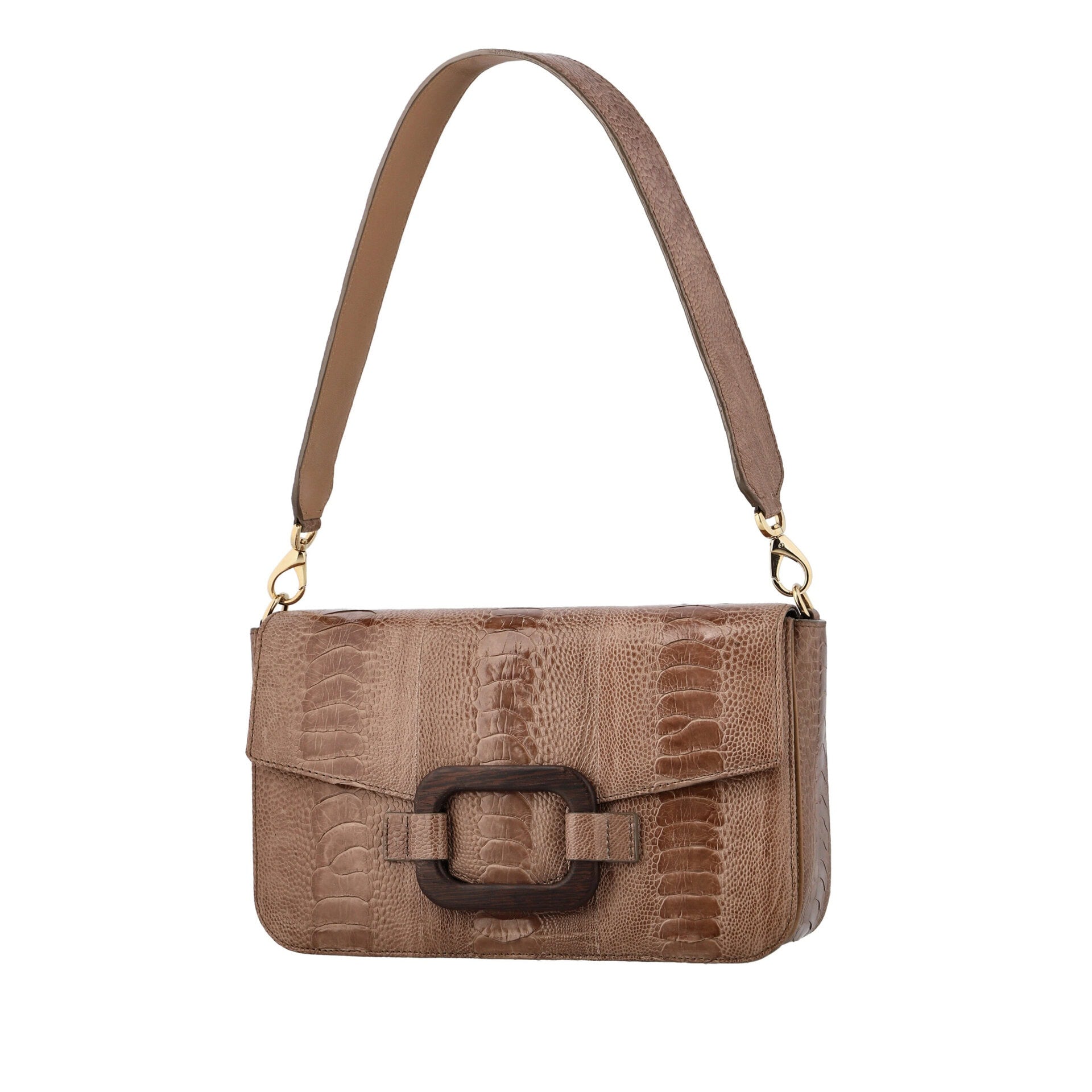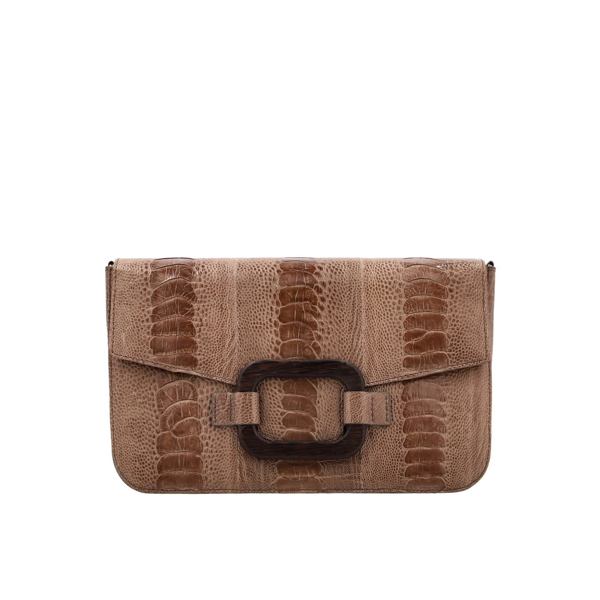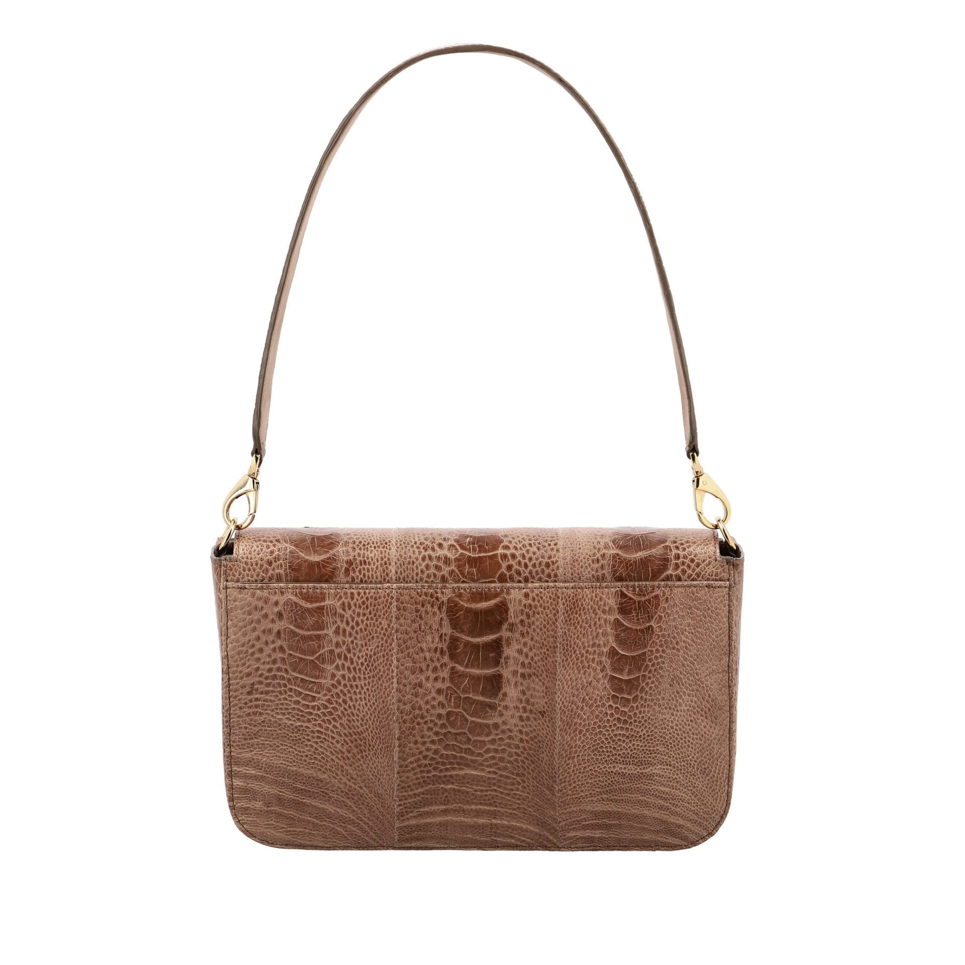Large Deya in Chocolate Suede & Nicotine Ostrich Leg
