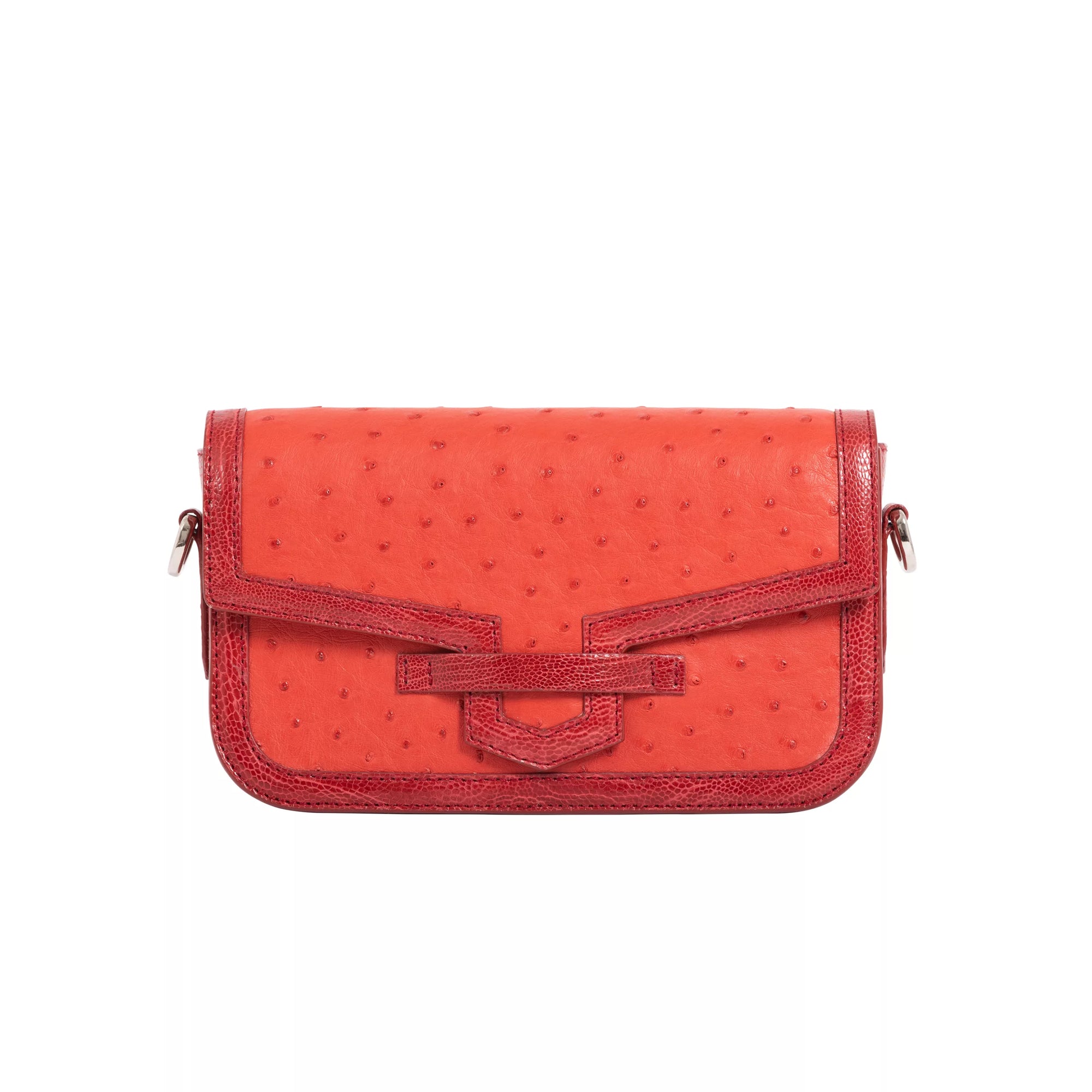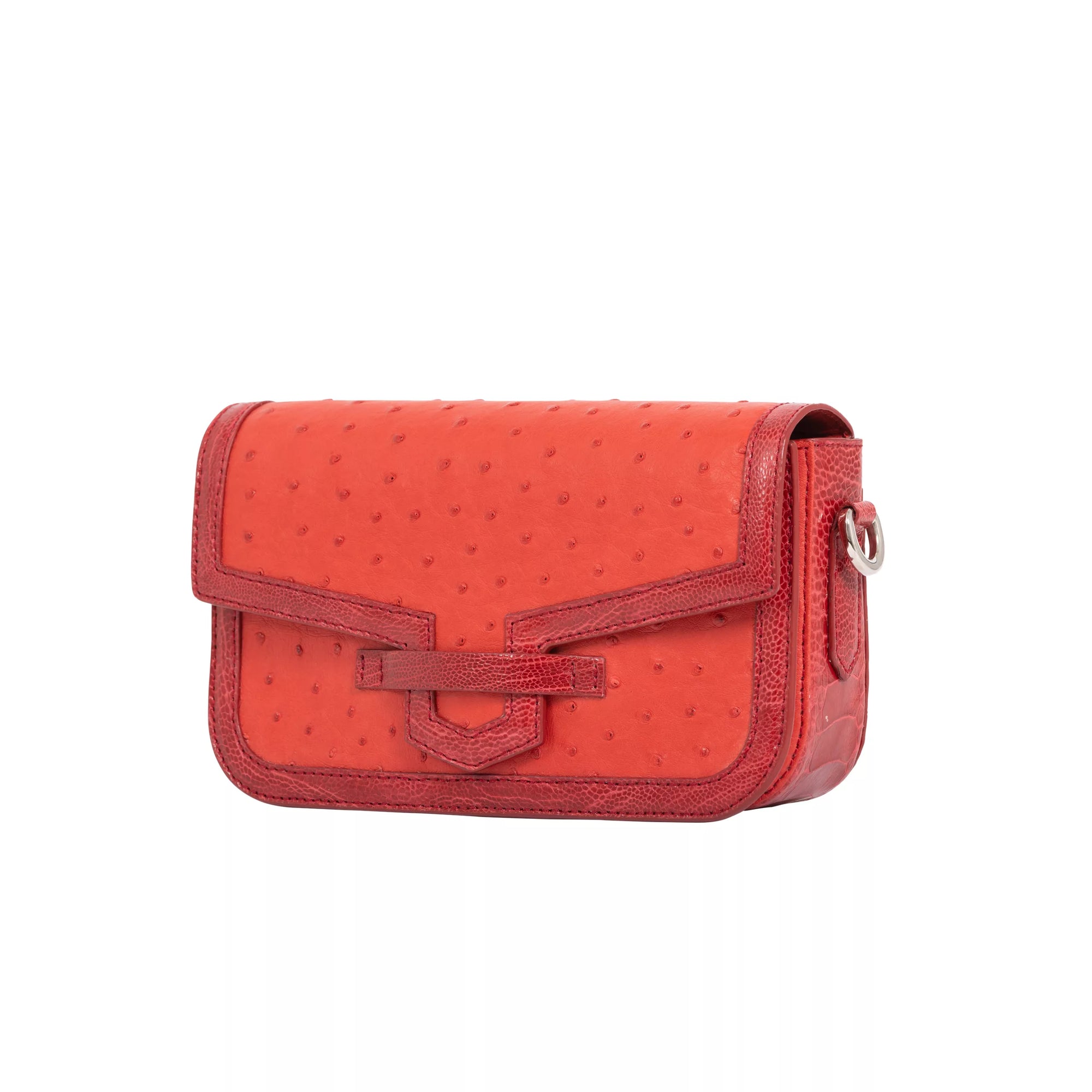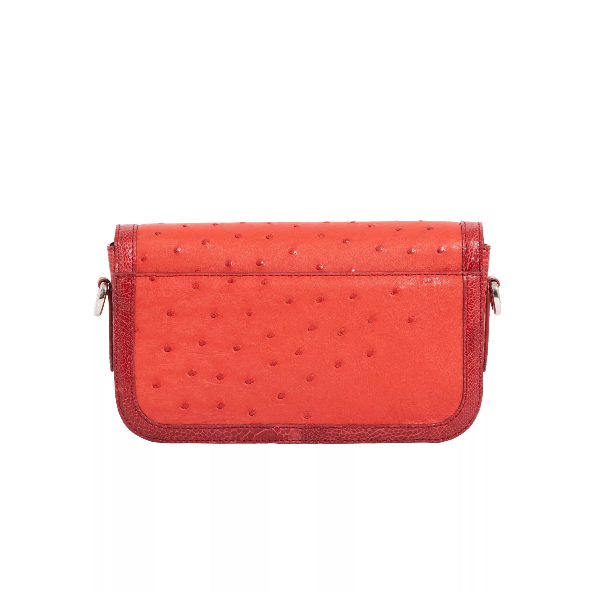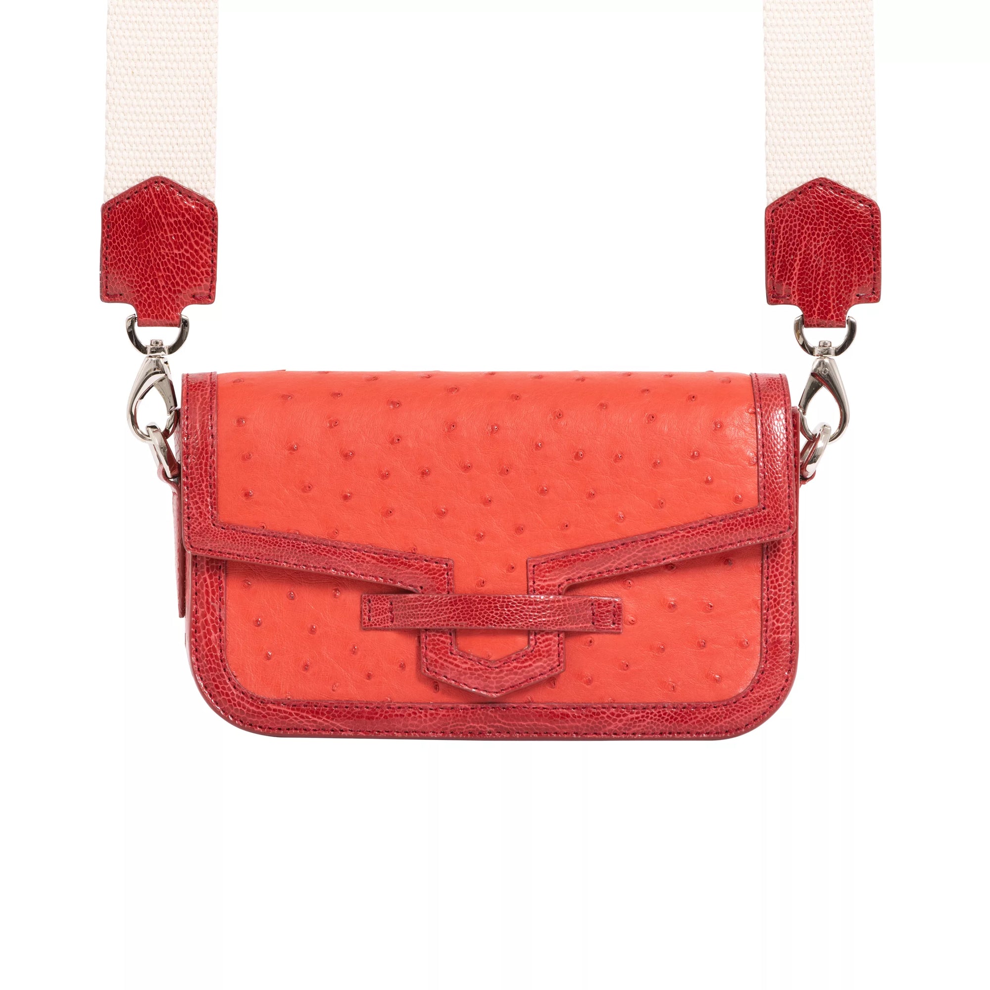 Caia Crossbody in Scarlet Red Ostrich & Flame Red Ostrich Leg Trim