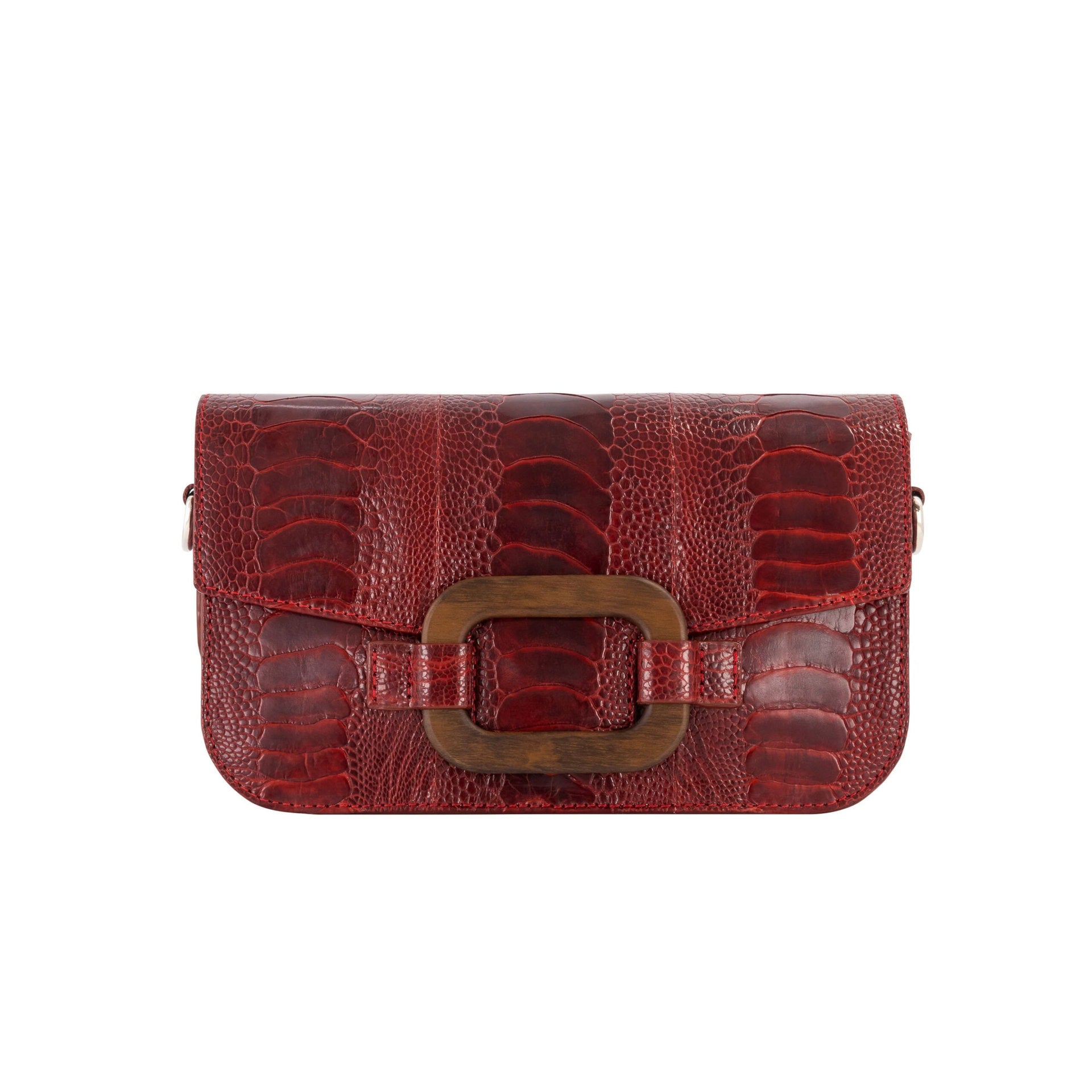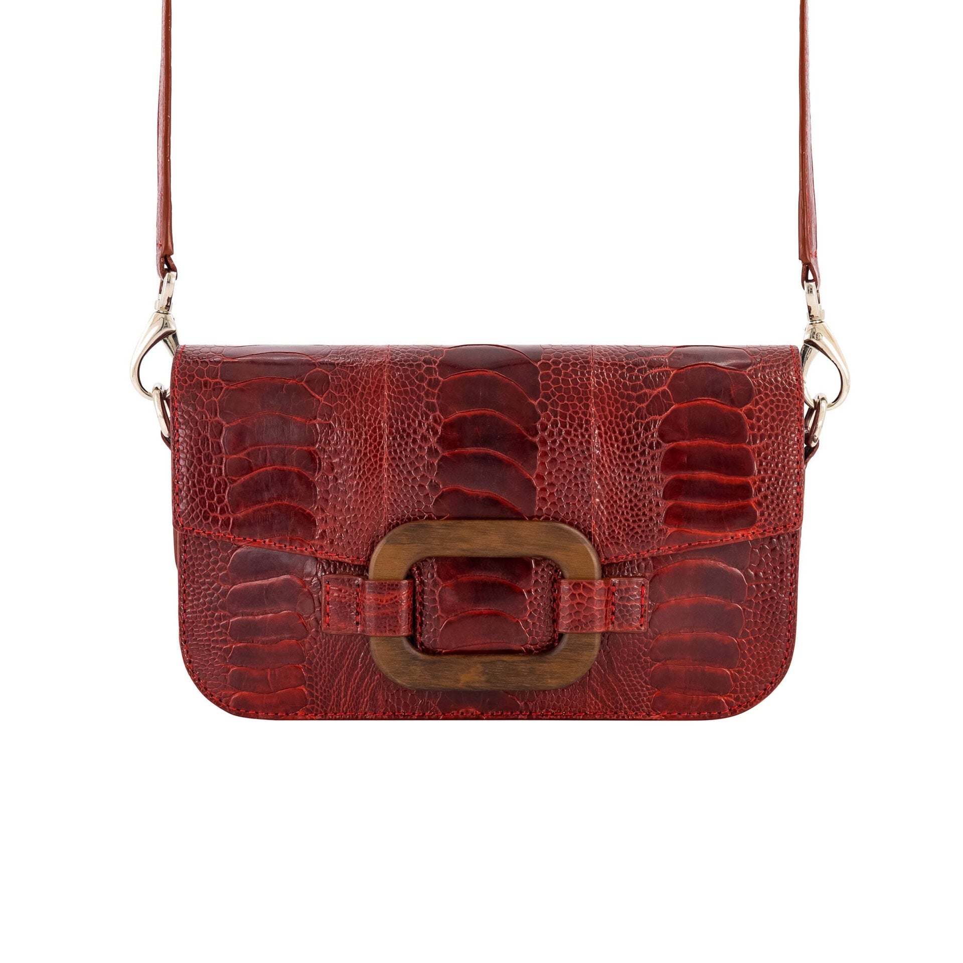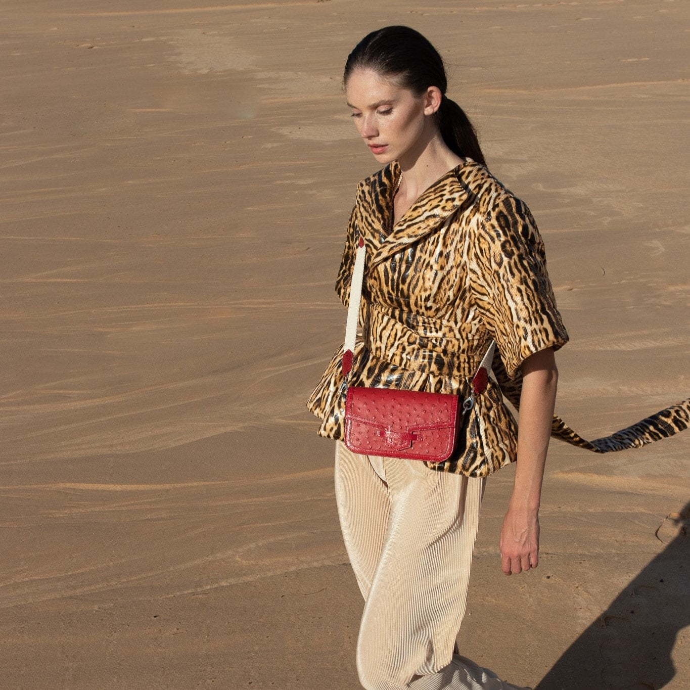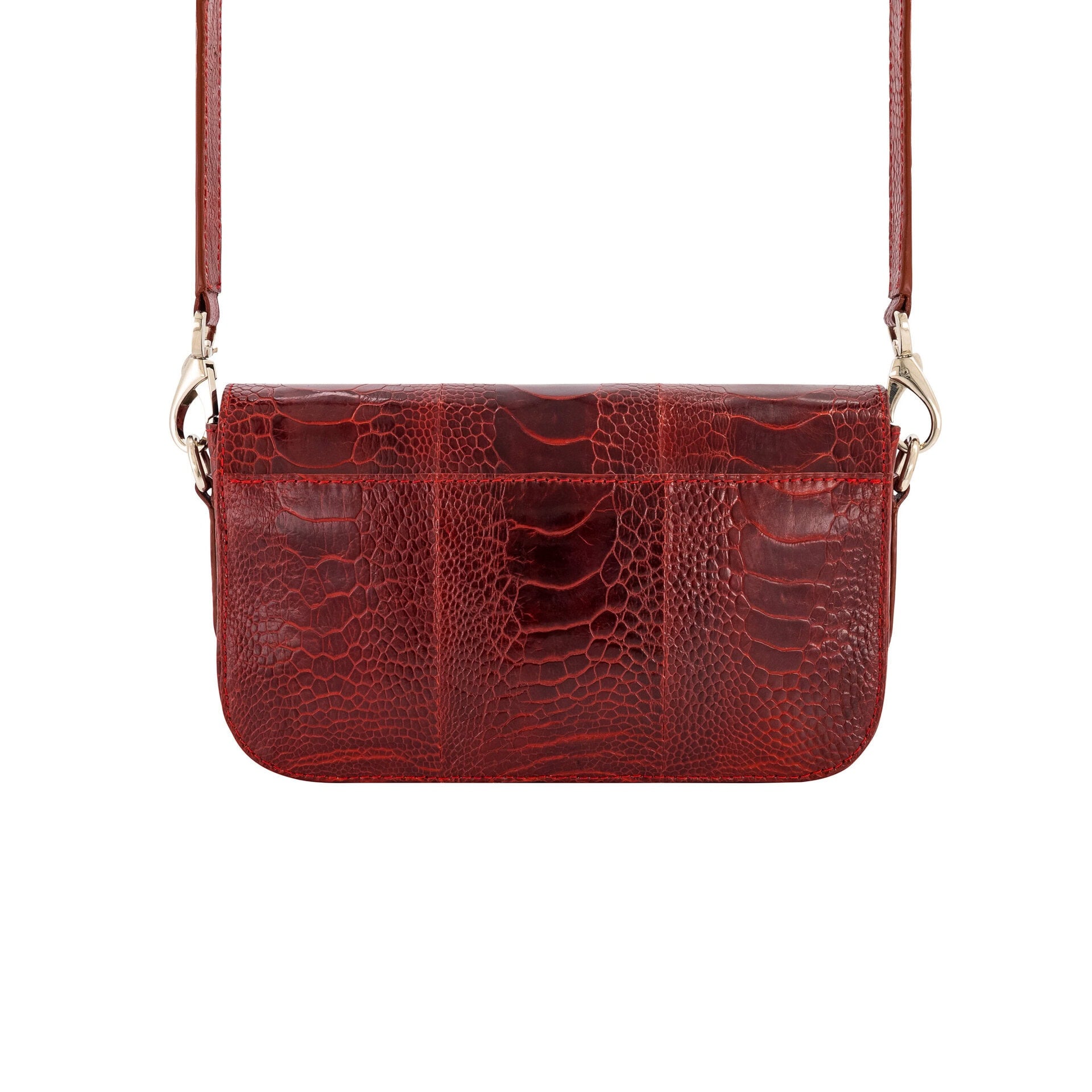 Caia Crossbody in Scarlet Red Ostrich & Flame Red Ostrich Leg Trim