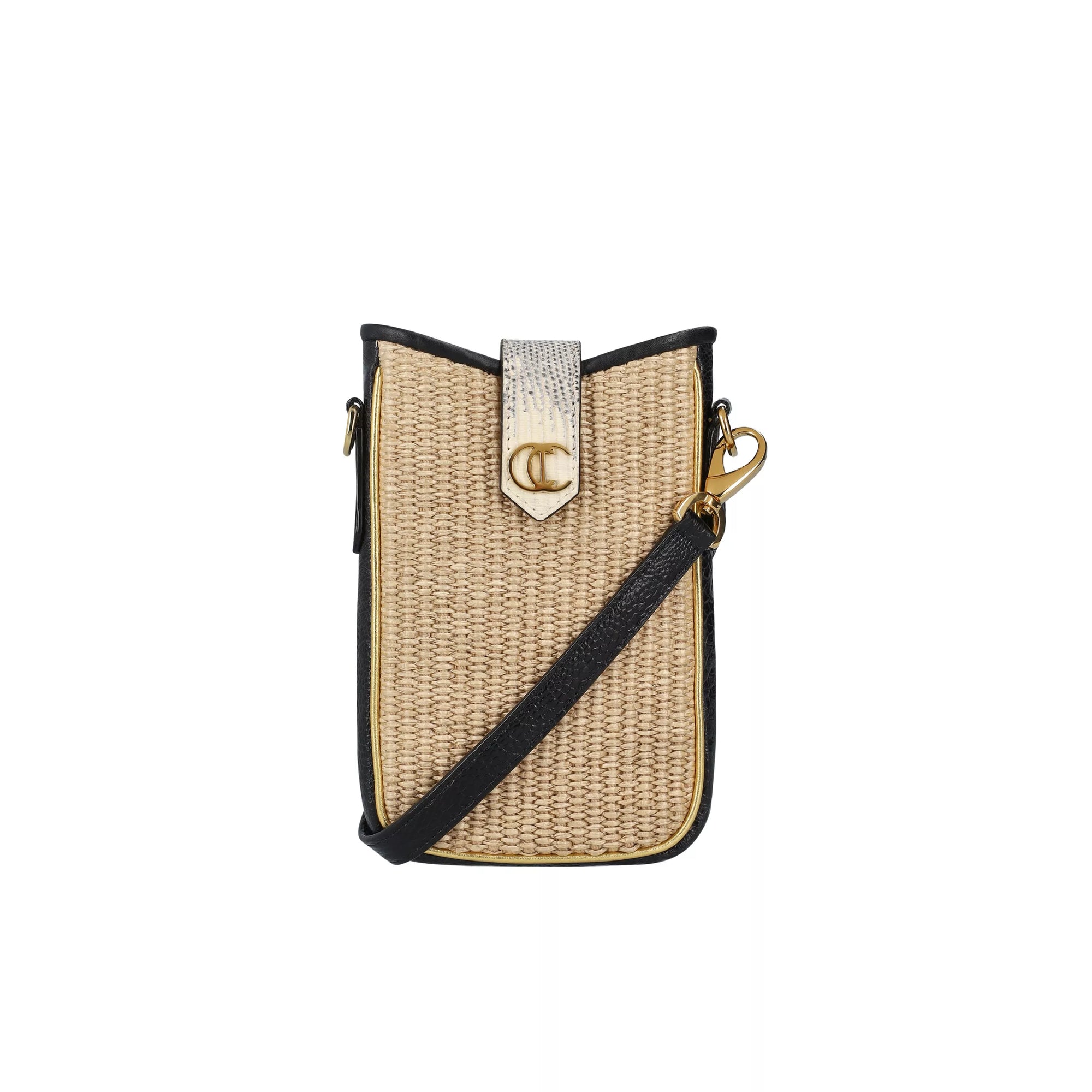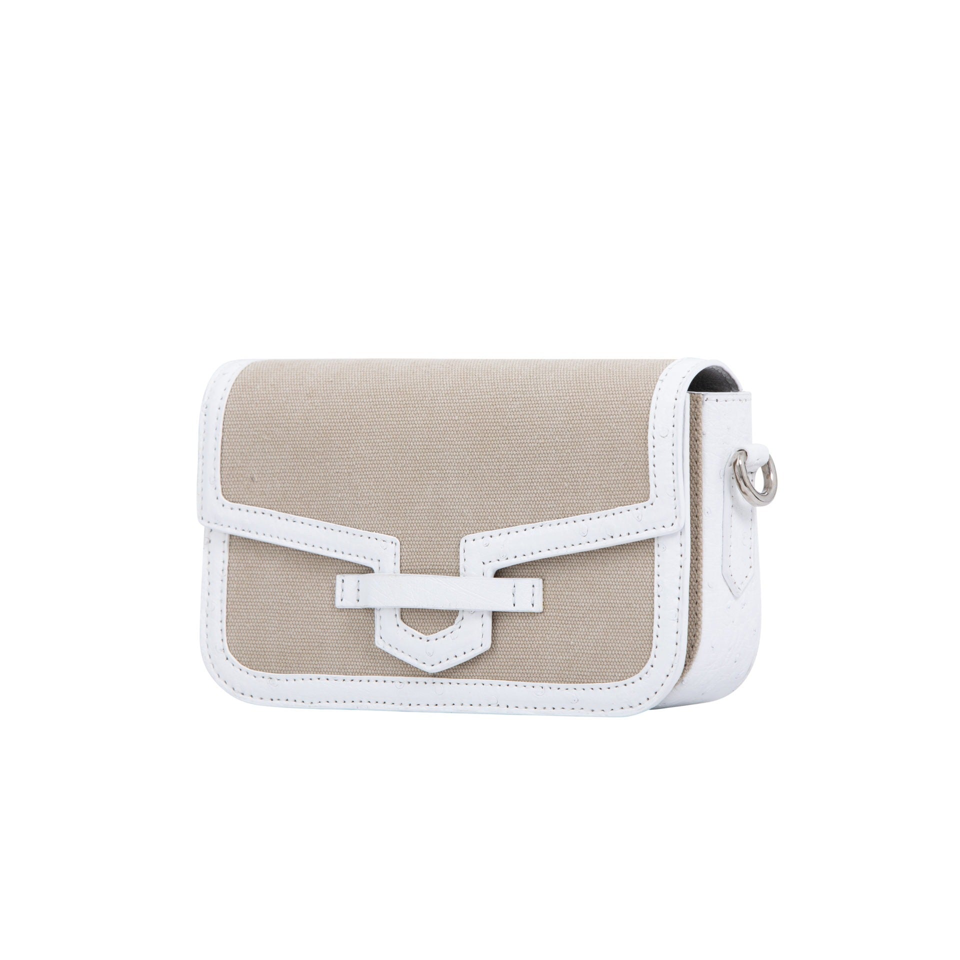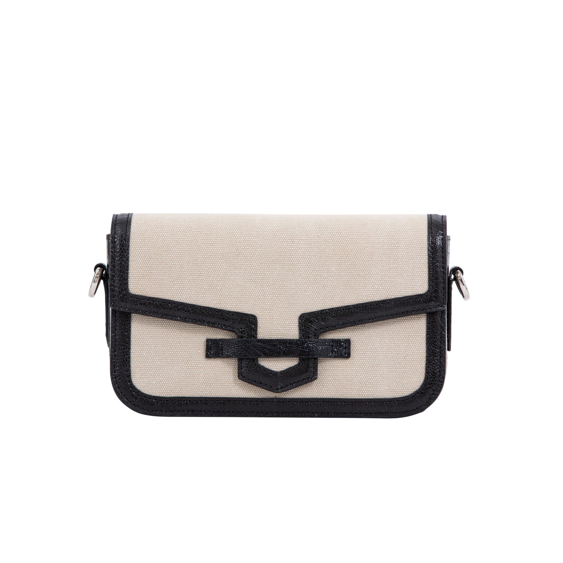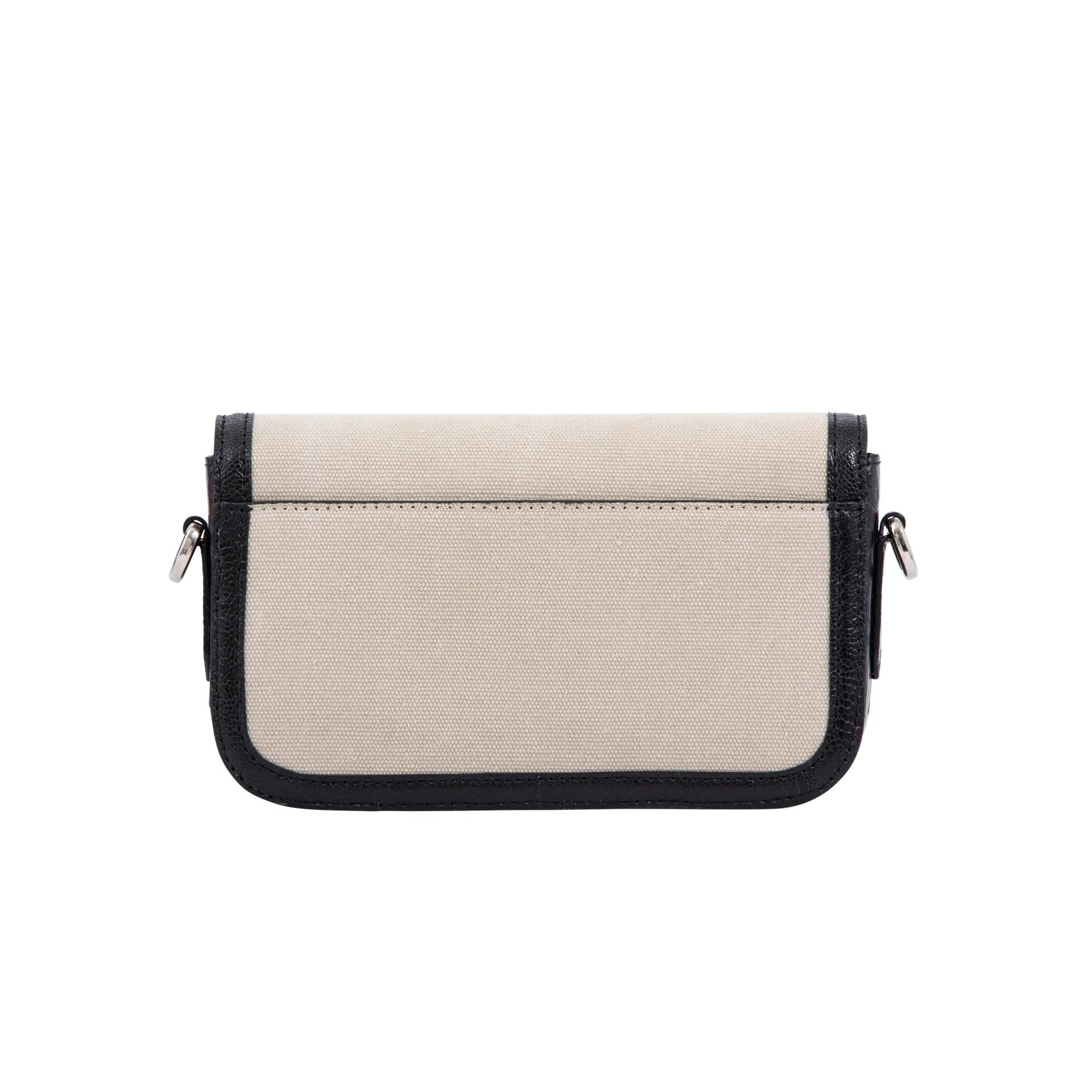 Caia Crossbody in Black Ostrich Leg & Beige Canvas