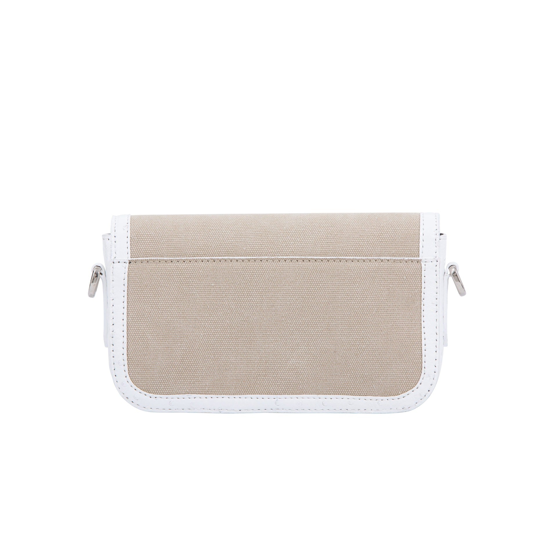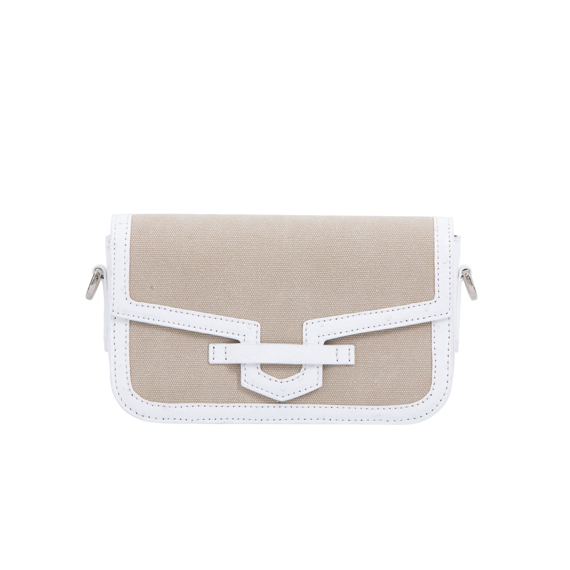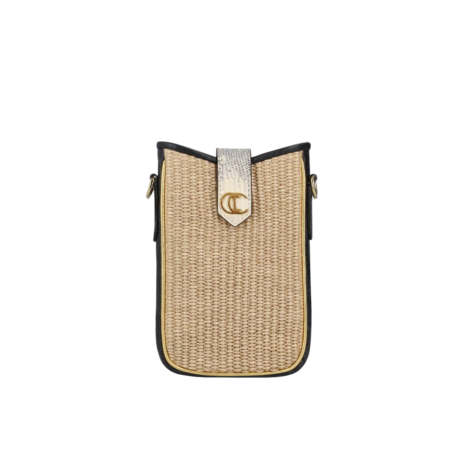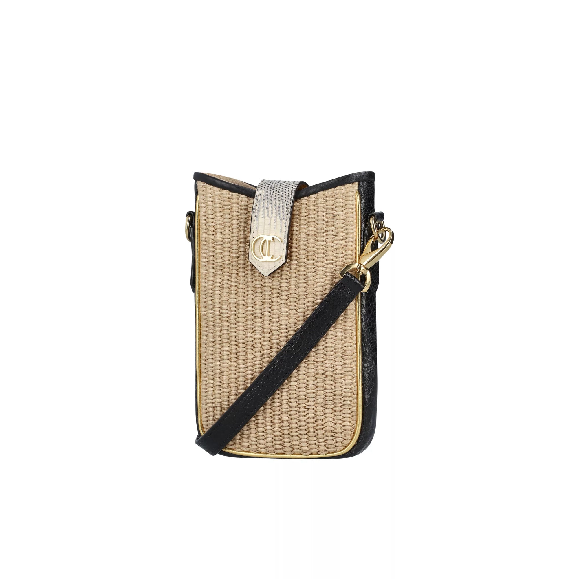 Caia Crossbody in Black Ostrich Leg & Beige Canvas