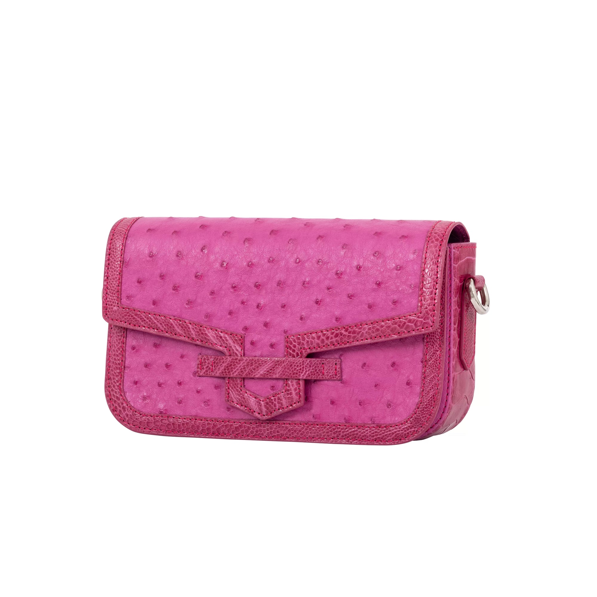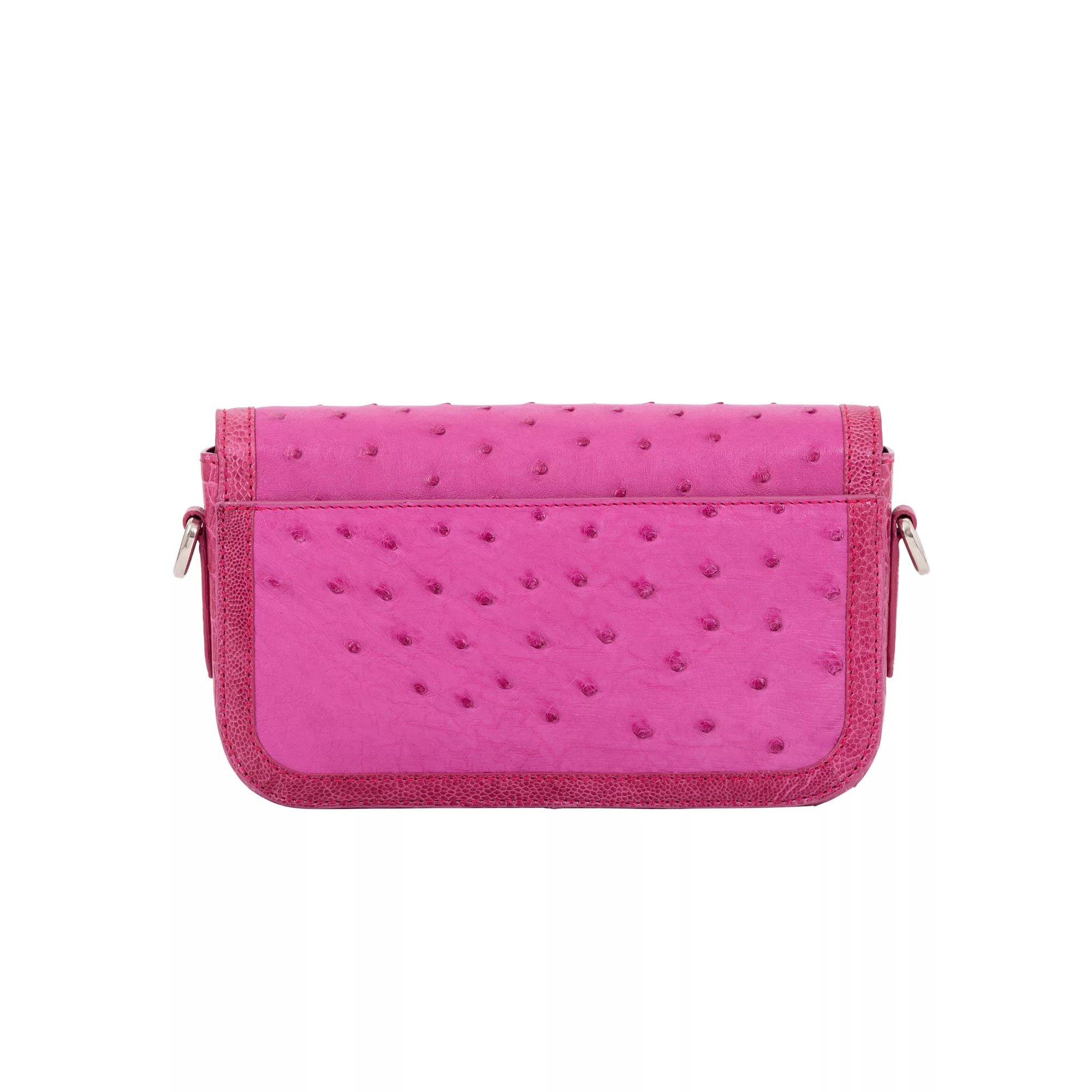 Caia Crossbody in Hot Pink Ostrich & Ostrich Leg Trim