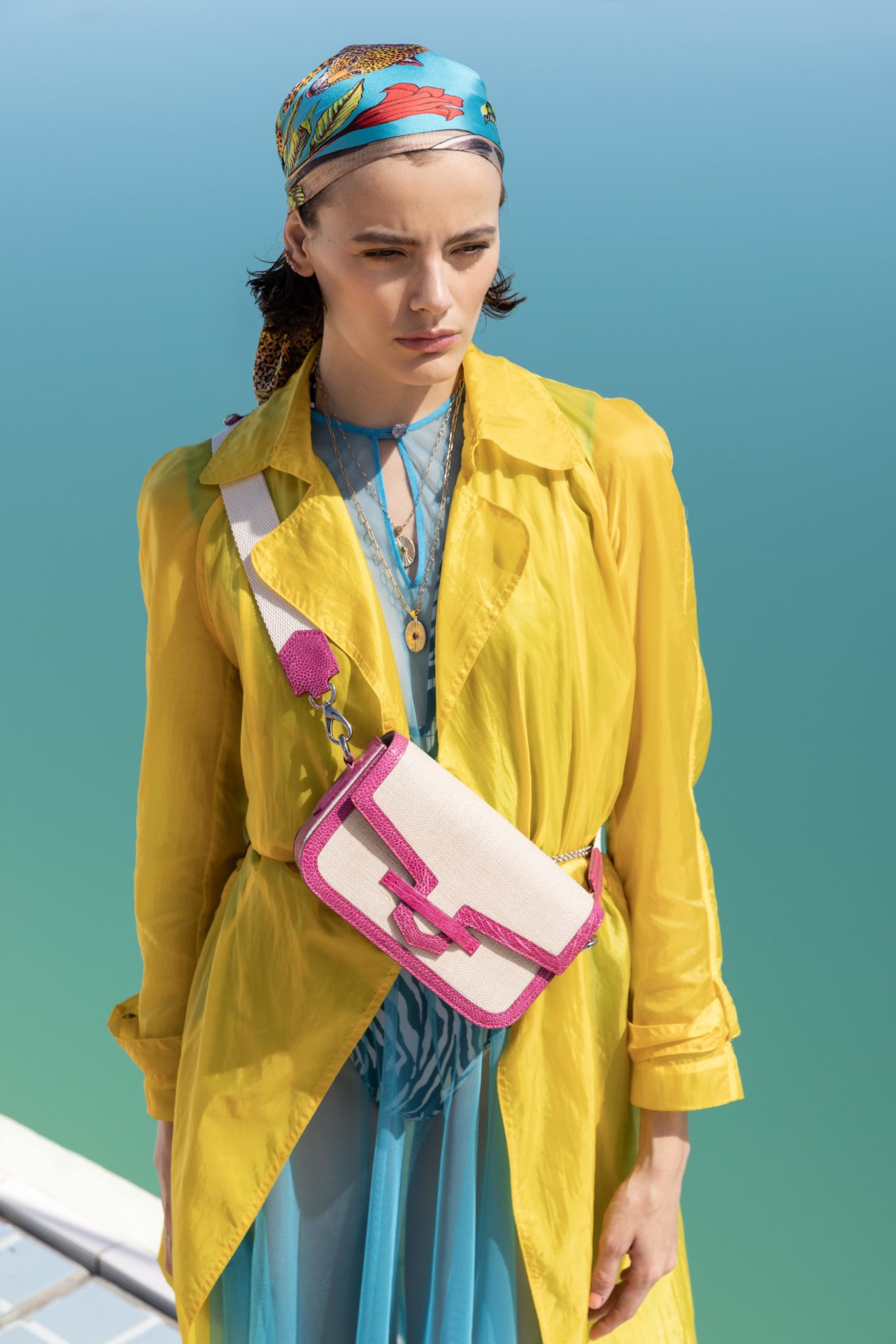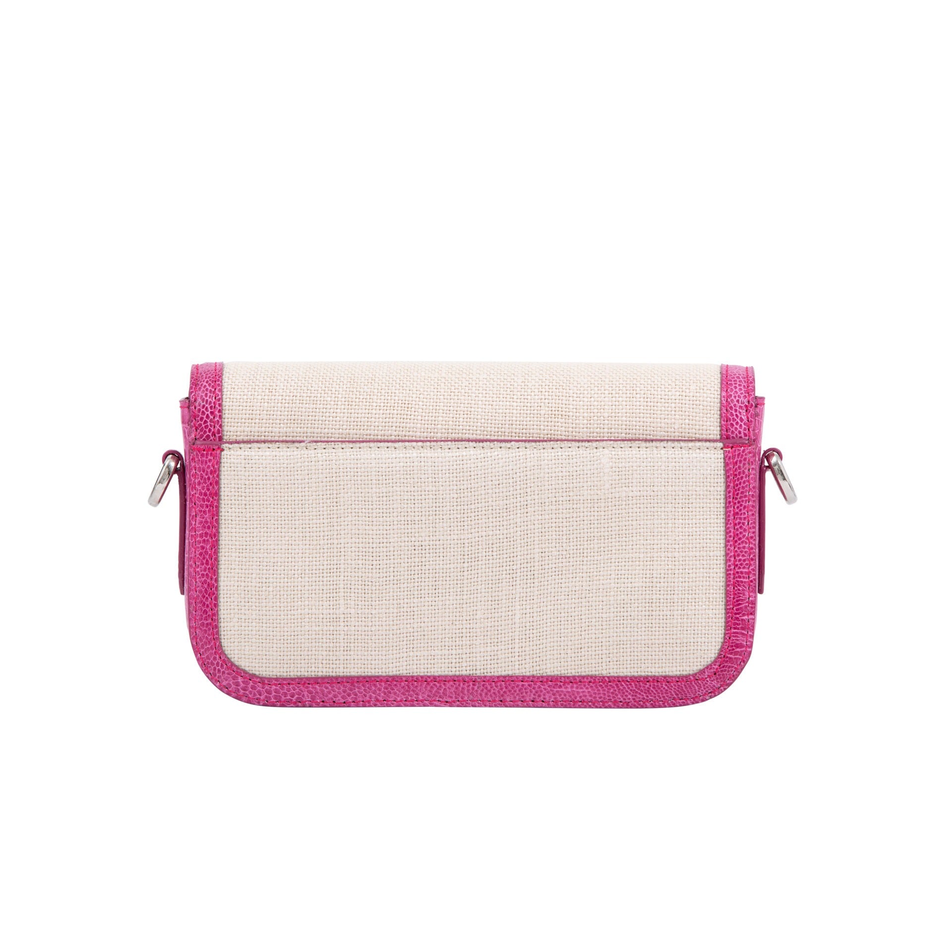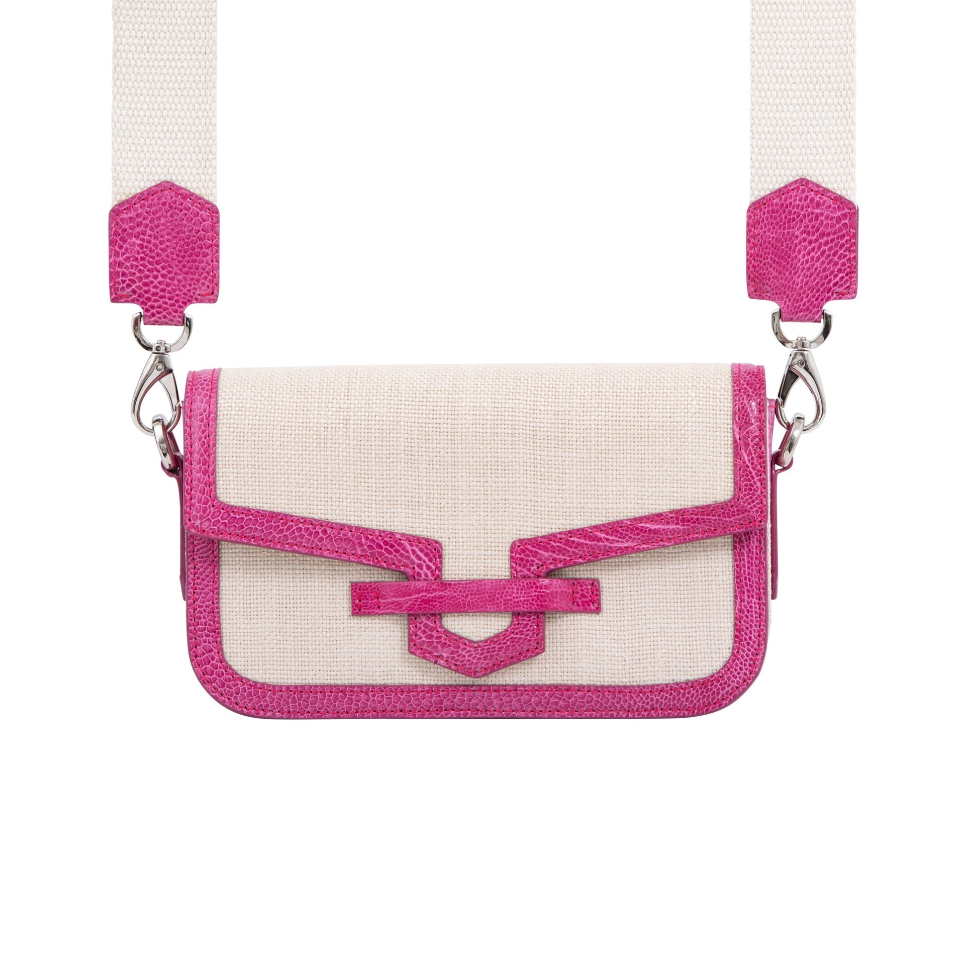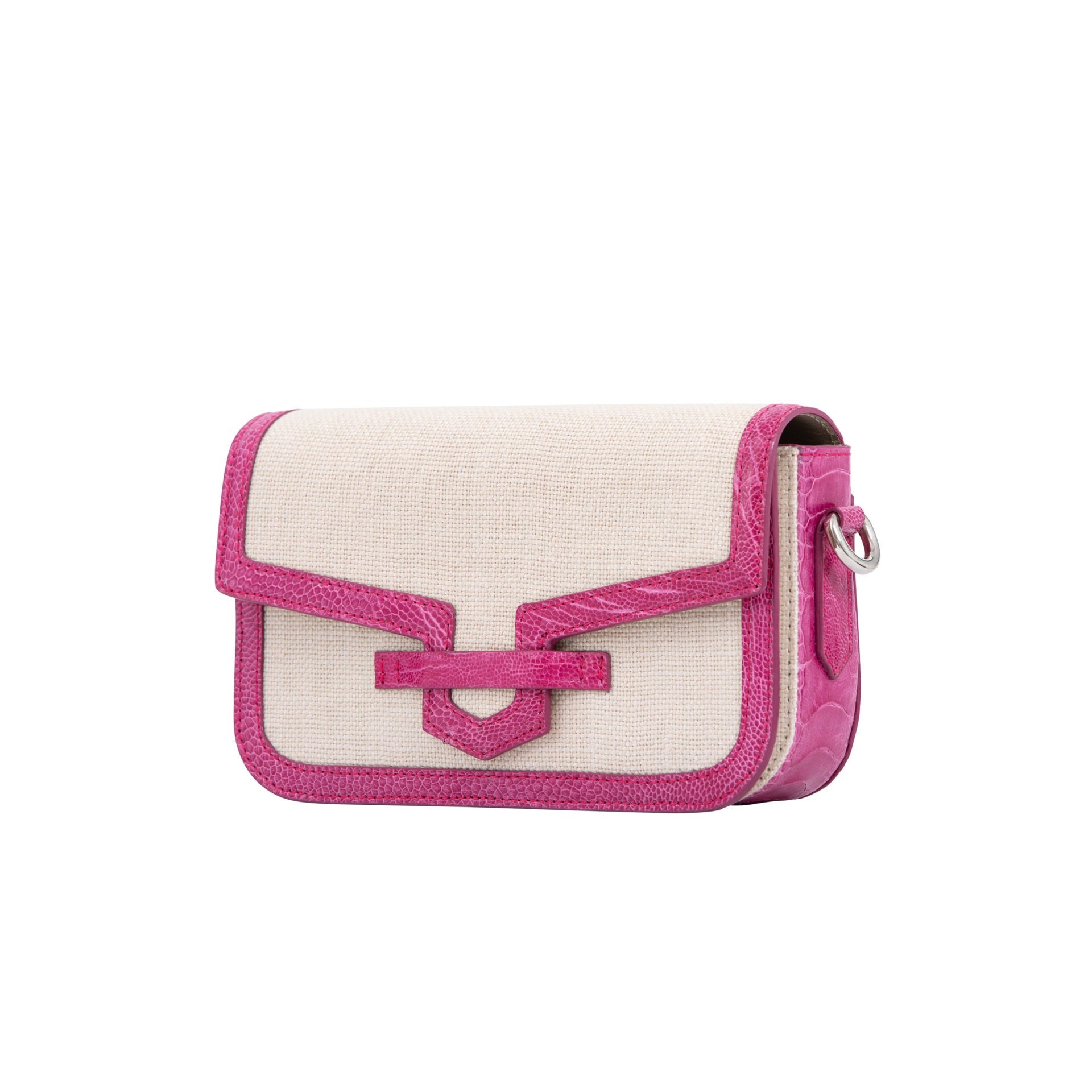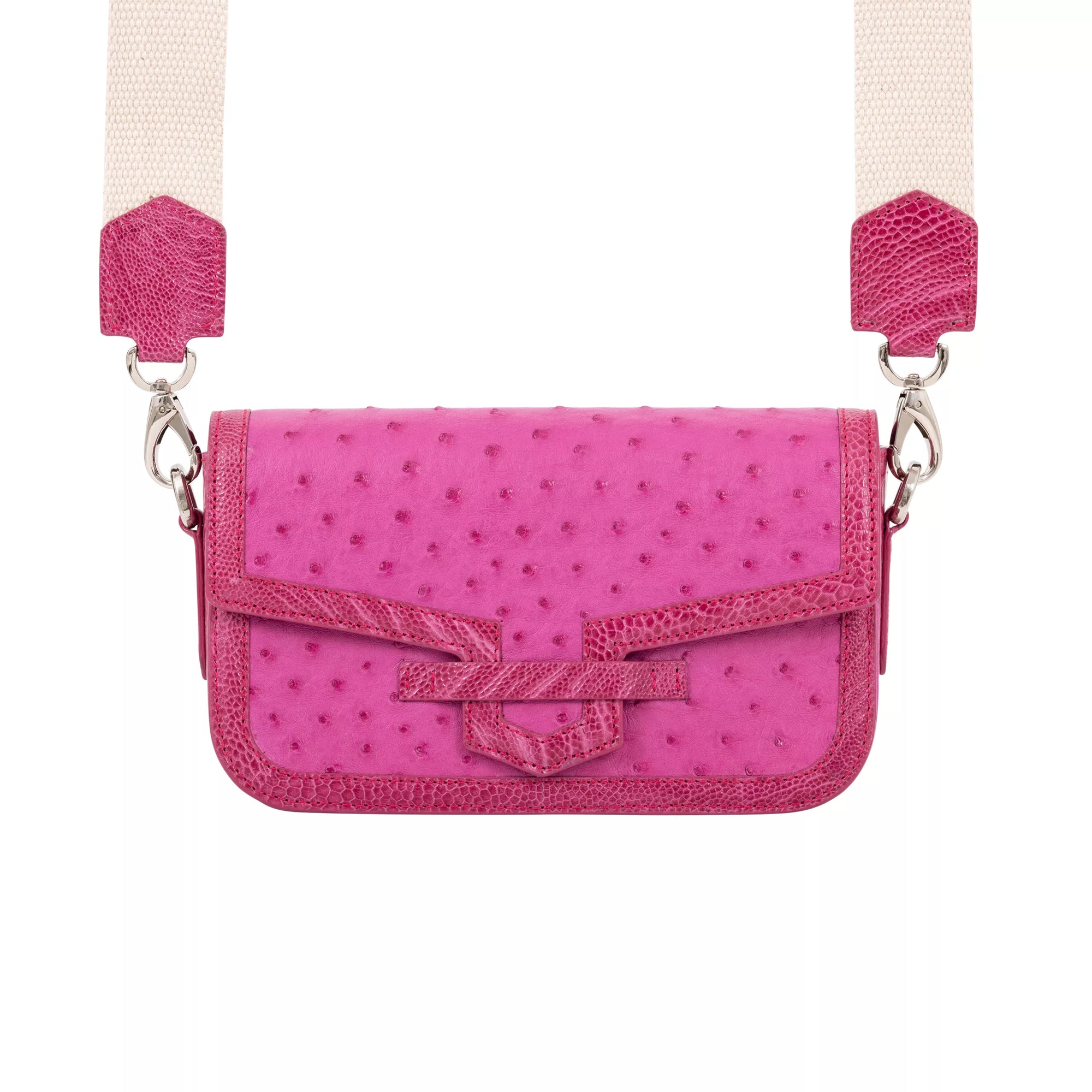Caia Crossbody in Cyclament Ostrich Leg & Beige Canvas
