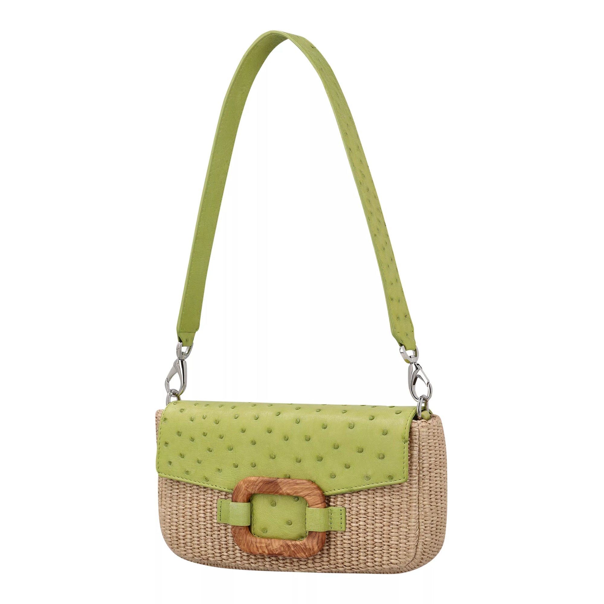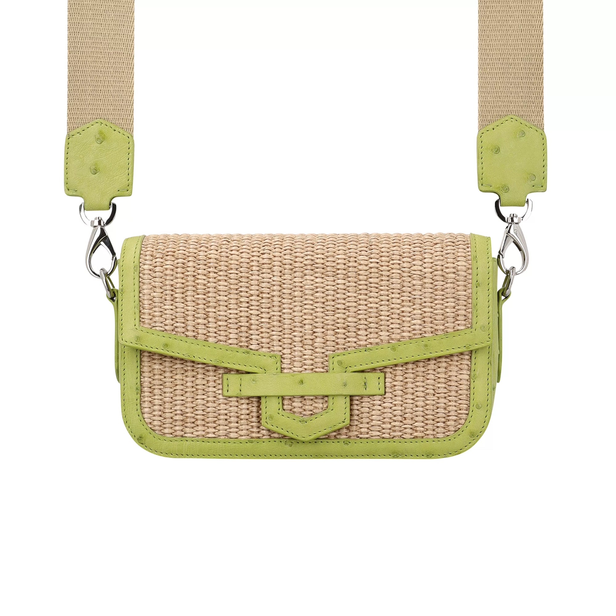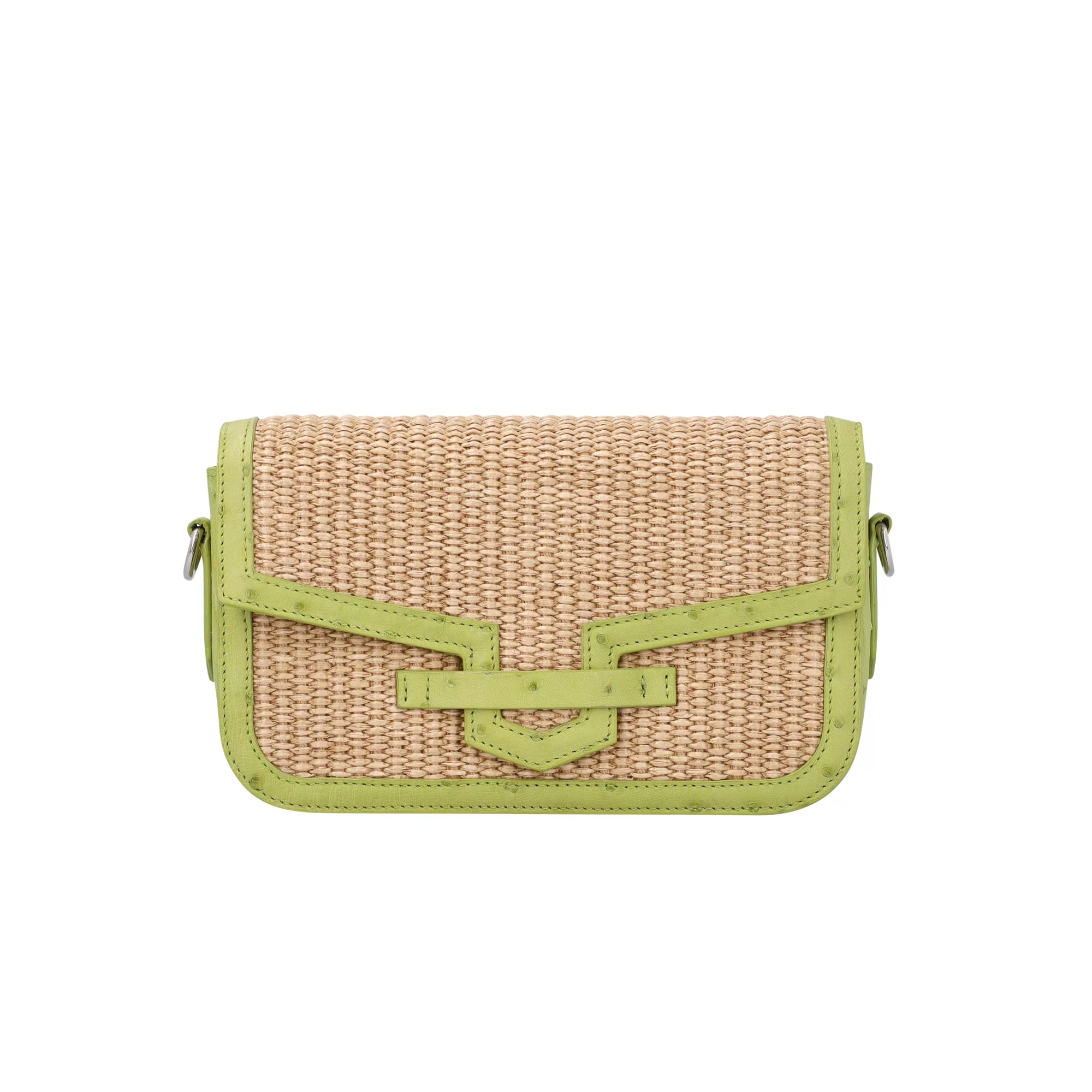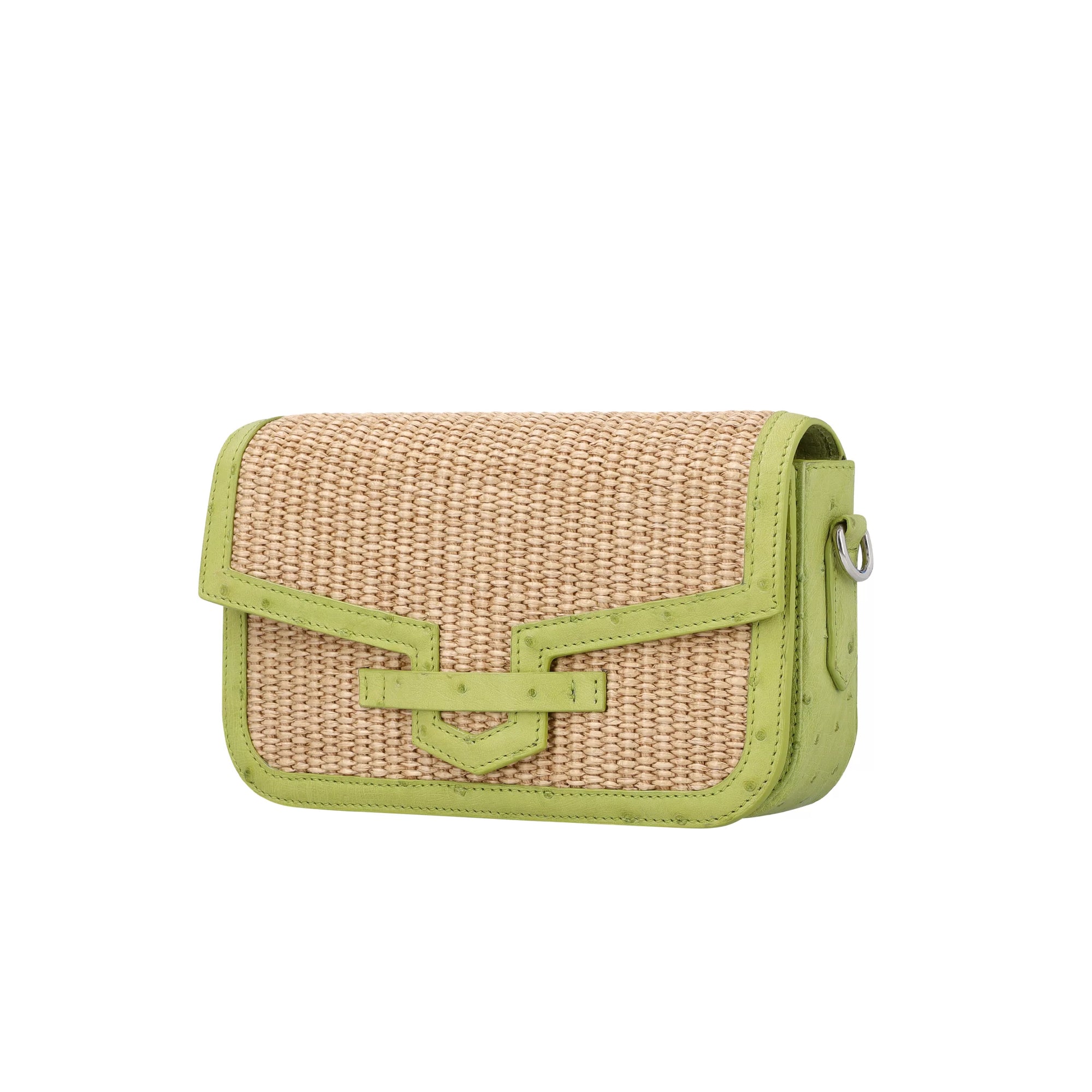Caia Crossbody in Chartreuse Ostrich & Raffia