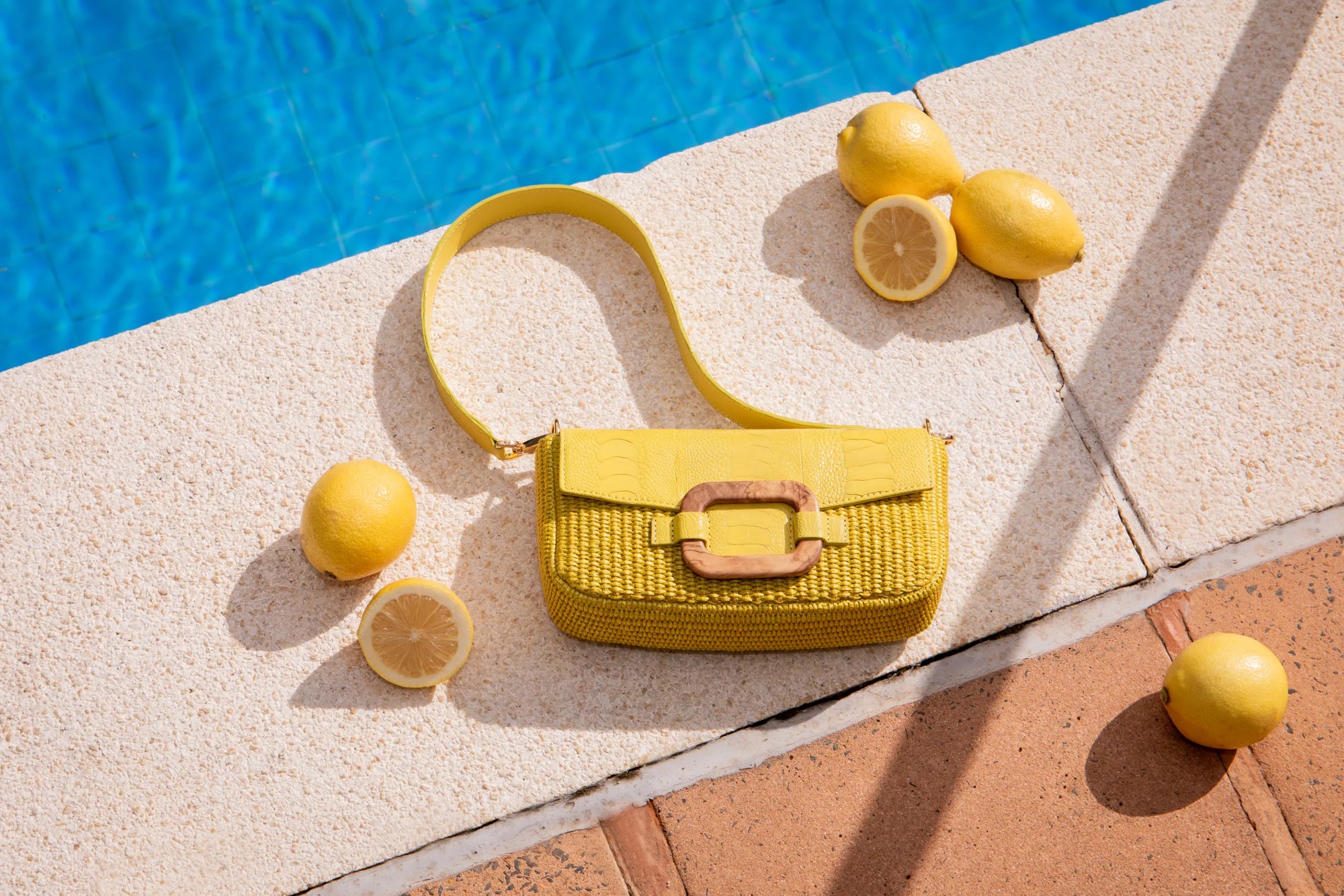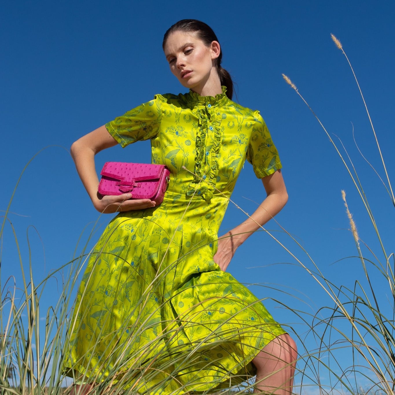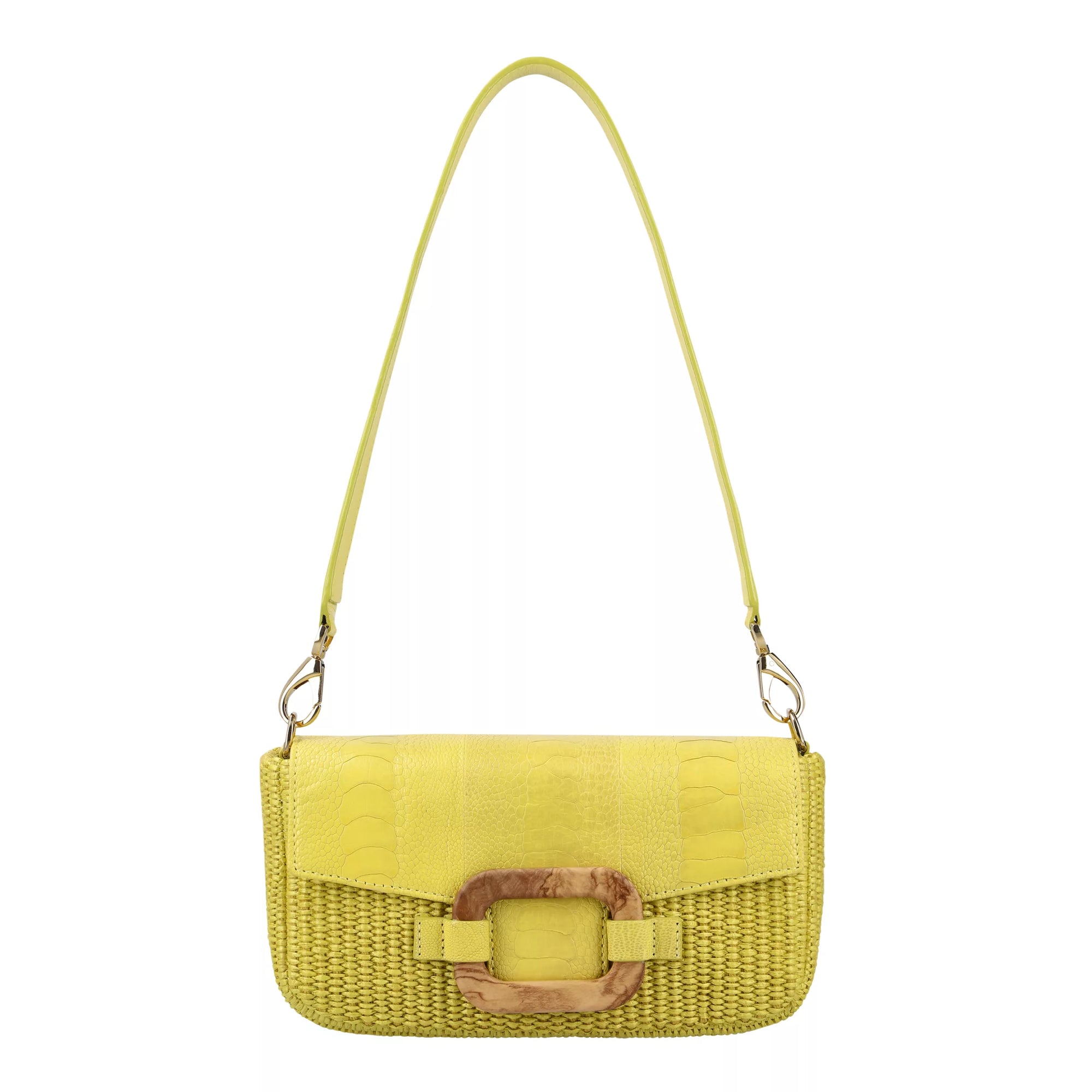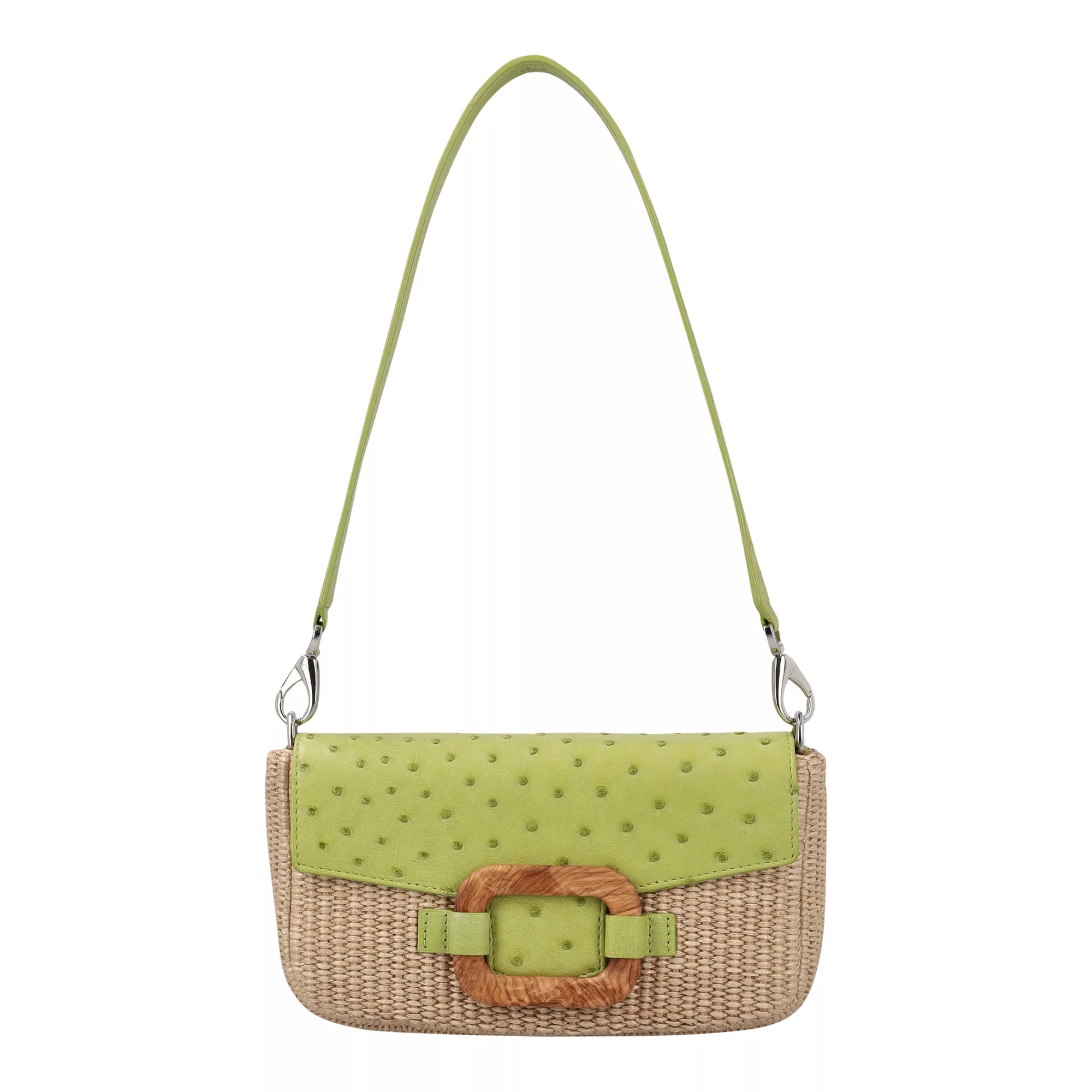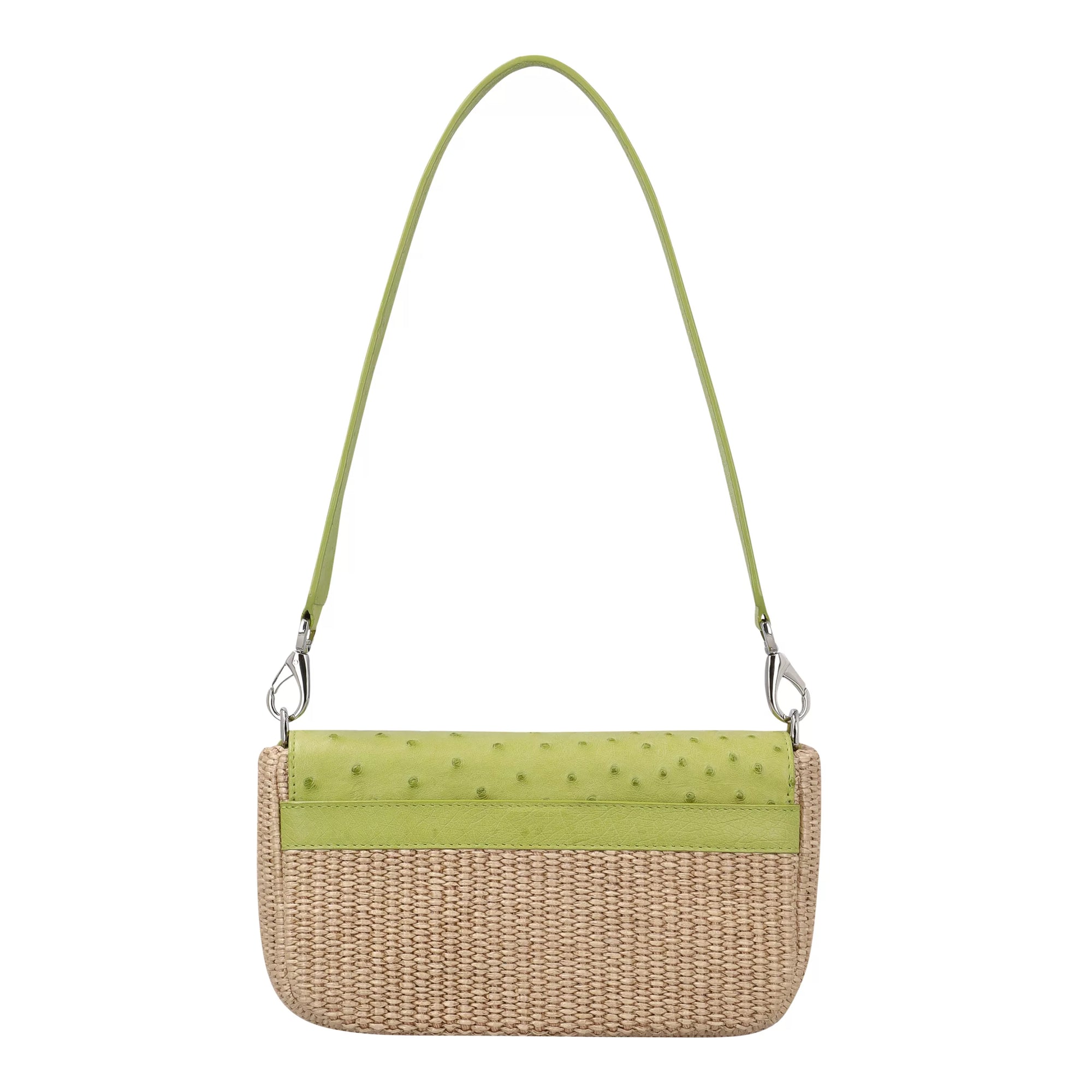 Caia Crossbody in Chartreuse Ostrich & Raffia