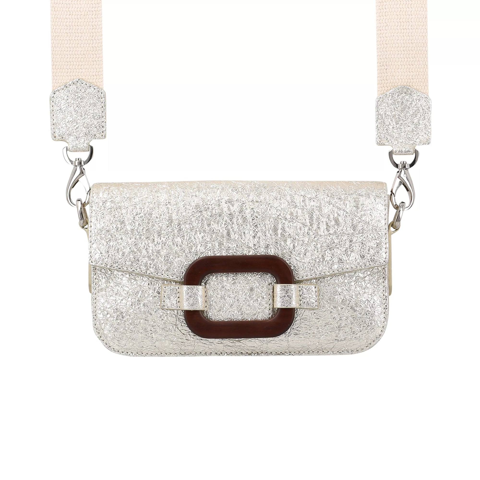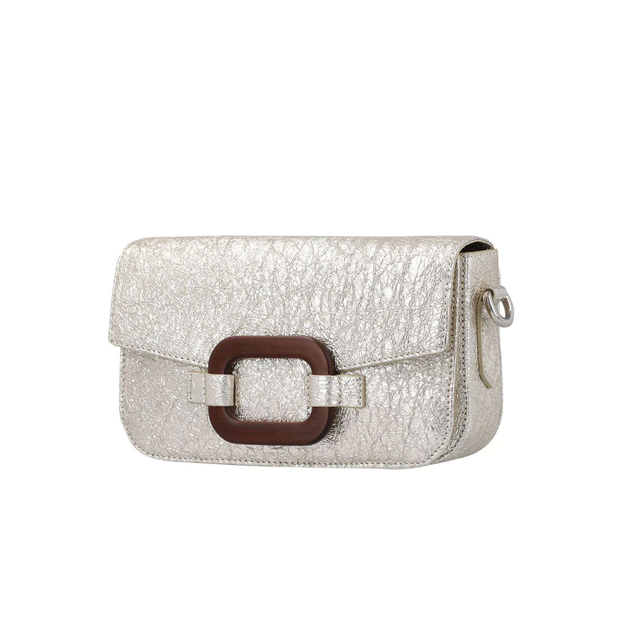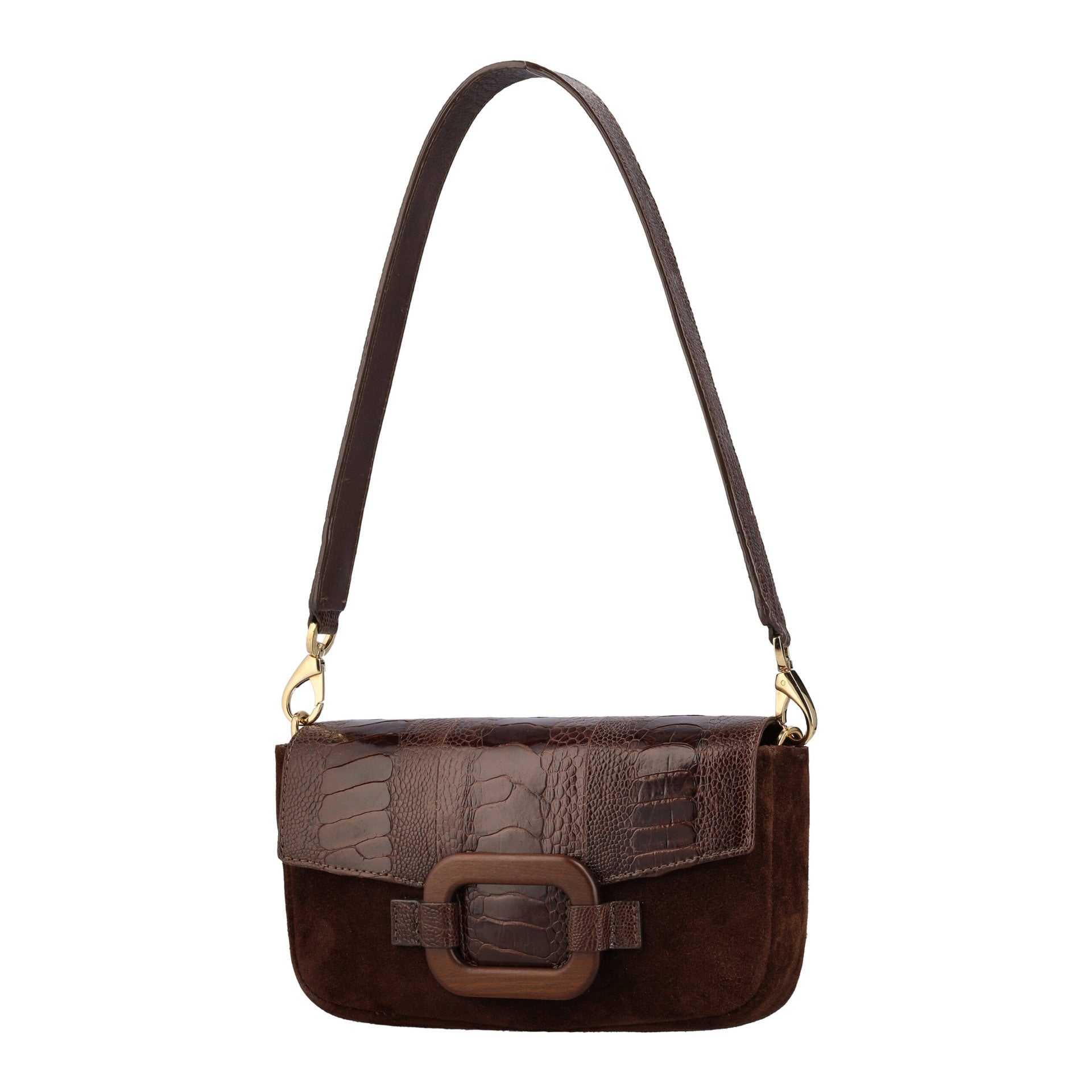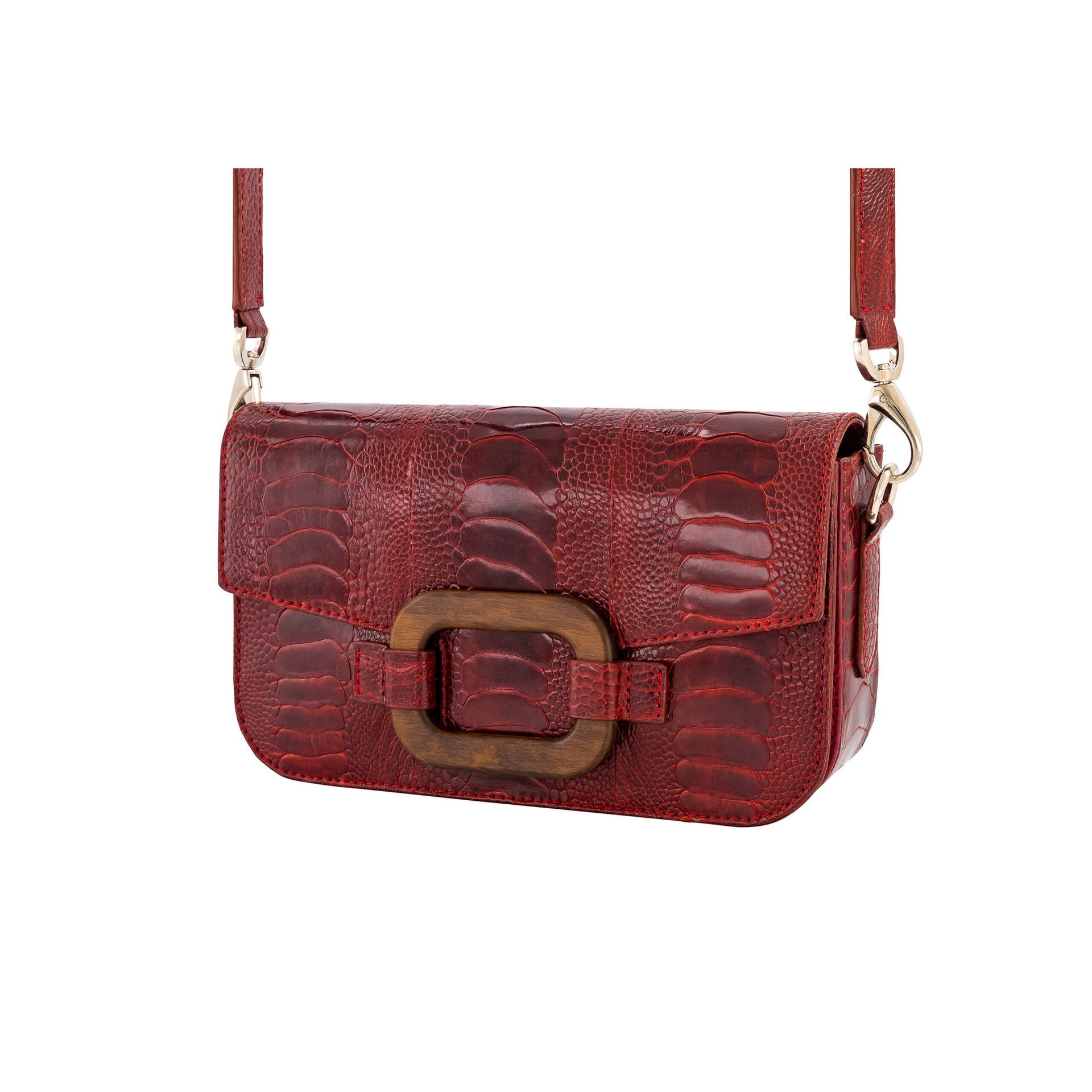 Deya Crossbody in Luggage Ostrich with a wood Ring Detail