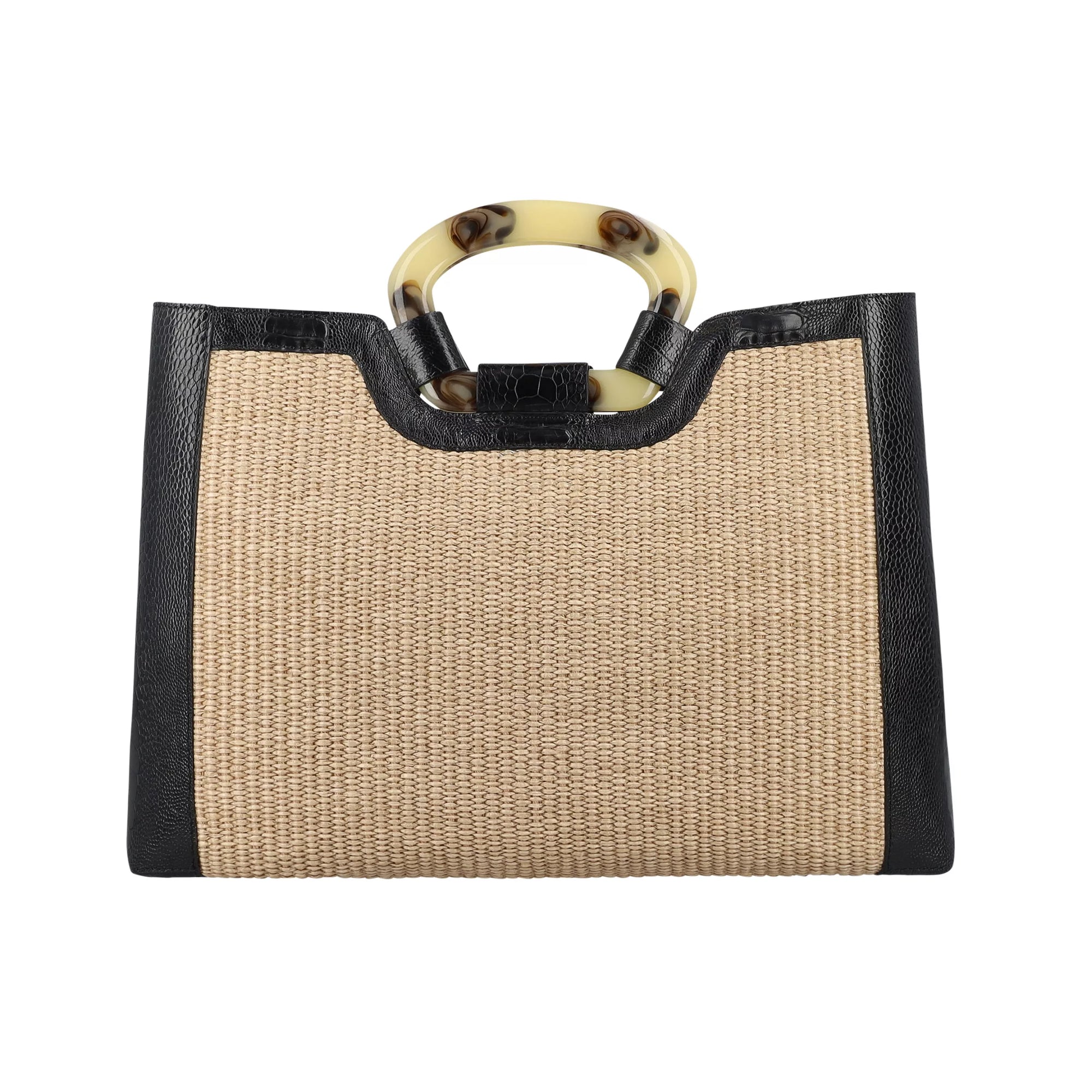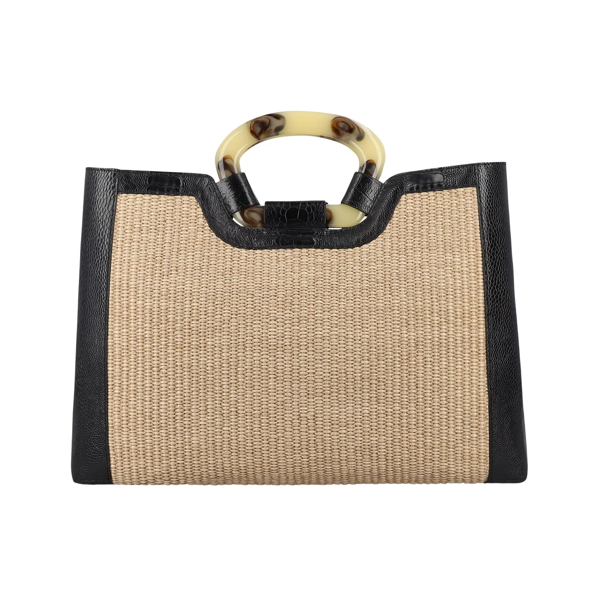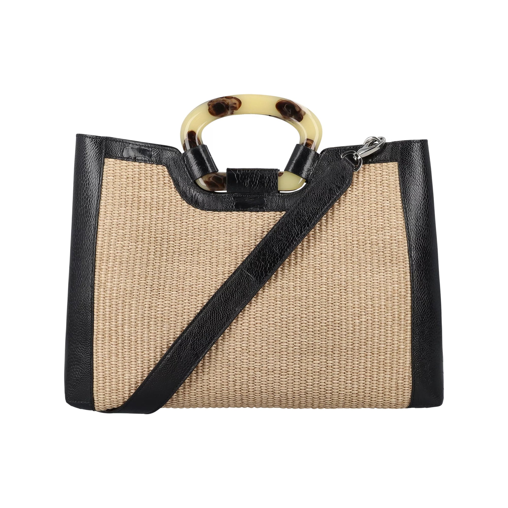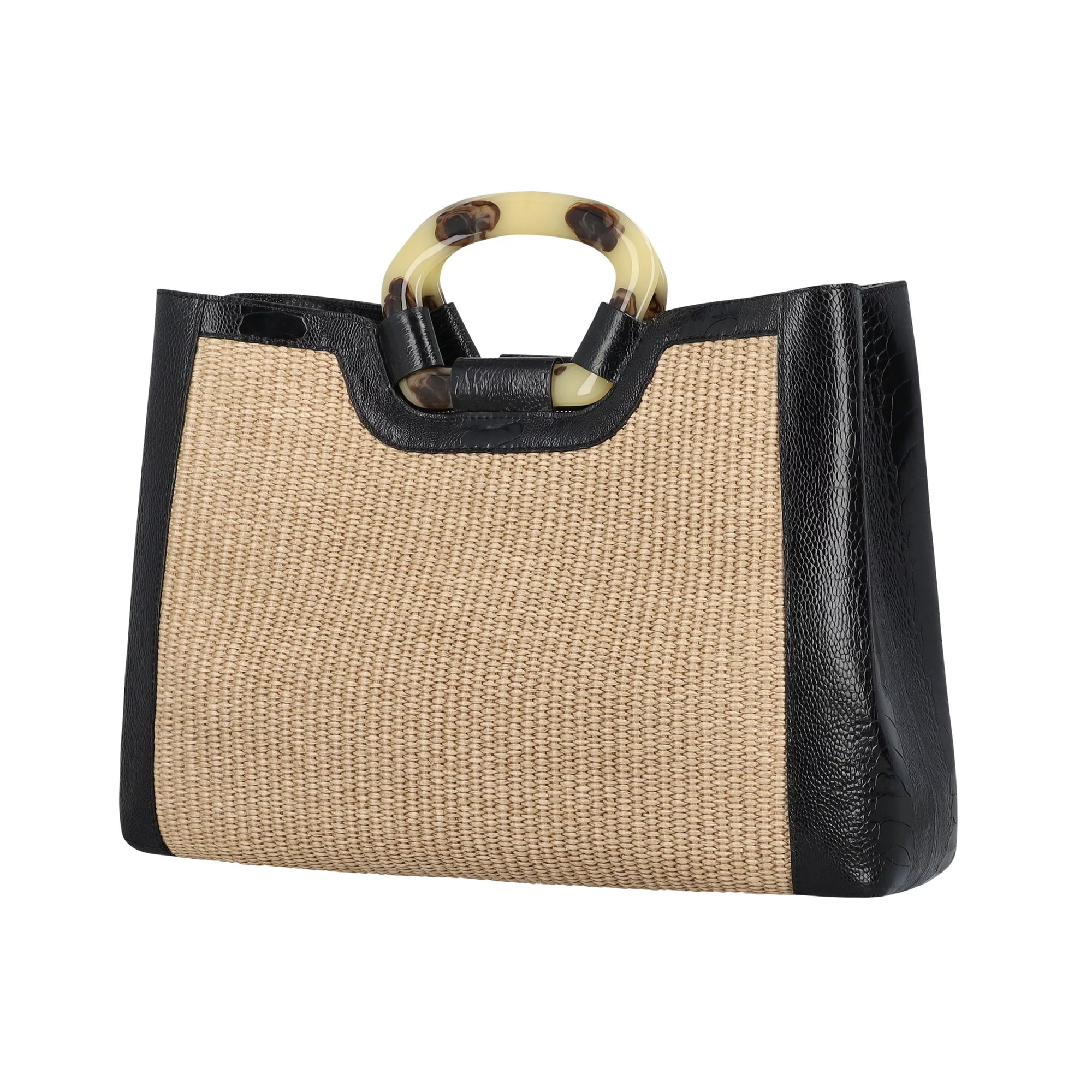 Ashanti in Black Ostrich Leg & Raffia with a Lizard Tab