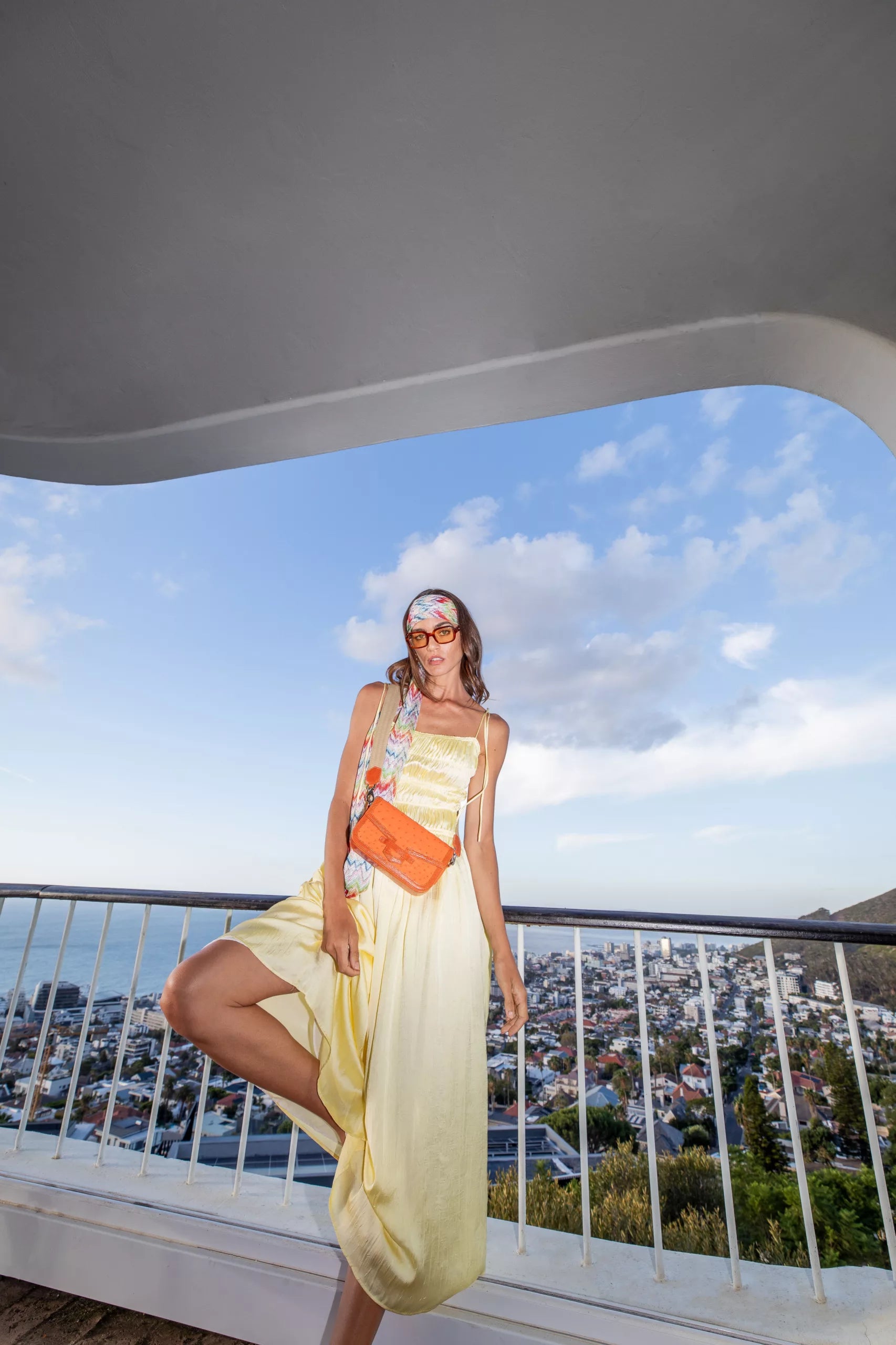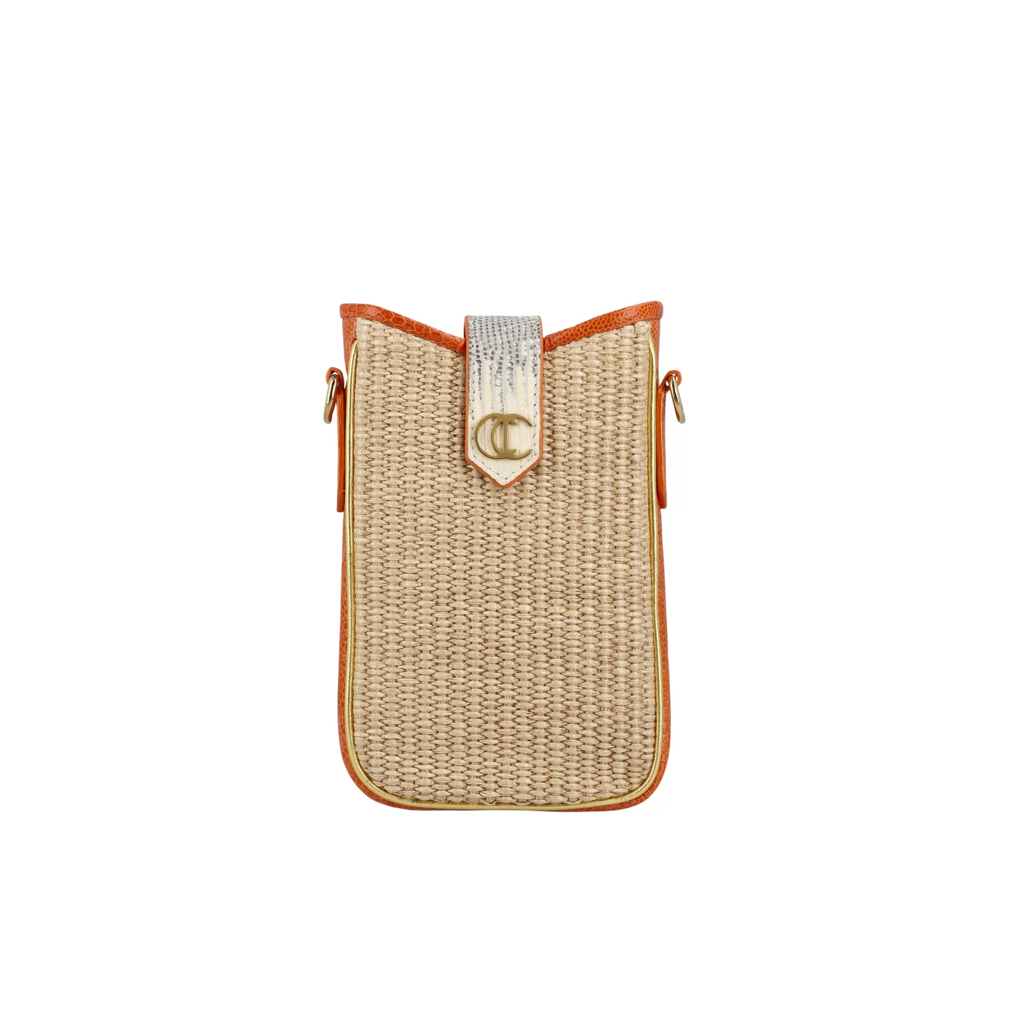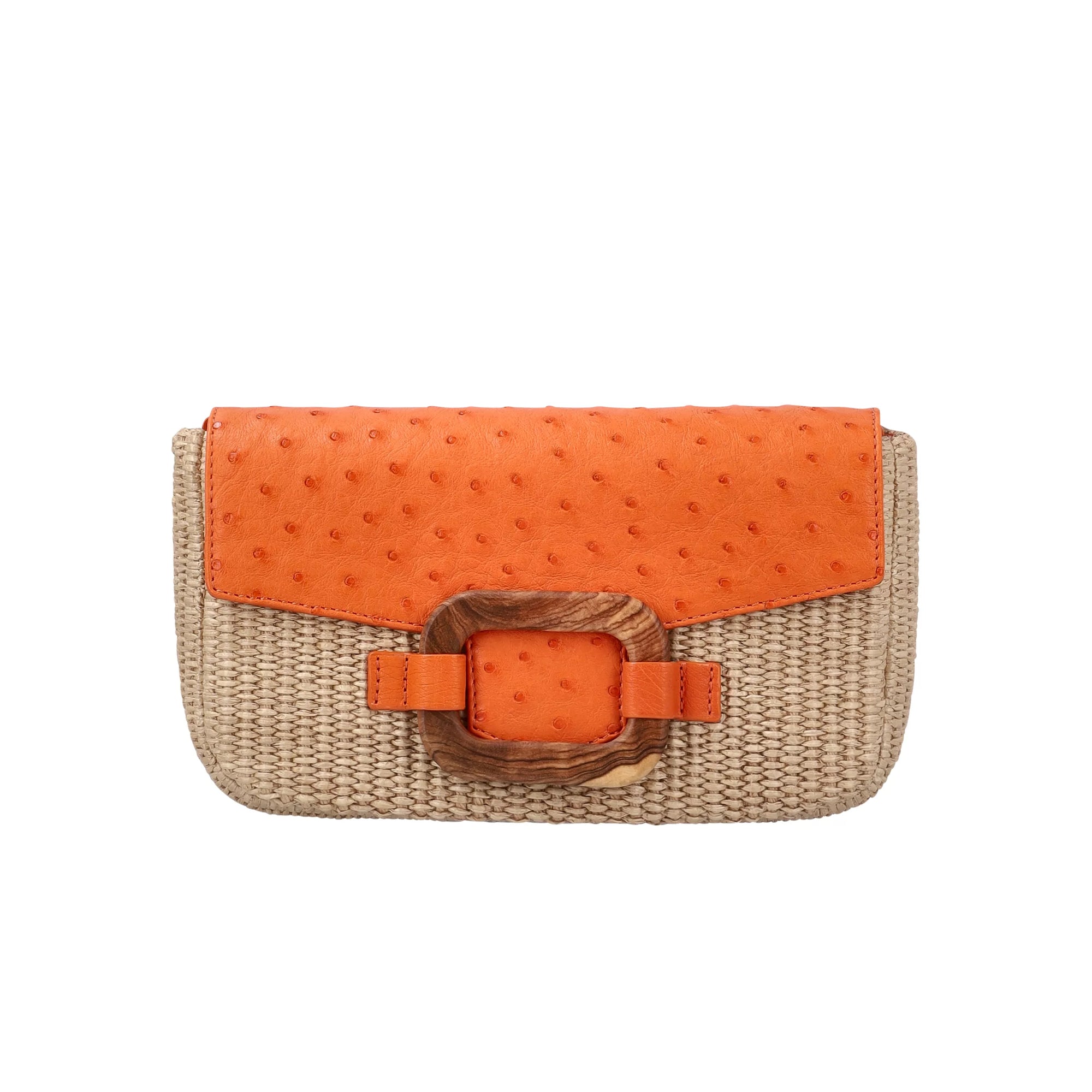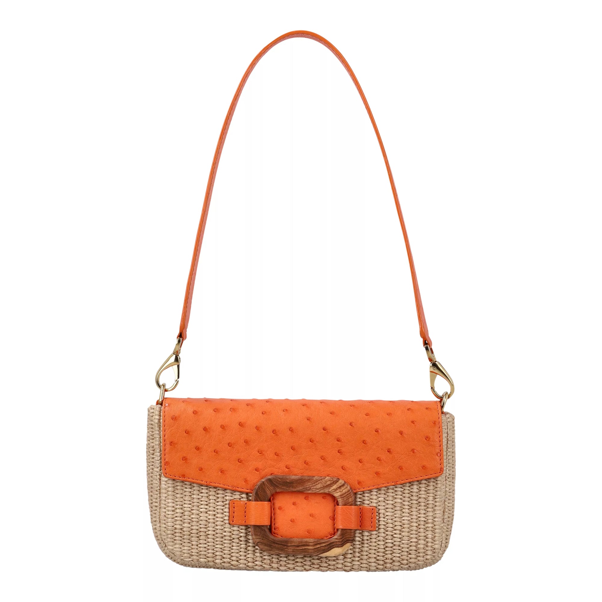 Ashanti in Mango Ostrich Leg & Raffia with a Lizard Tab