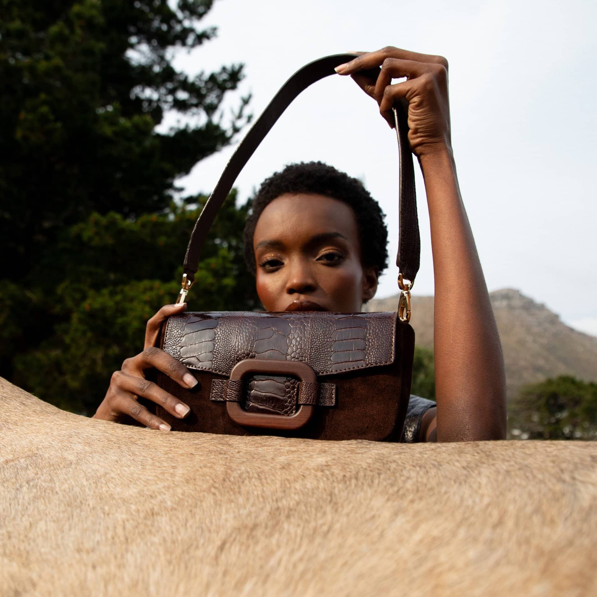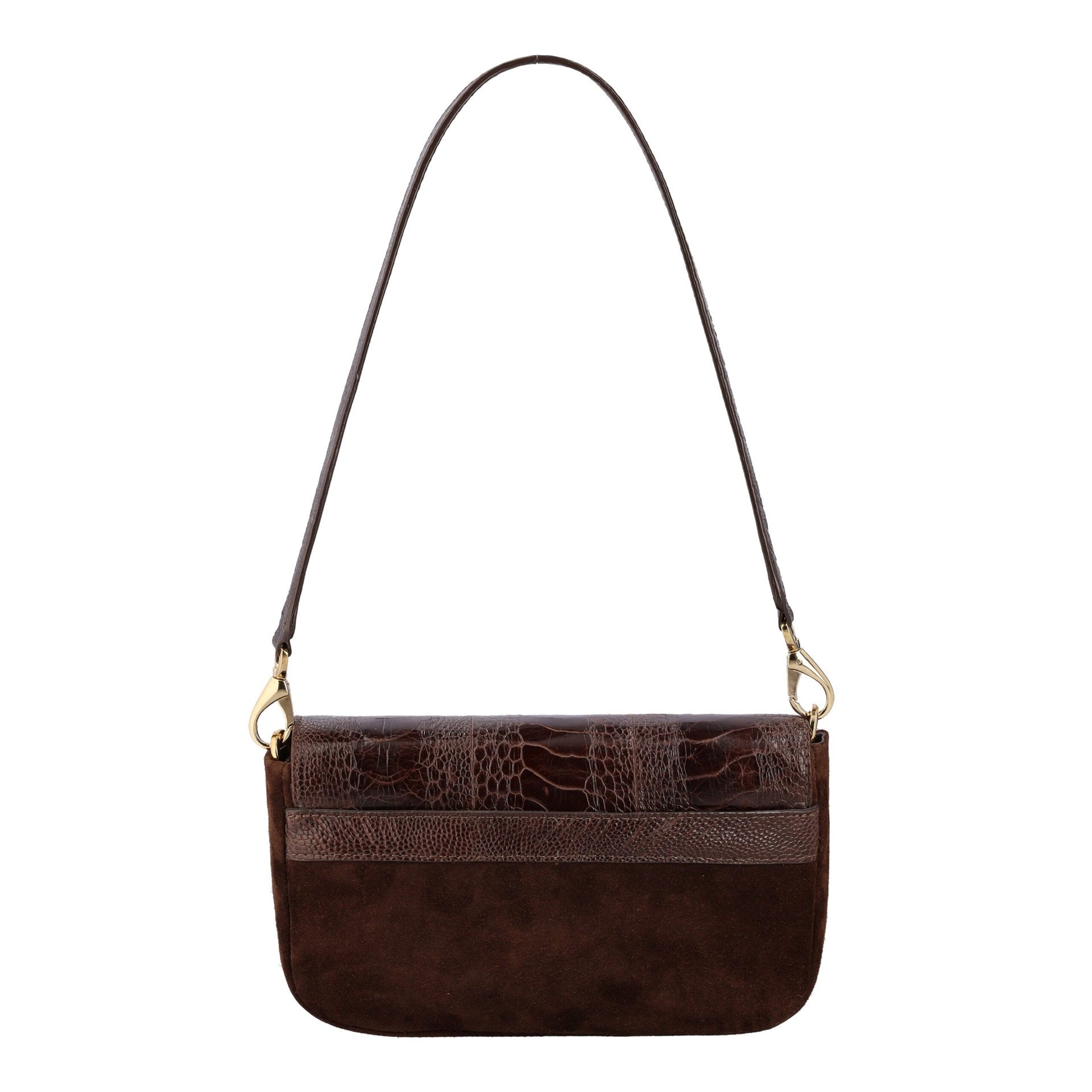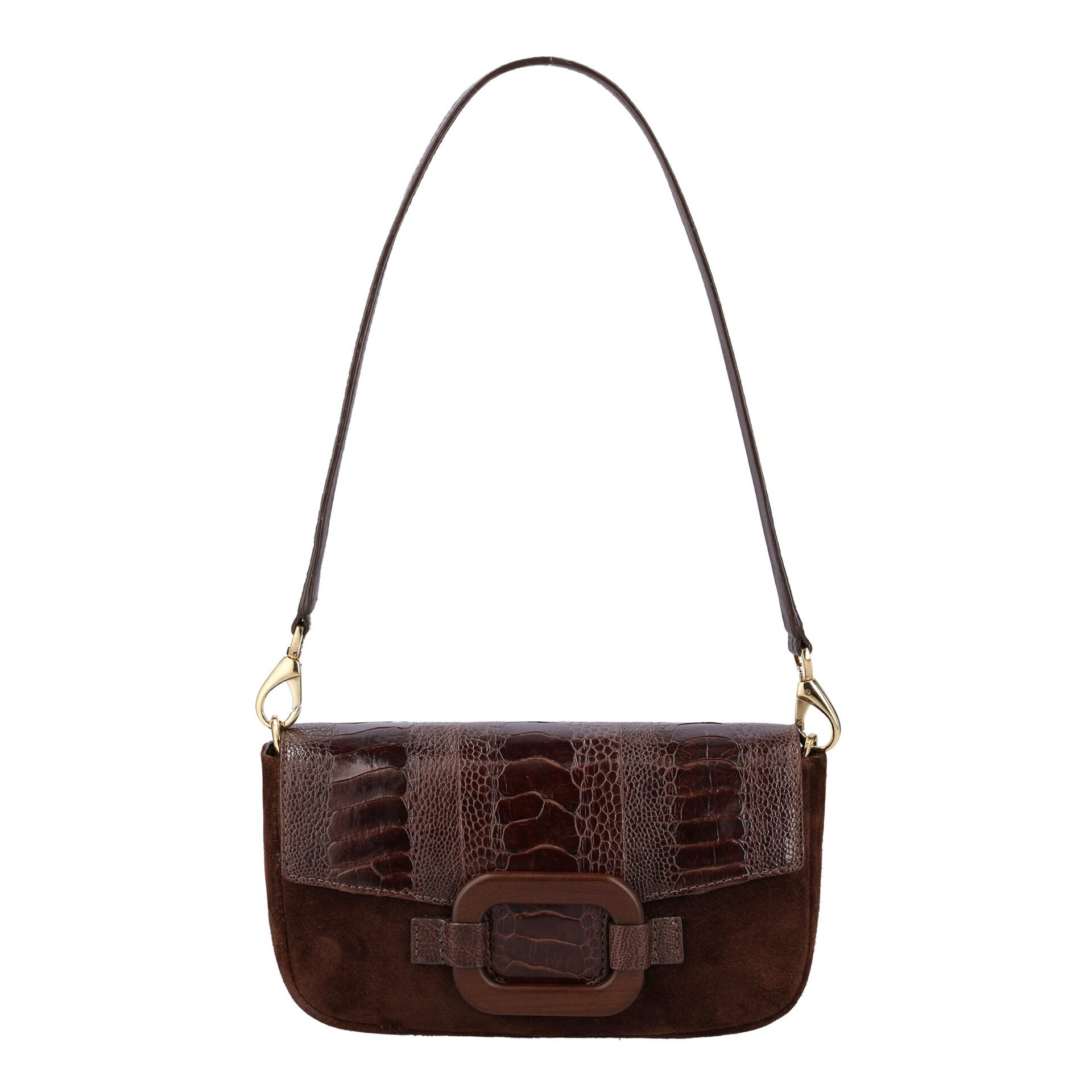 Deya in Chocolate Suede & Nicotine Ostrich Leg