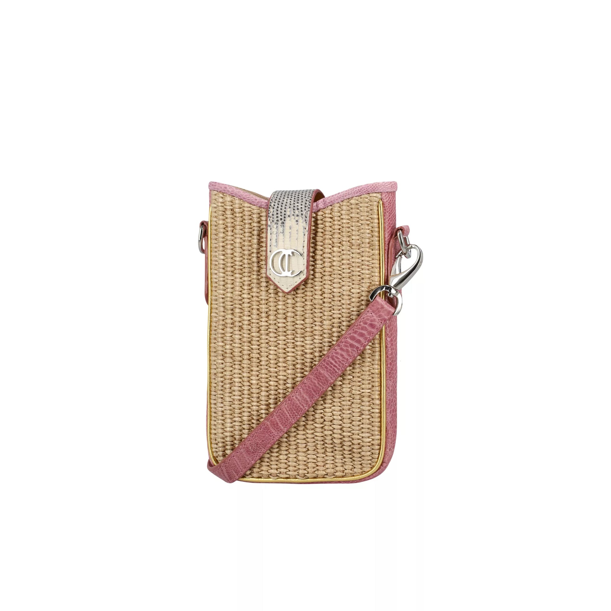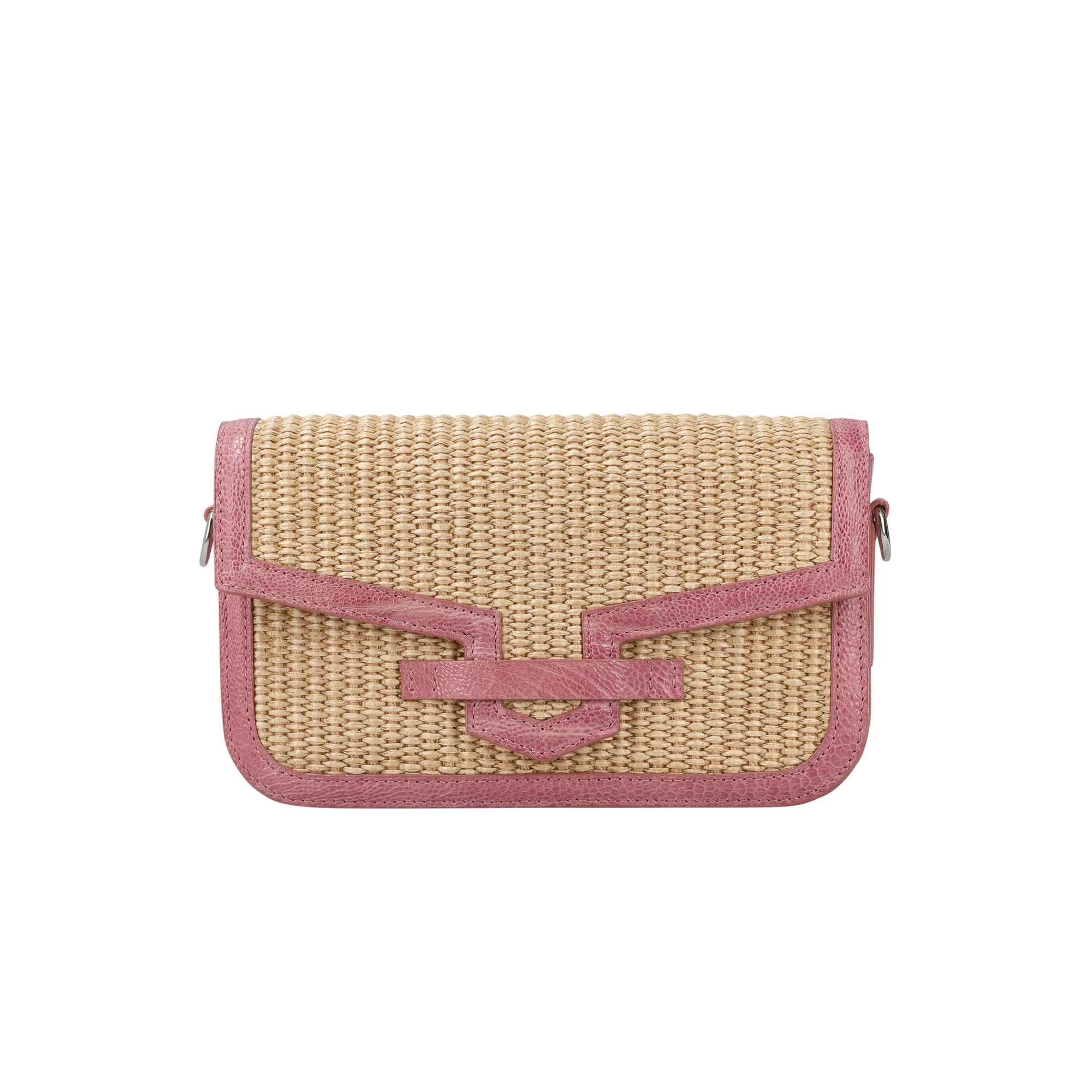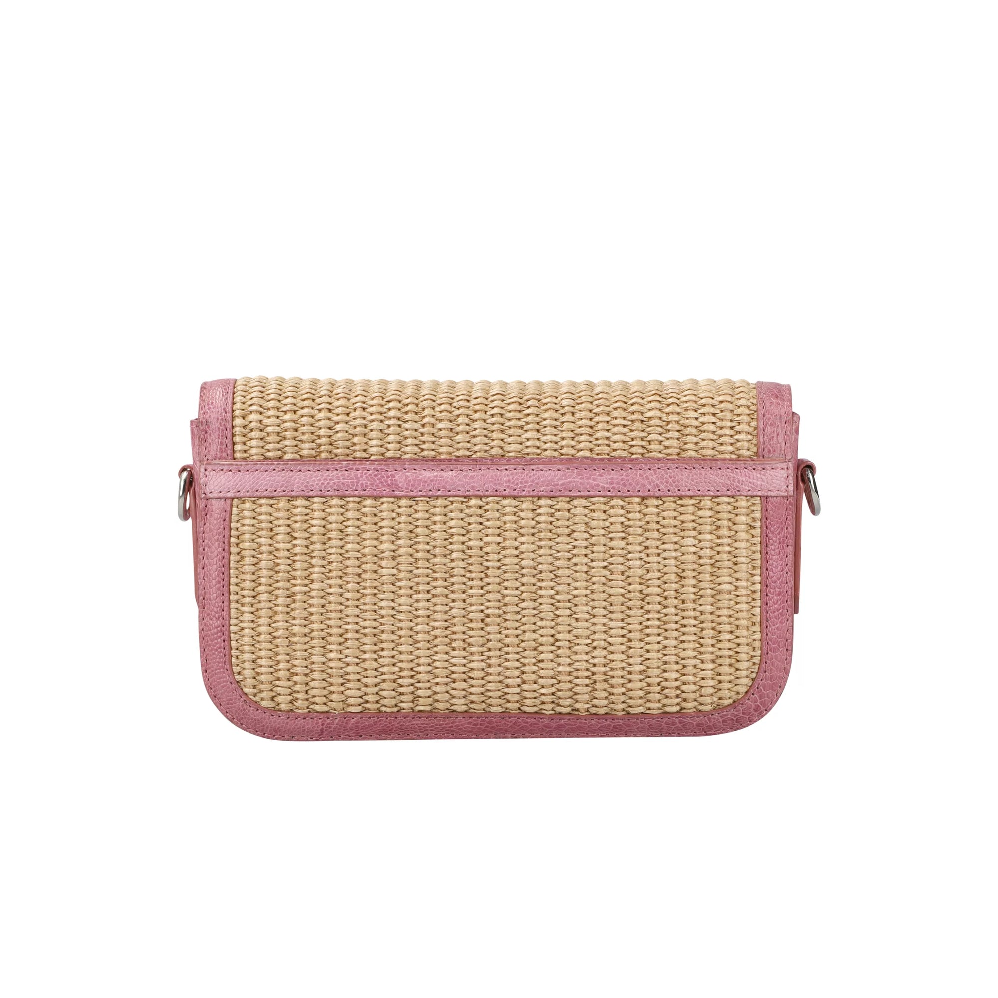 Caia Crossbody in Light Pink Ostrich Leg & Raffia