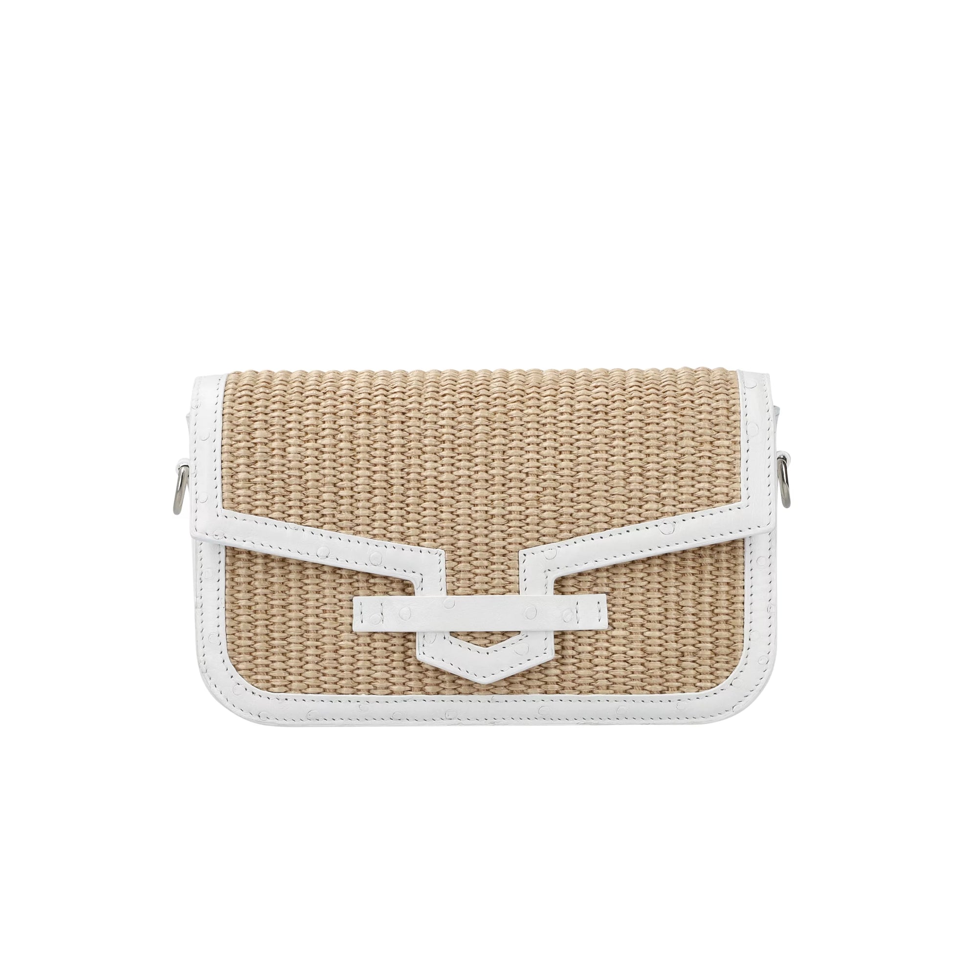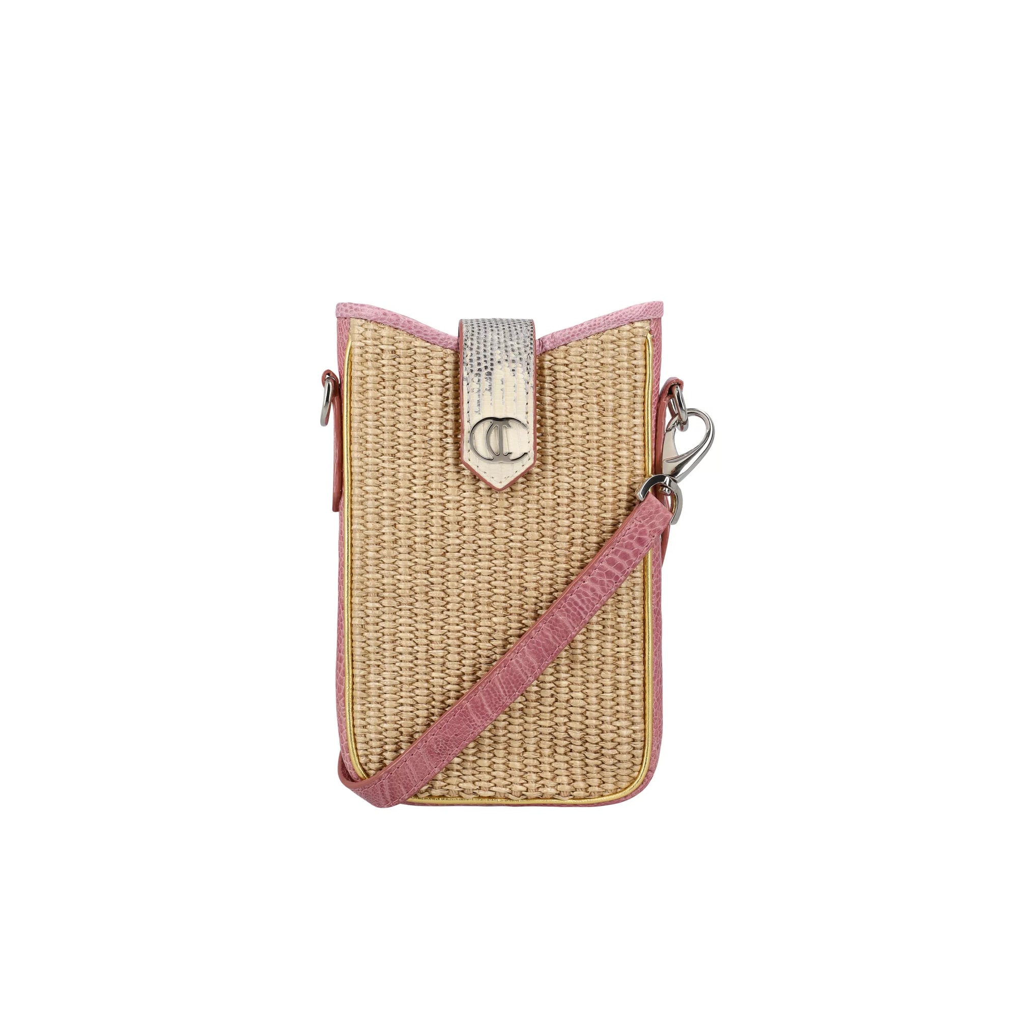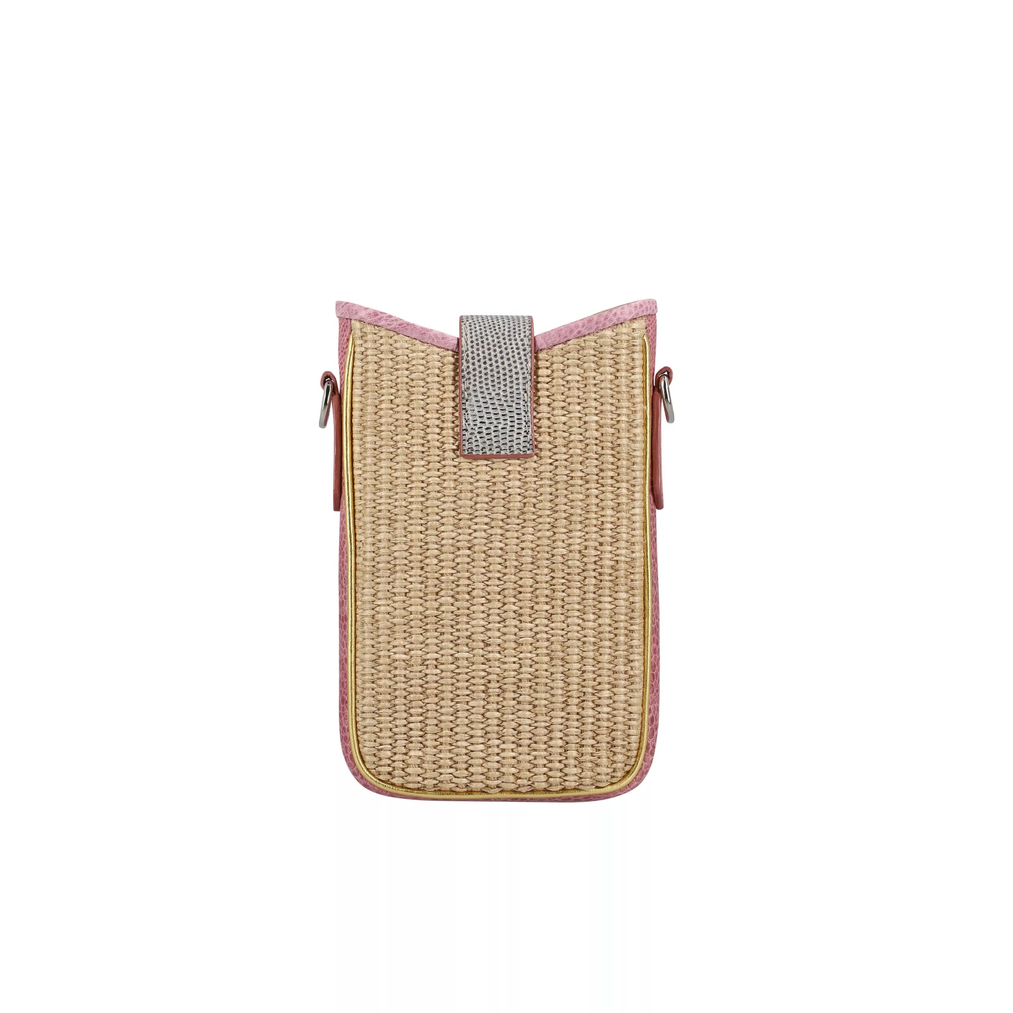 Caia Crossbody in Light Pink Ostrich Leg & Raffia
