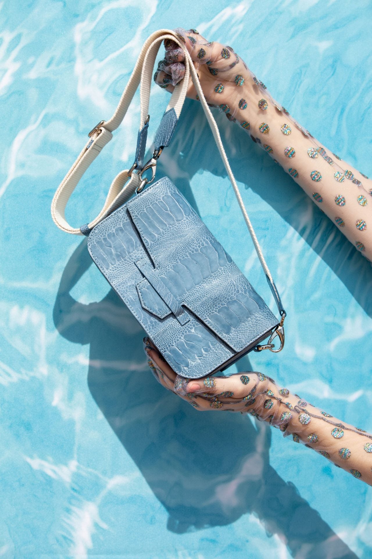 Deya in Blue Jean Raffia & Astrale Ostrich