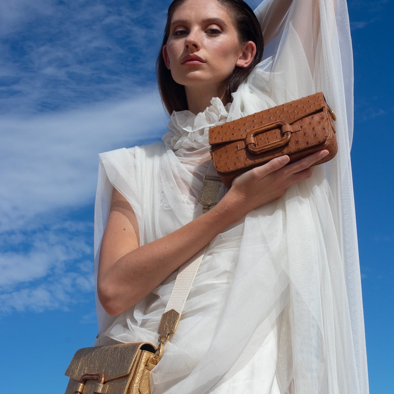 Caia Crossbody in Clemaris Ostrich & Ostrich Leg