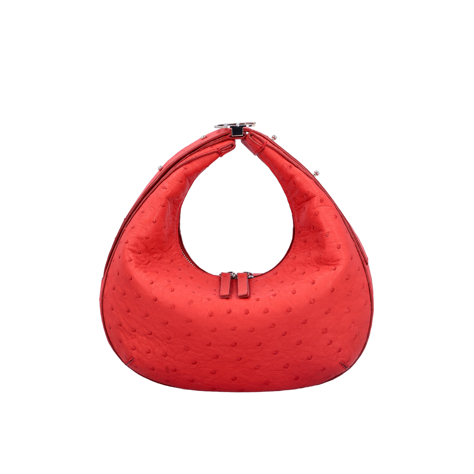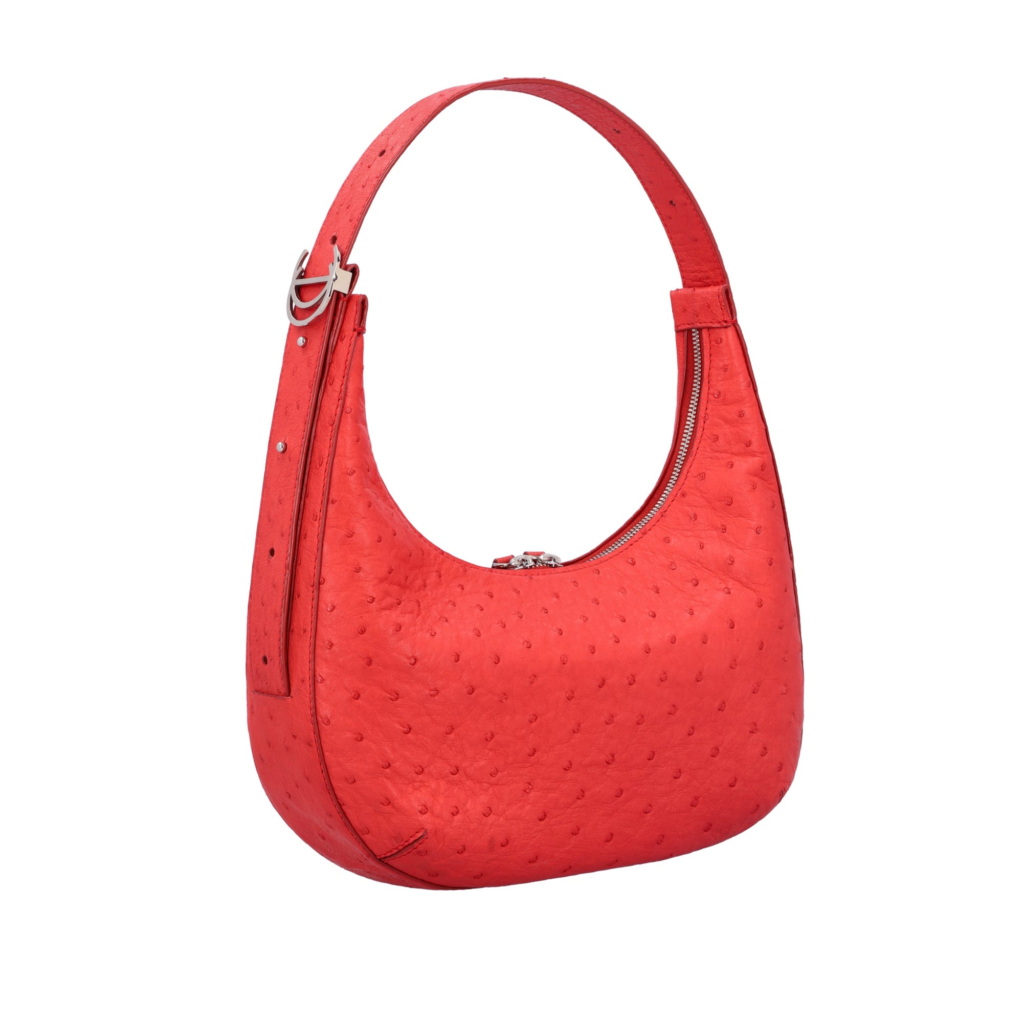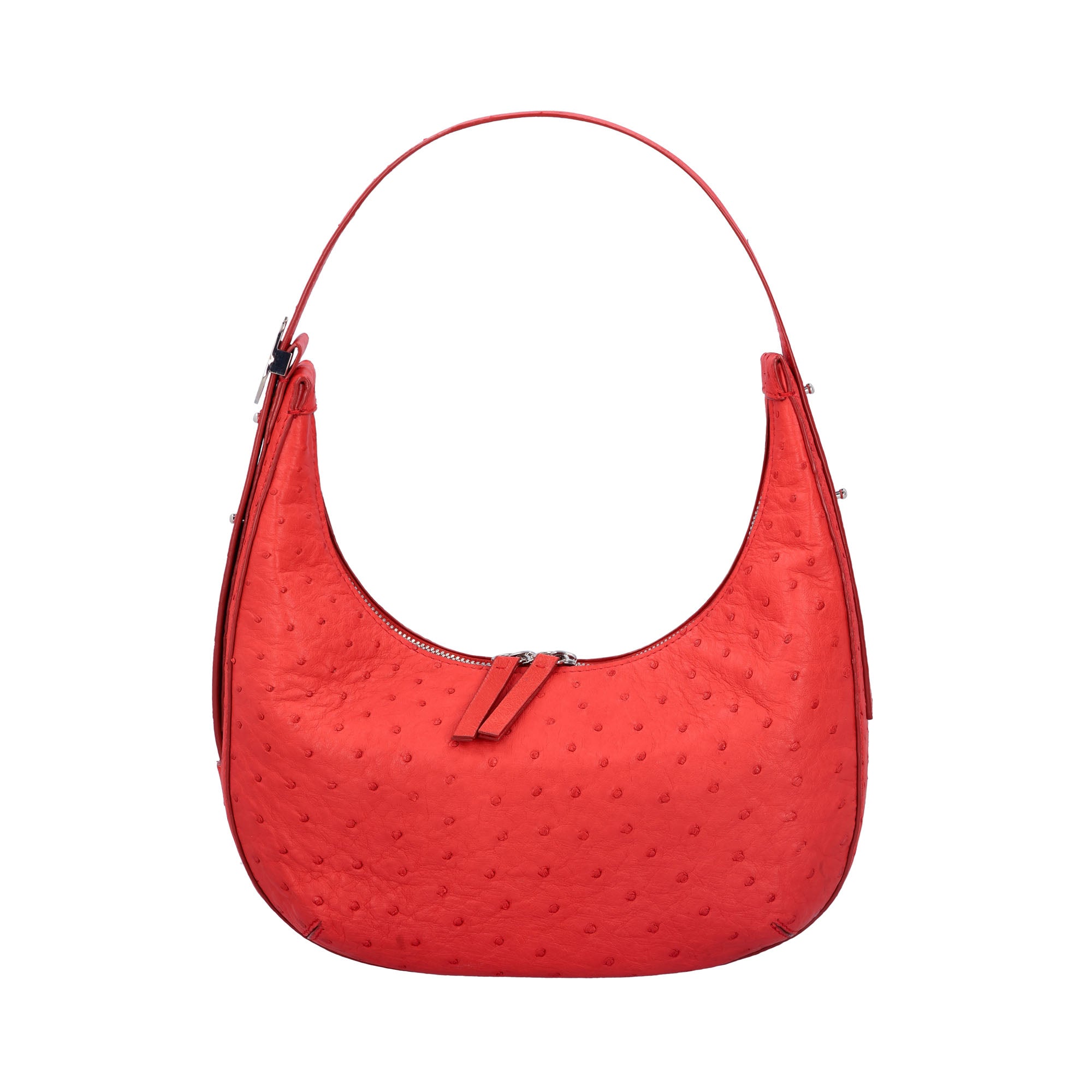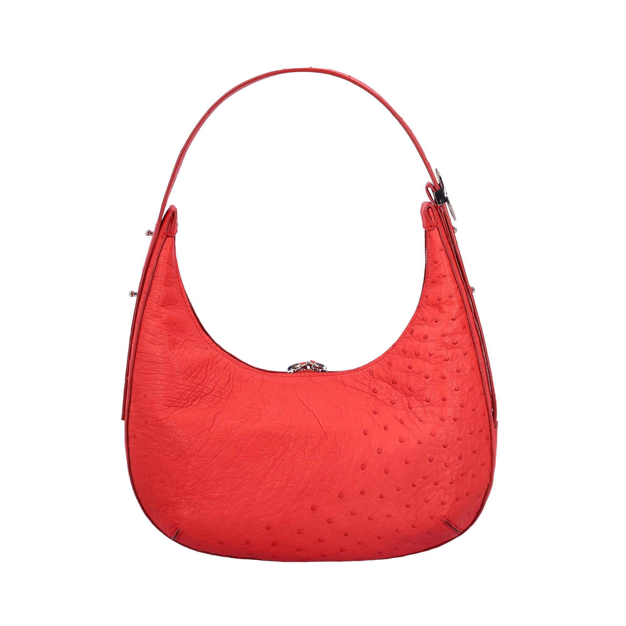 Medium Kai in Scarlet Red Ostrich & Natural Raffia