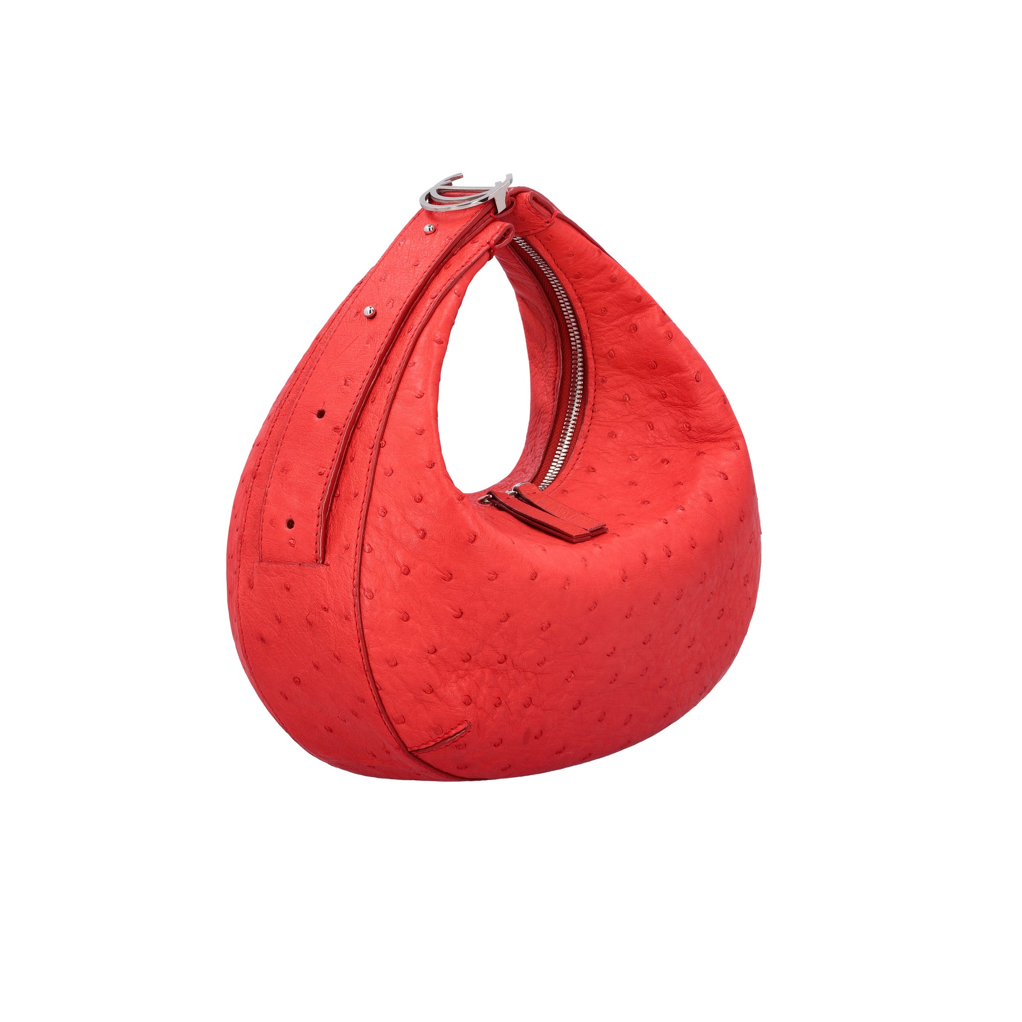 Mini Nova in Natural Raffia & Scarlet Red Ostrich