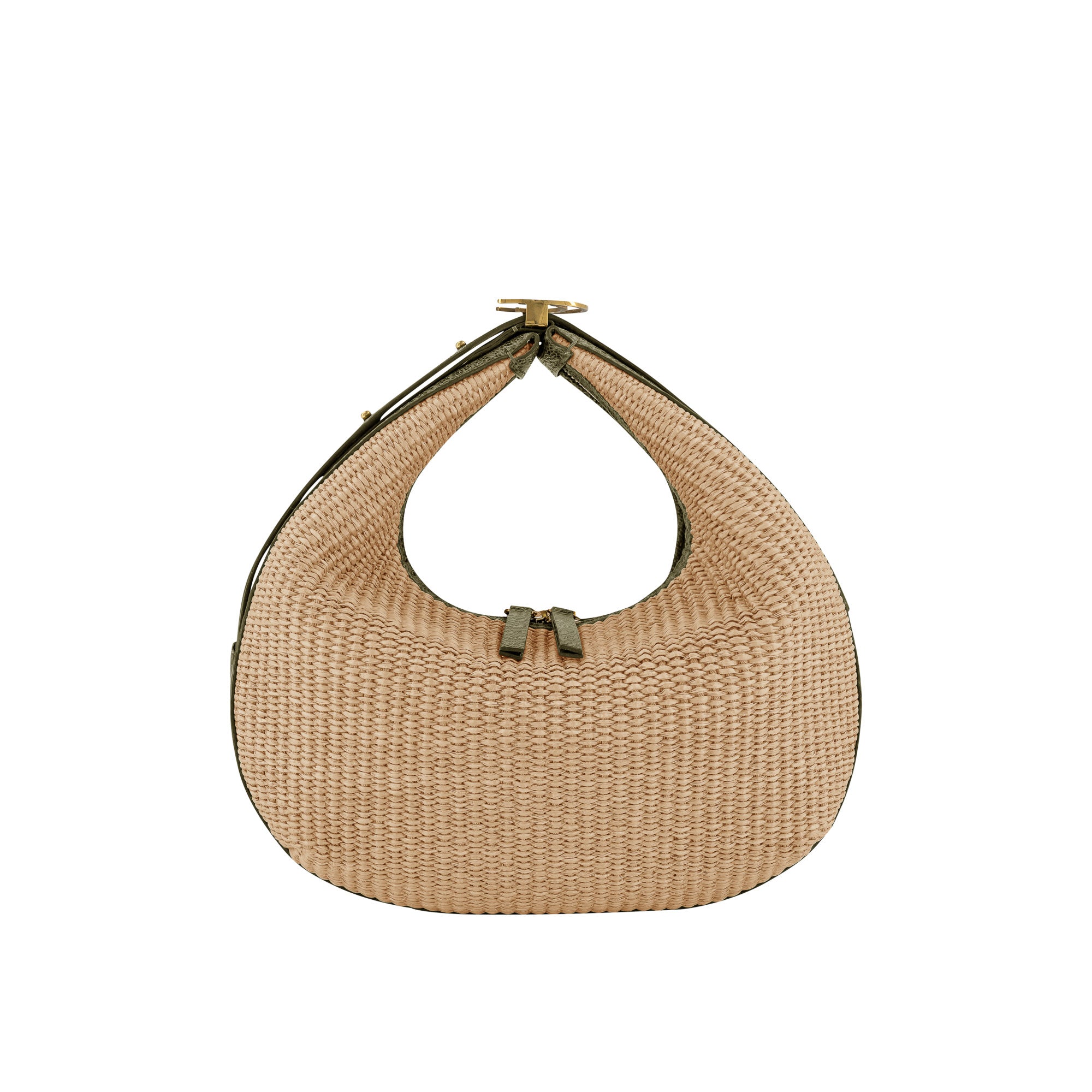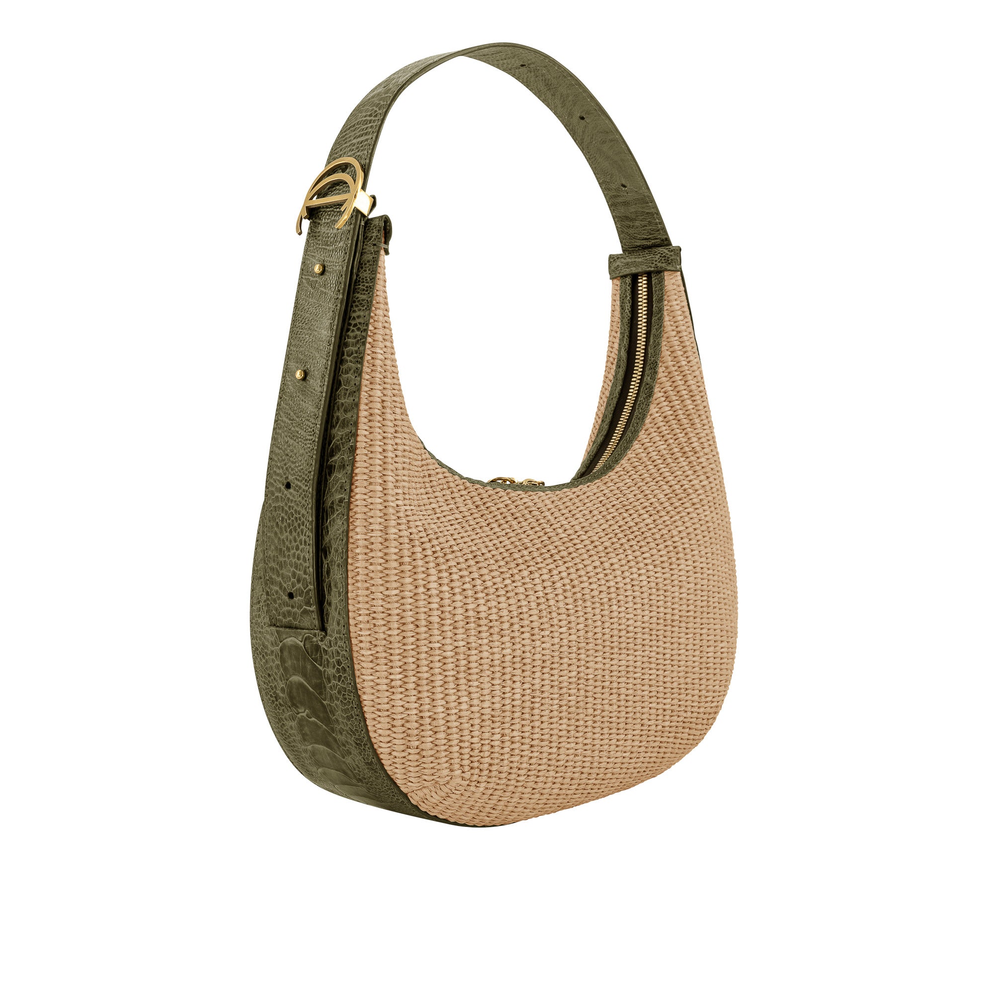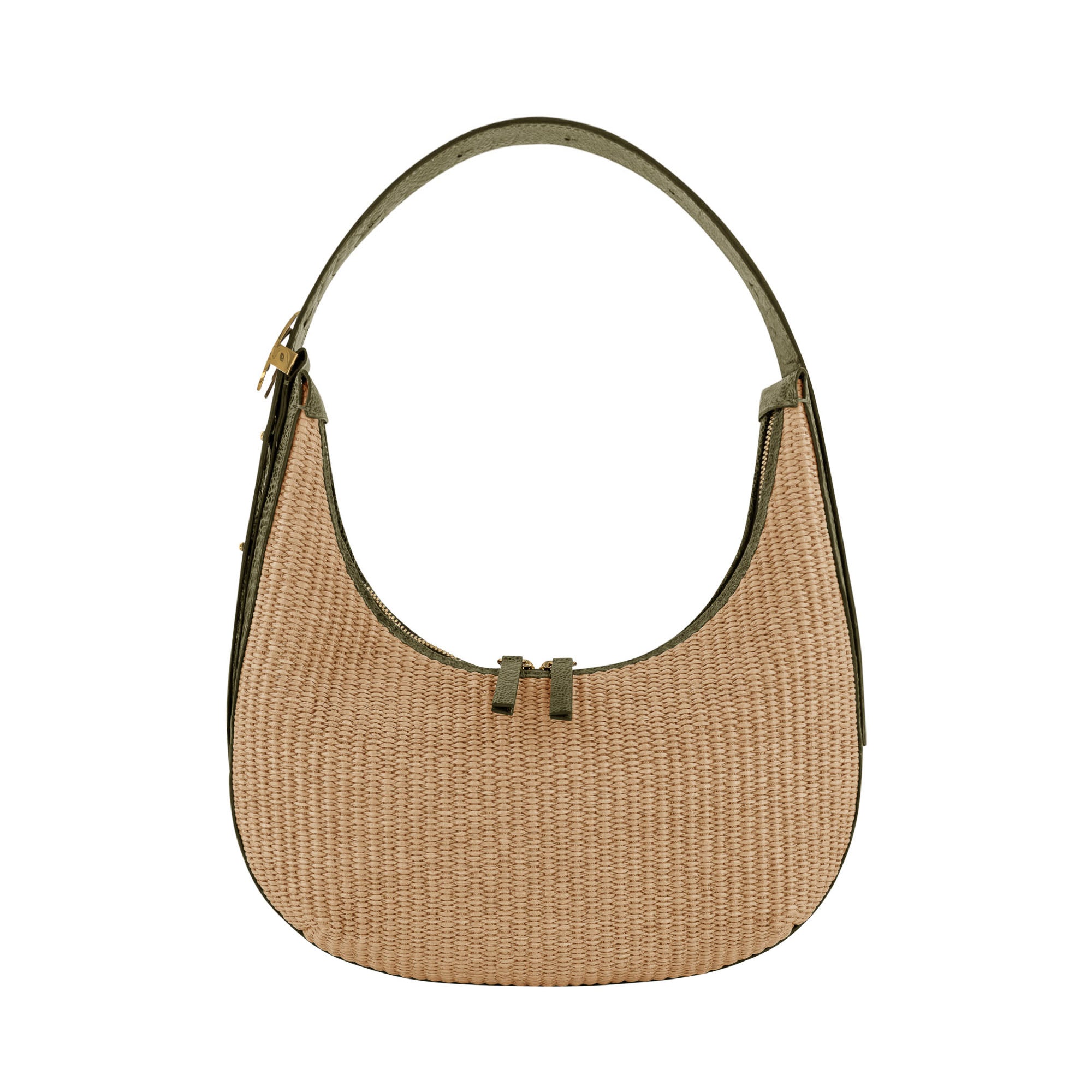 Deya in Natural Raffia & Forest Green Ostrich Leg