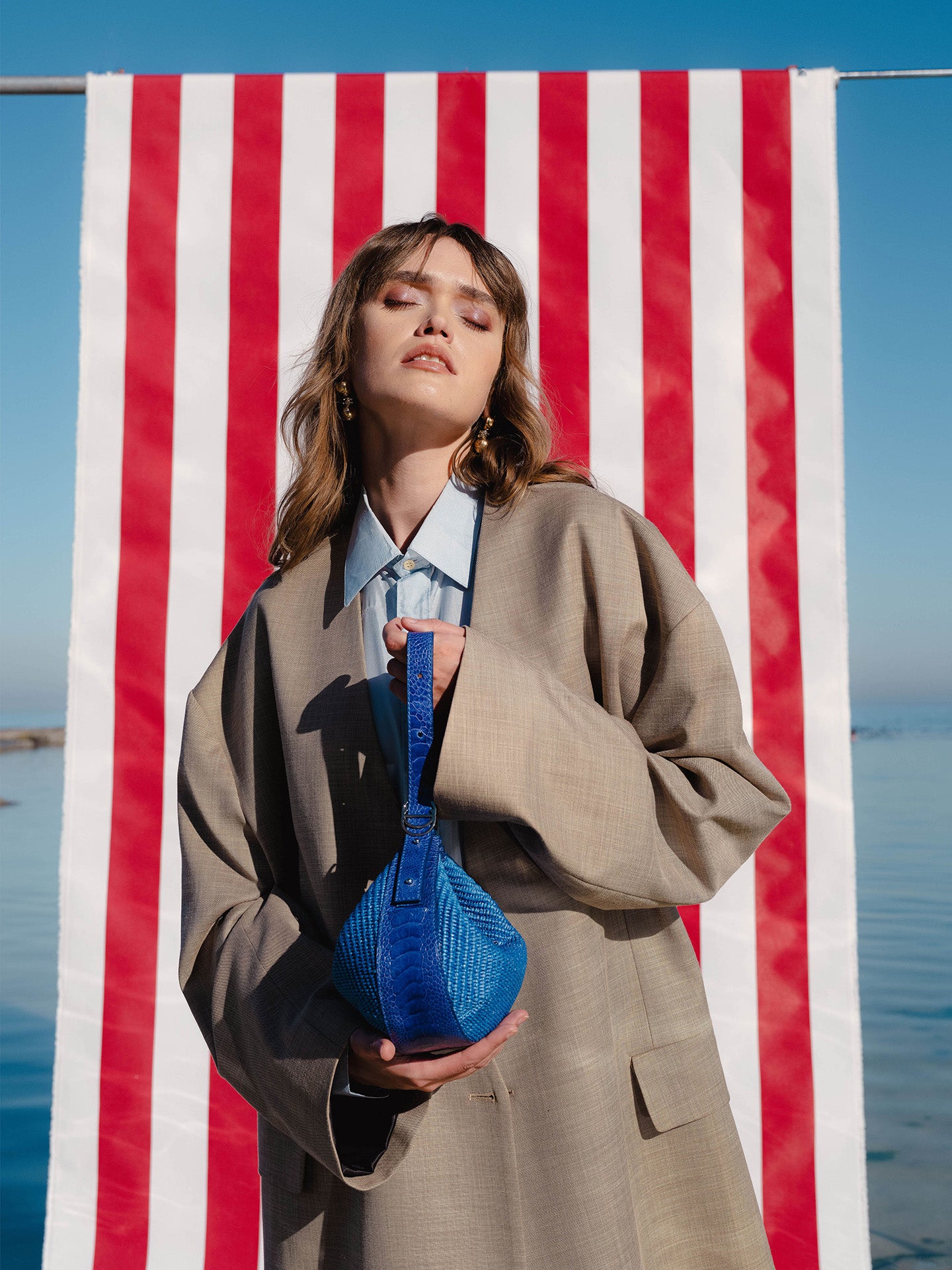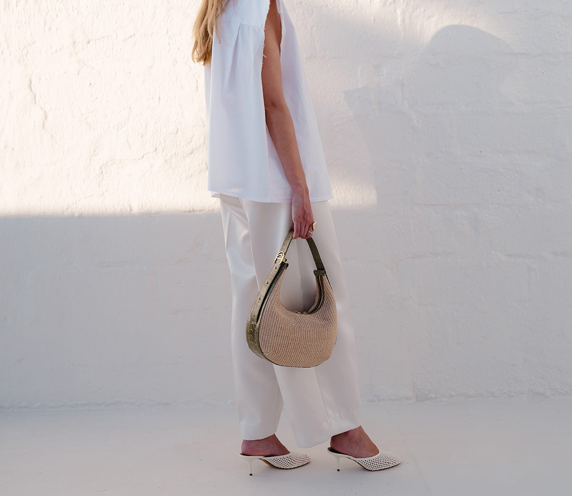 Deya in Blue Jean Raffia & Astrale Ostrich