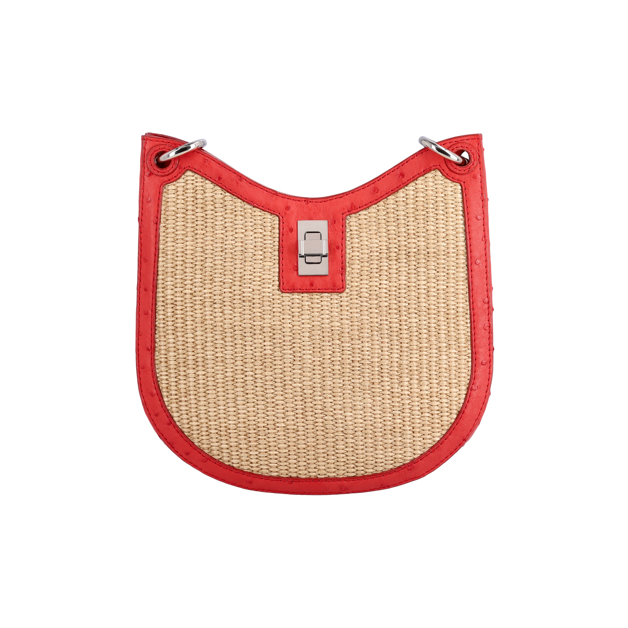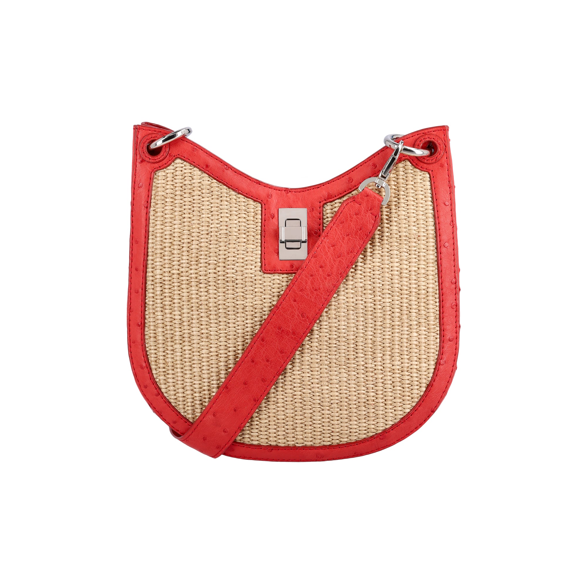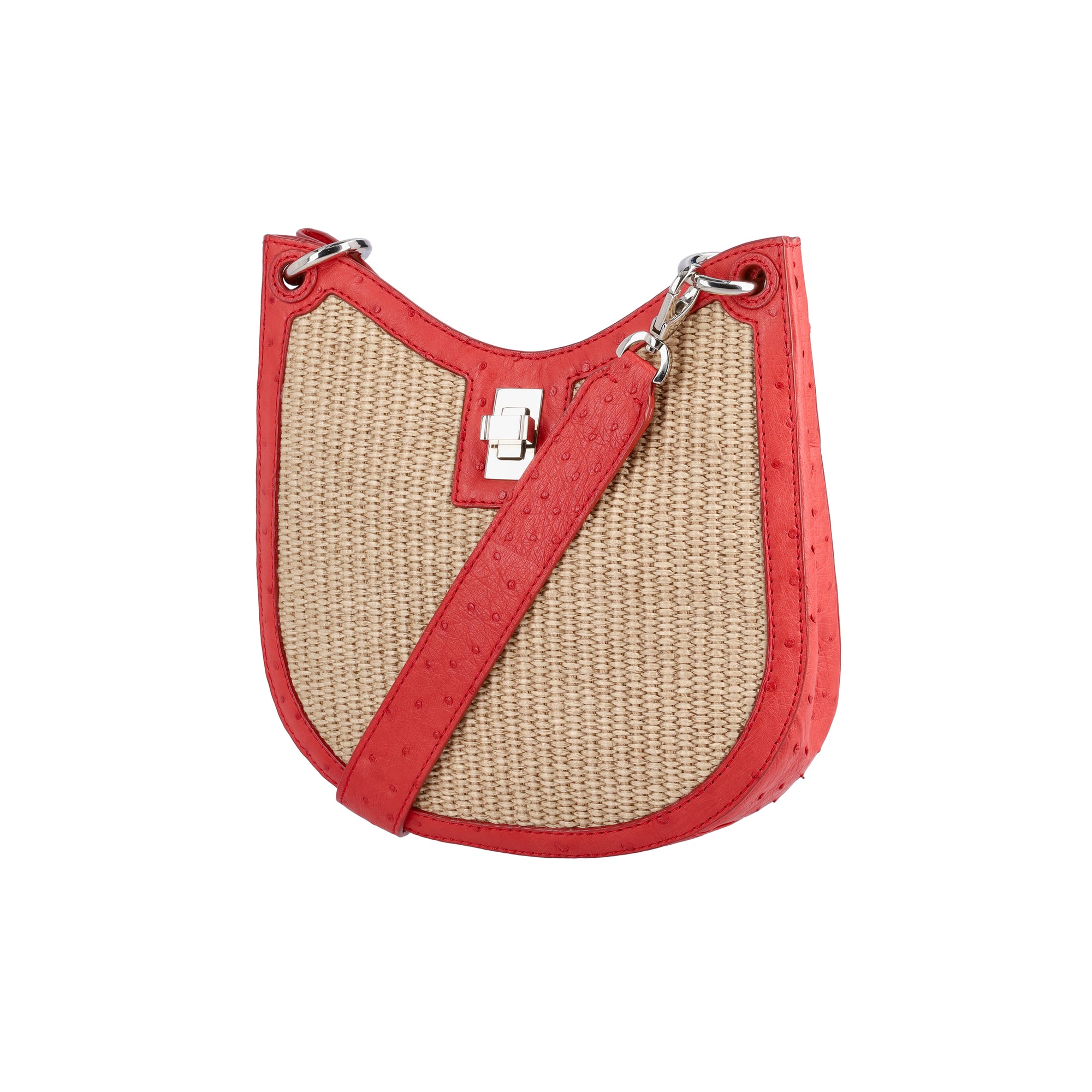 Mini Nova in Natural Raffia & Scarlet Red Ostrich