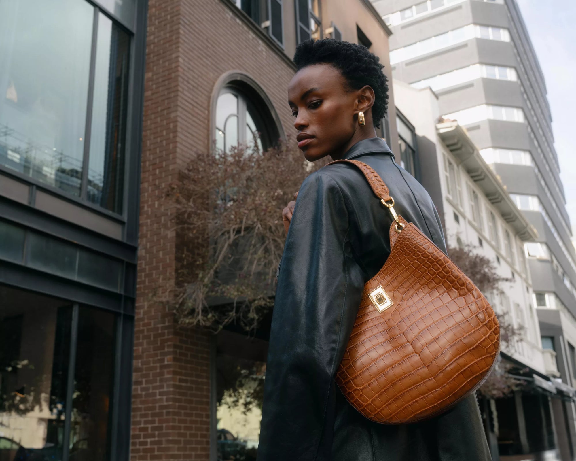Deya in Chocolate Suede & Nicotine Ostrich Leg