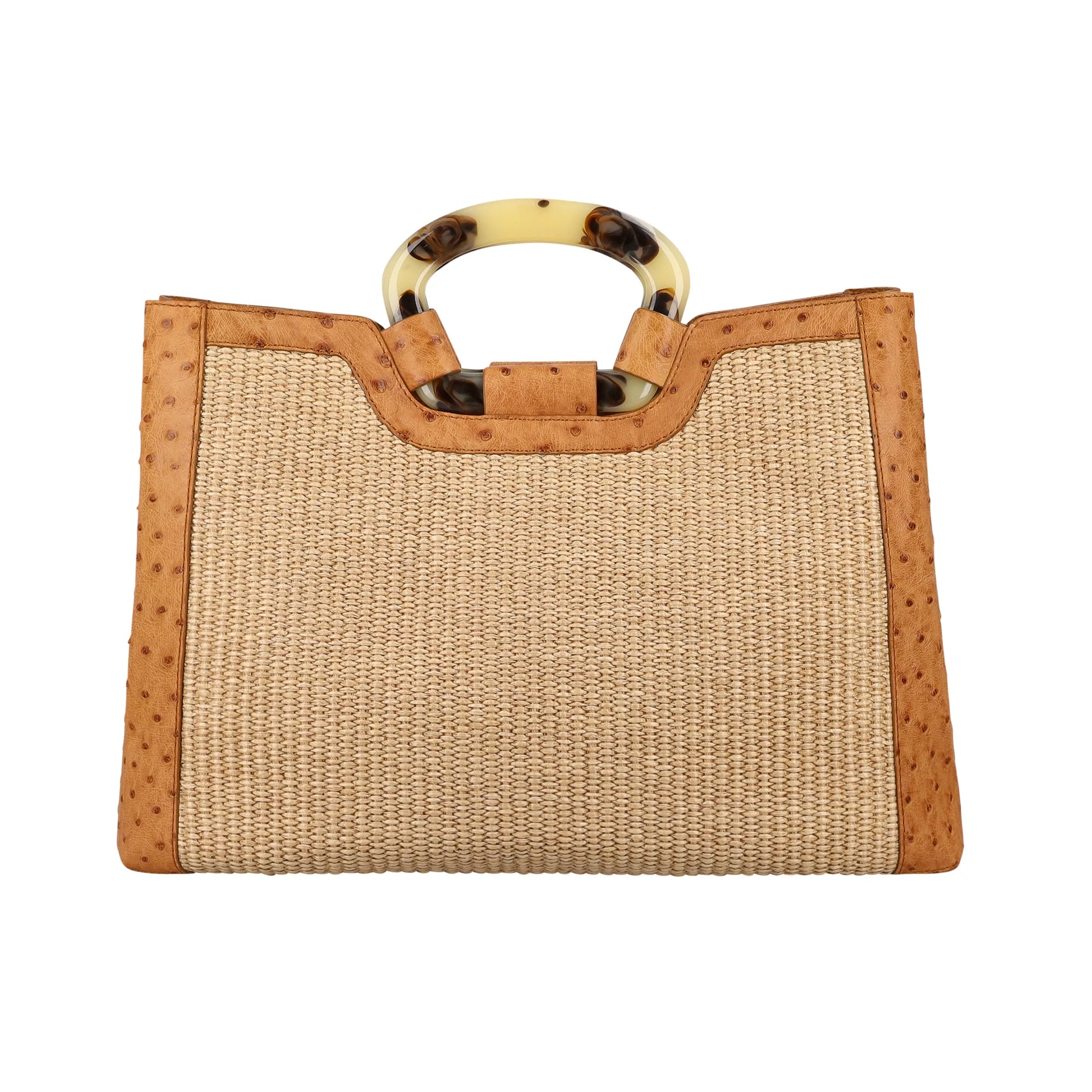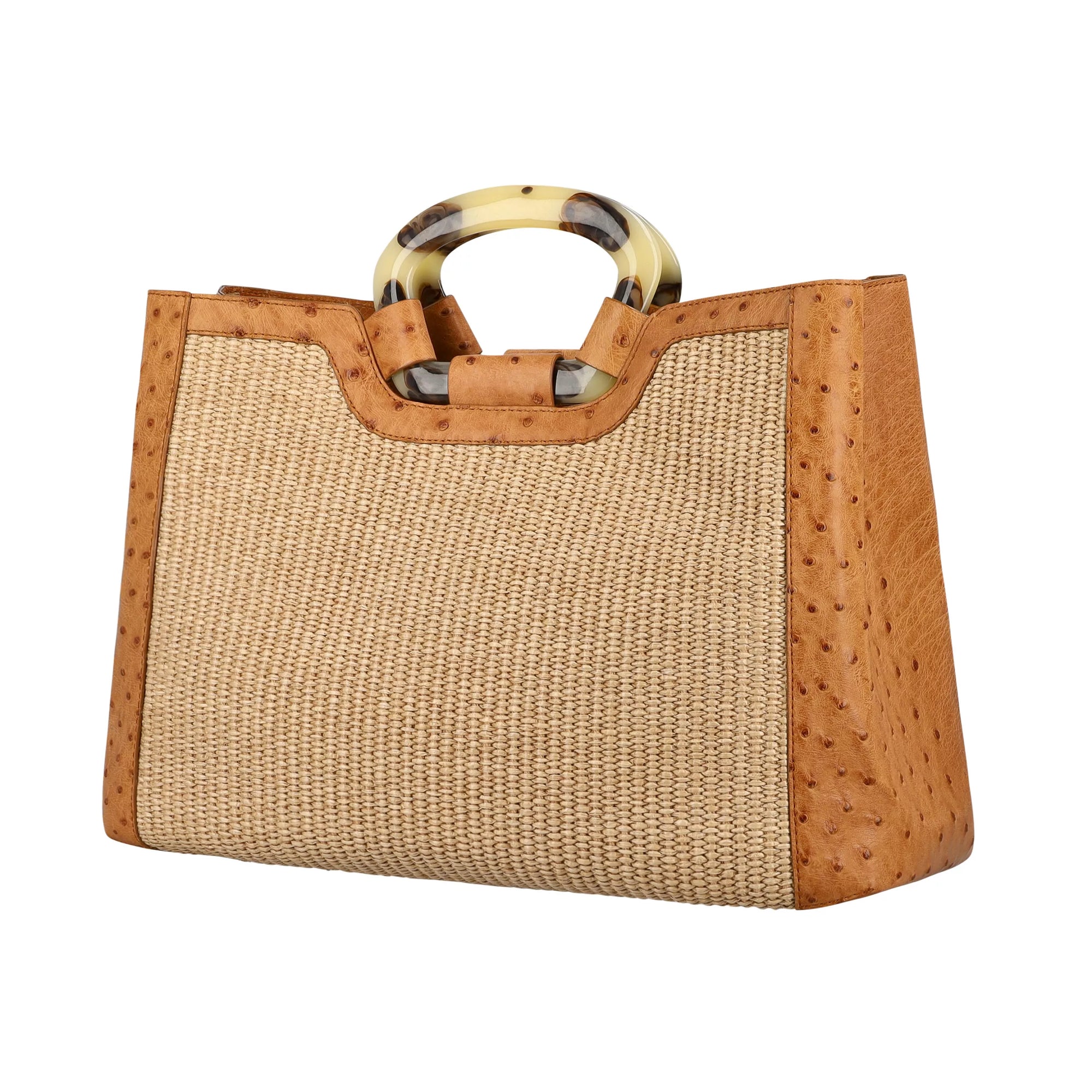 Medium Kai in Astrale Ostrich & French Blue Jean Raffia