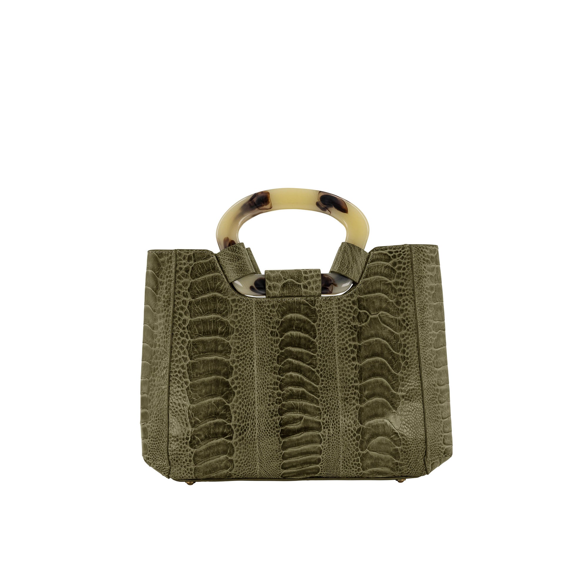 Small Davy Tote in Thyme Suede & Olive Ostrich Leg
