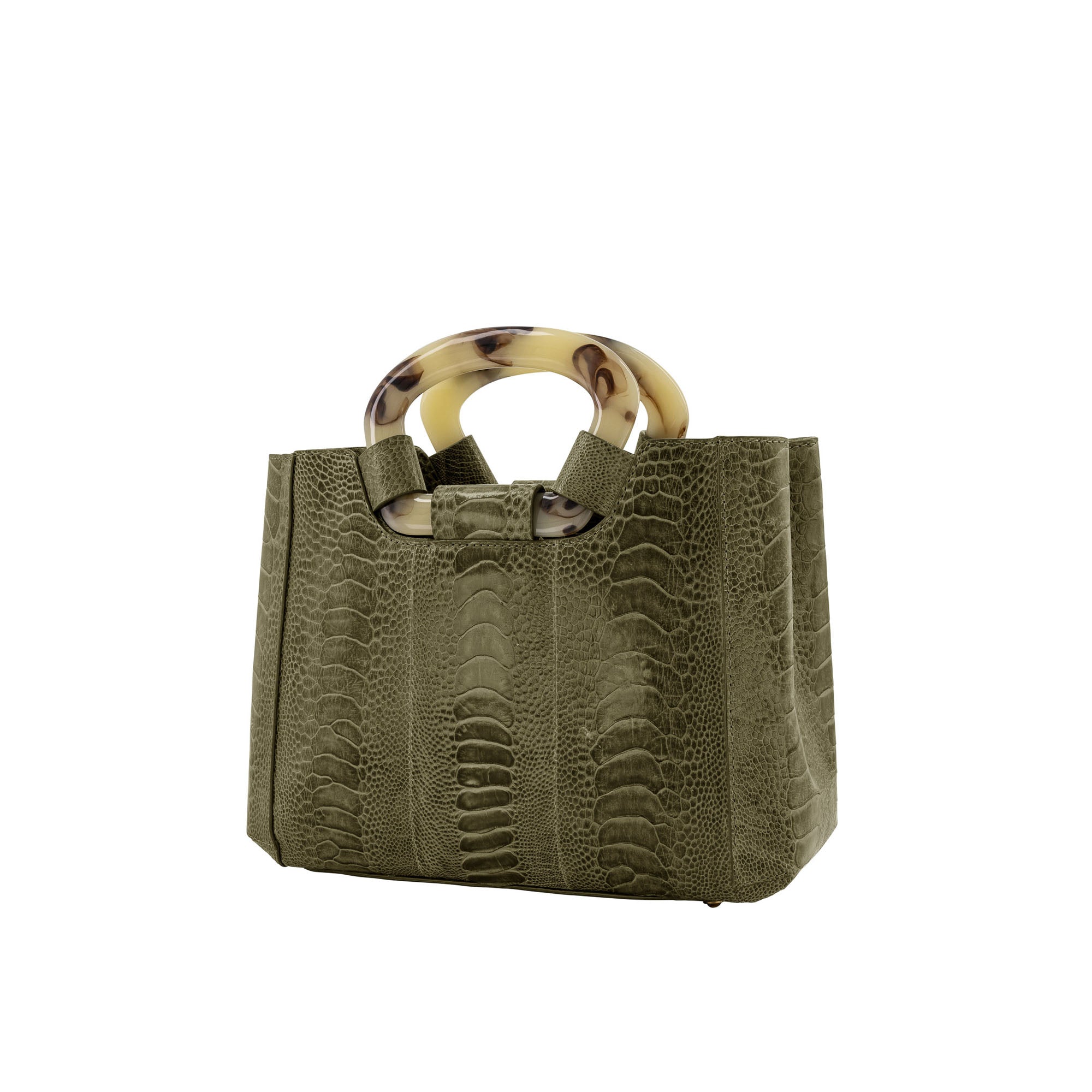 Davy Tote in Thyme Suede & Olive Ostrich Leg