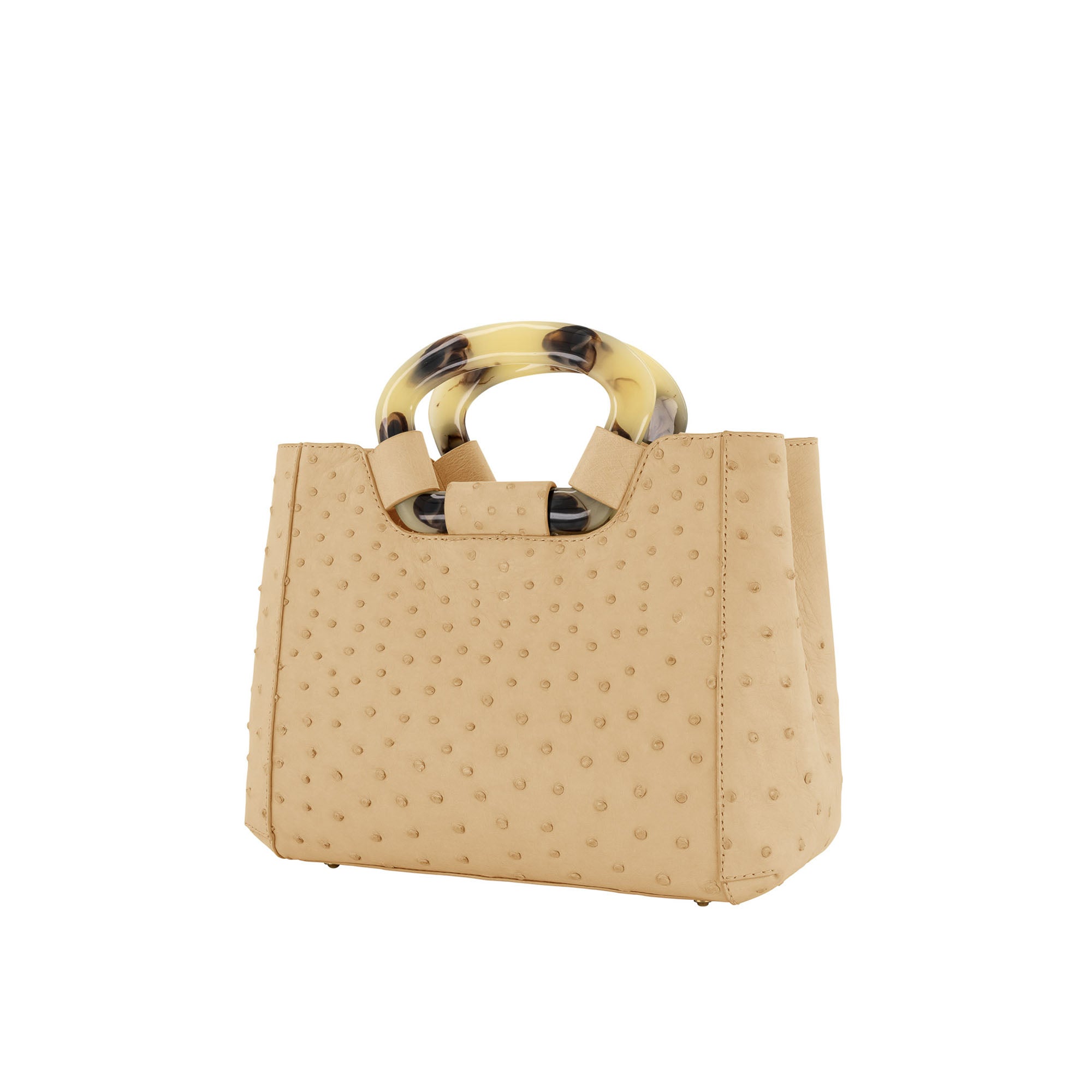 Small Davy Tote in Antelope Suede & Cognac Ostrich Leg
