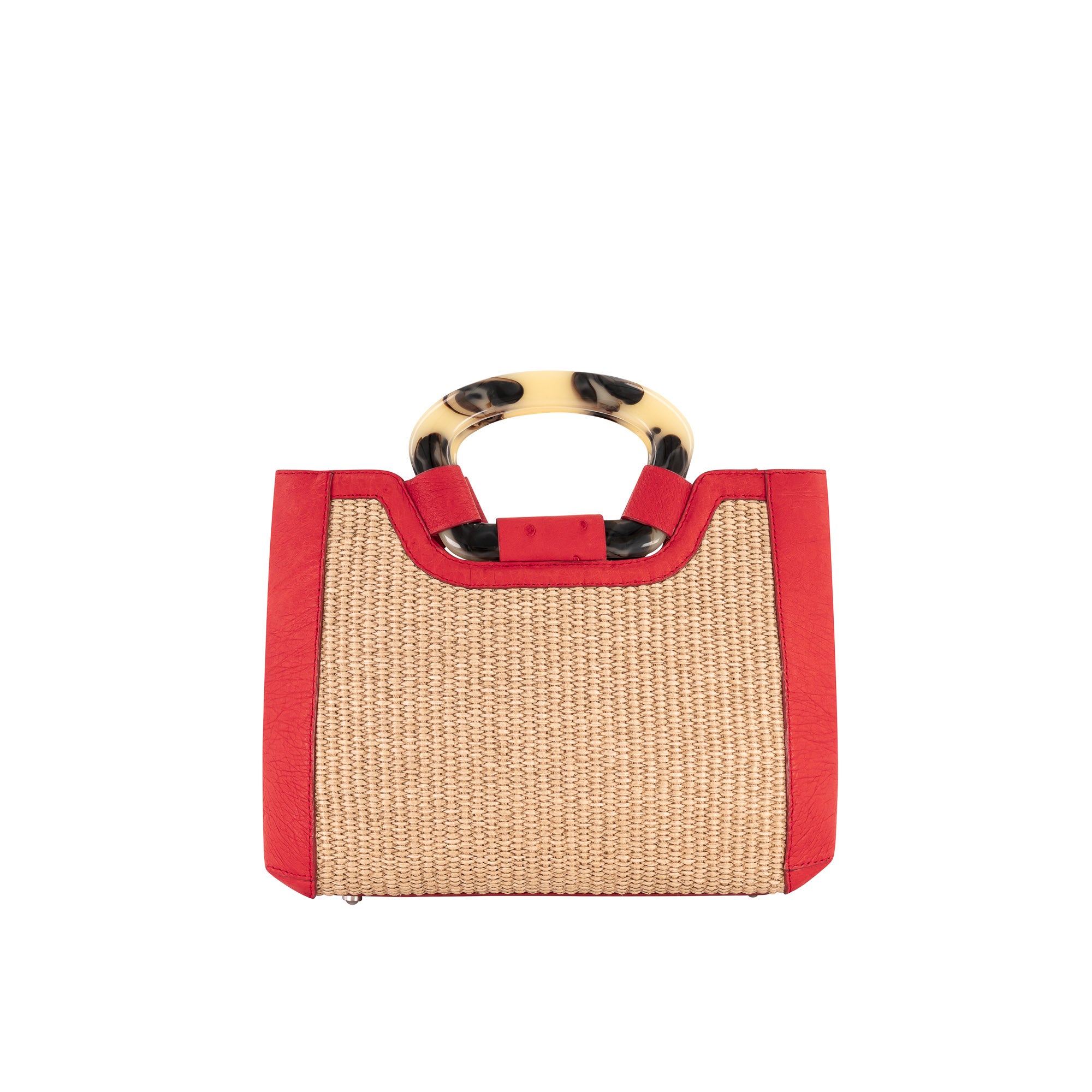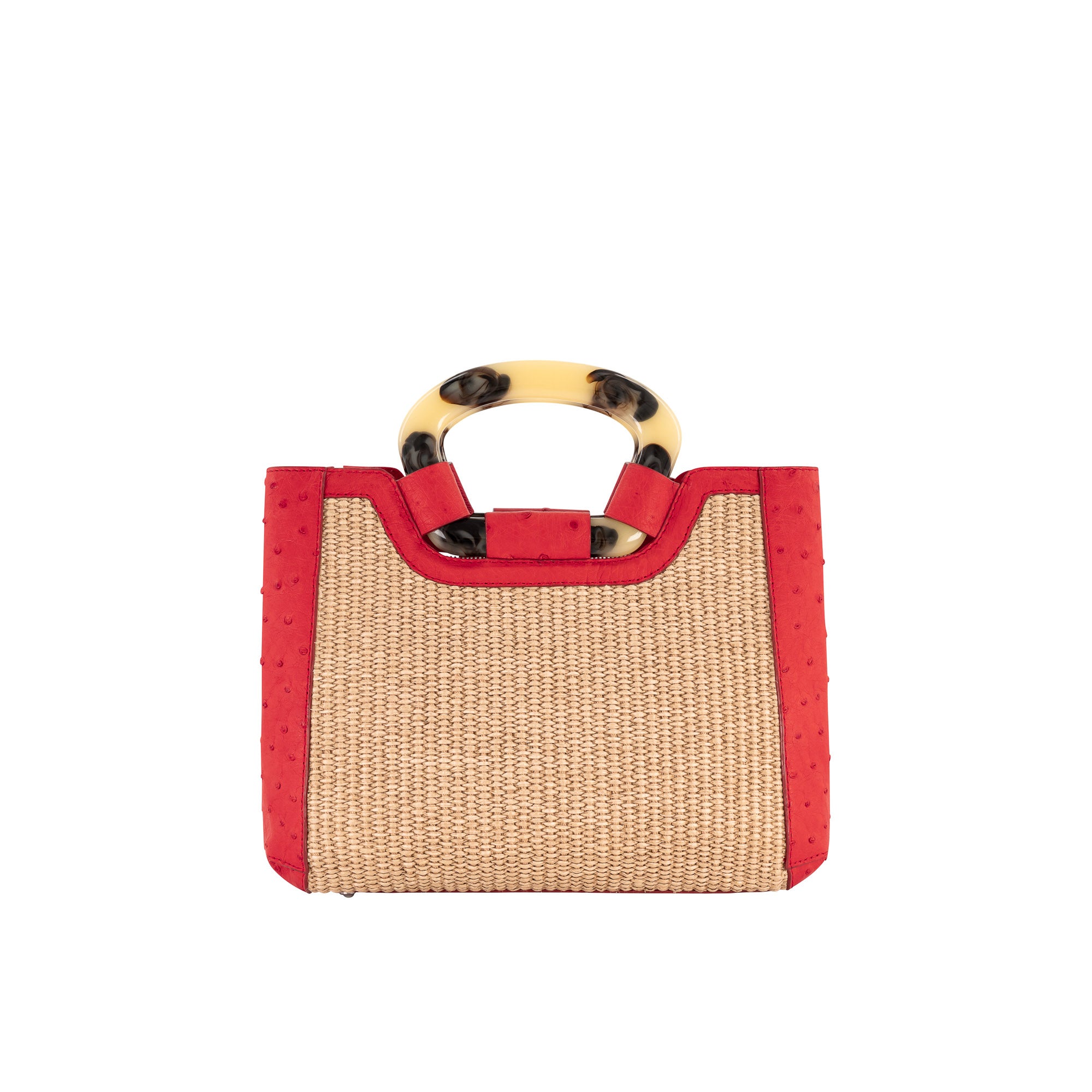 Medium Kai in Scarlet Red Ostrich & Natural Raffia